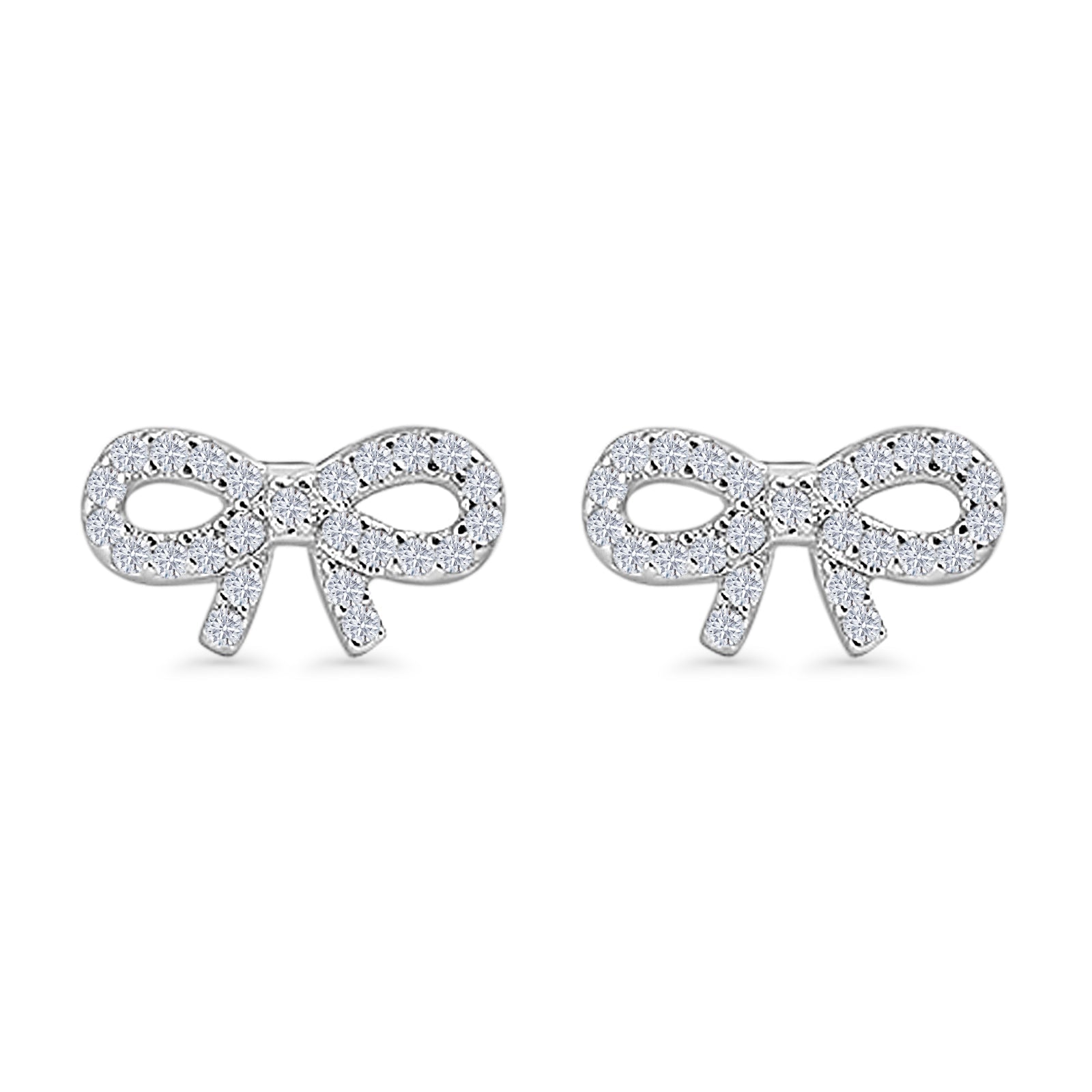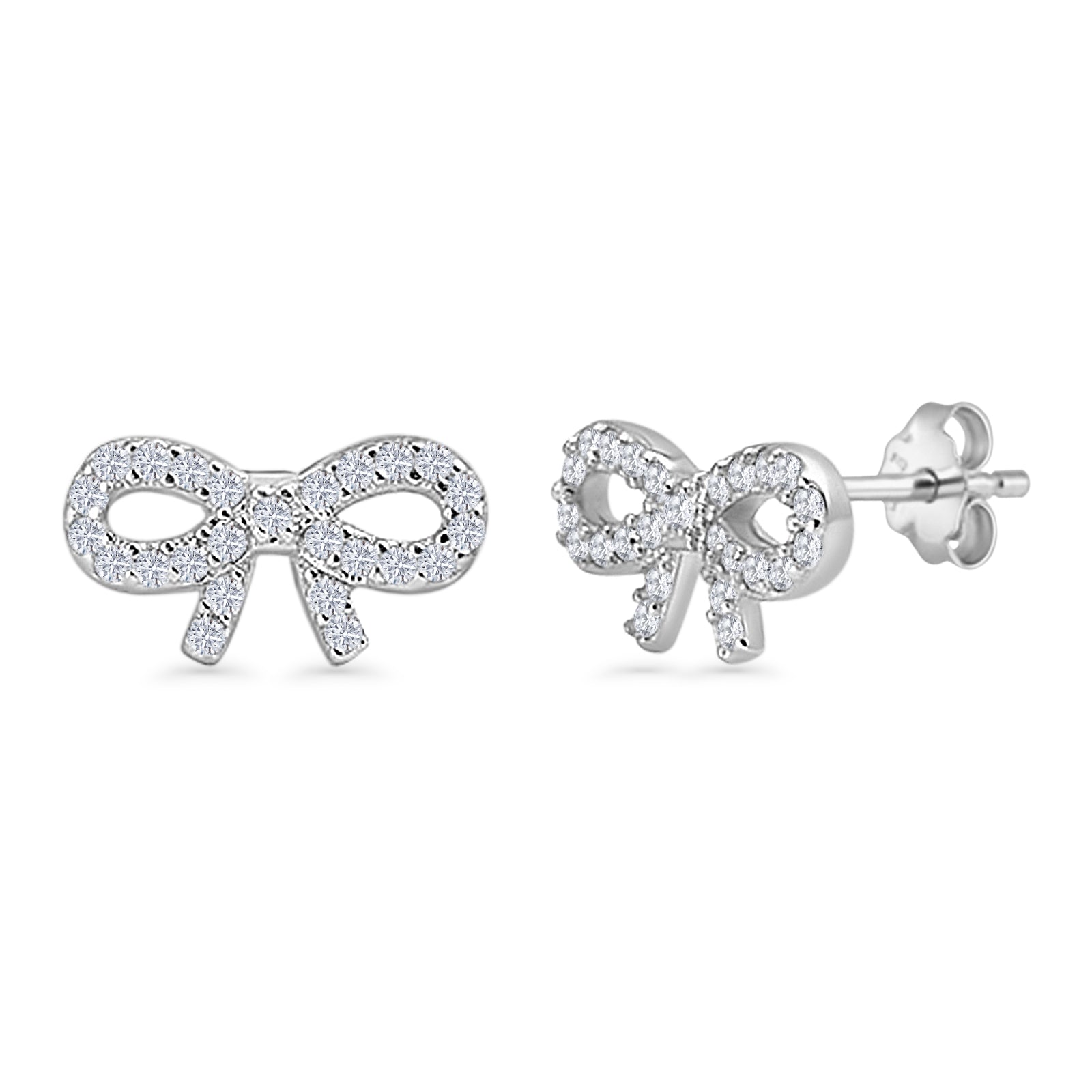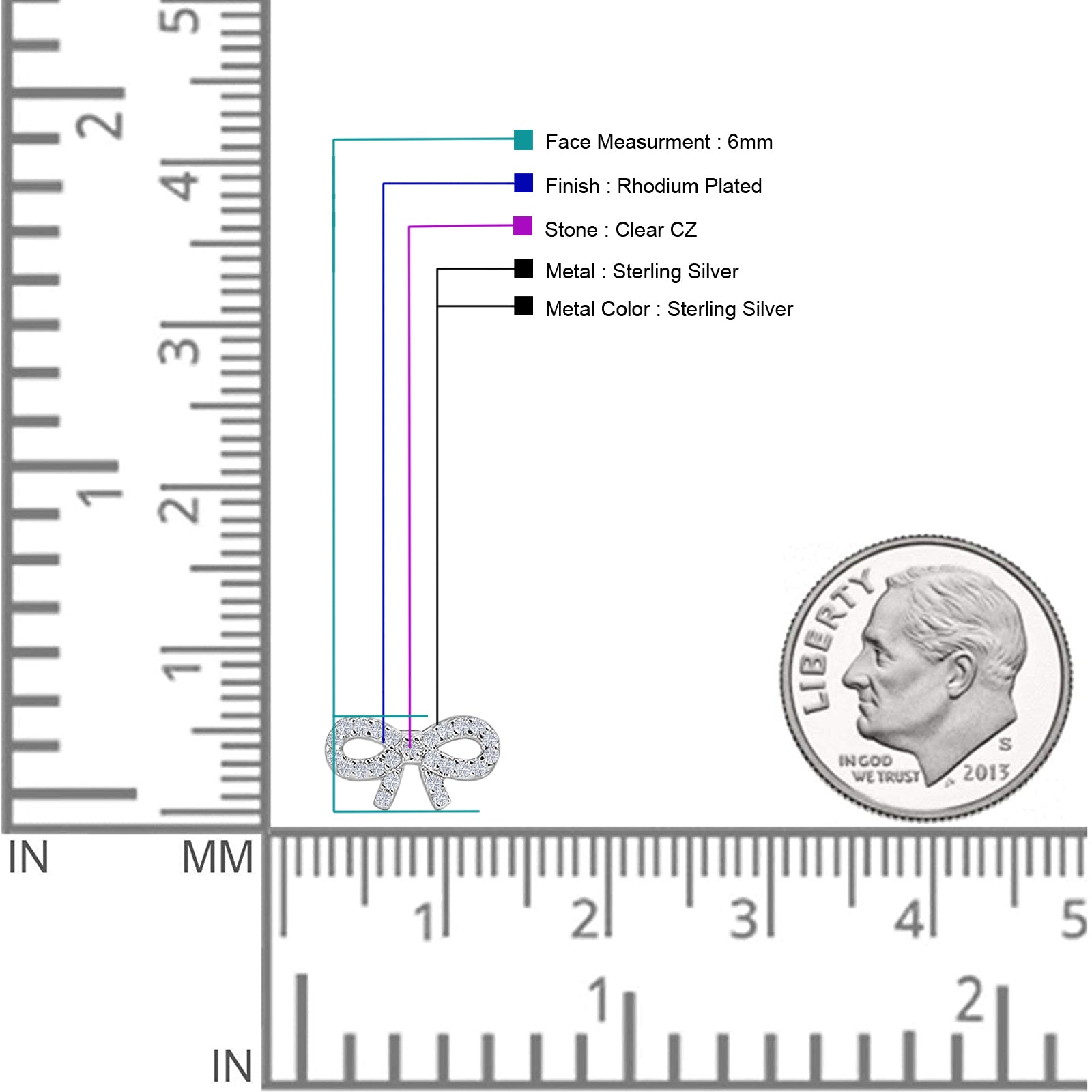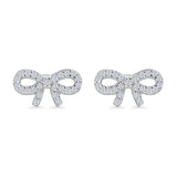Minimalist 6mm Ribbon Knot Stud Earrings Cubic Zirconia 925 Sterling Silver