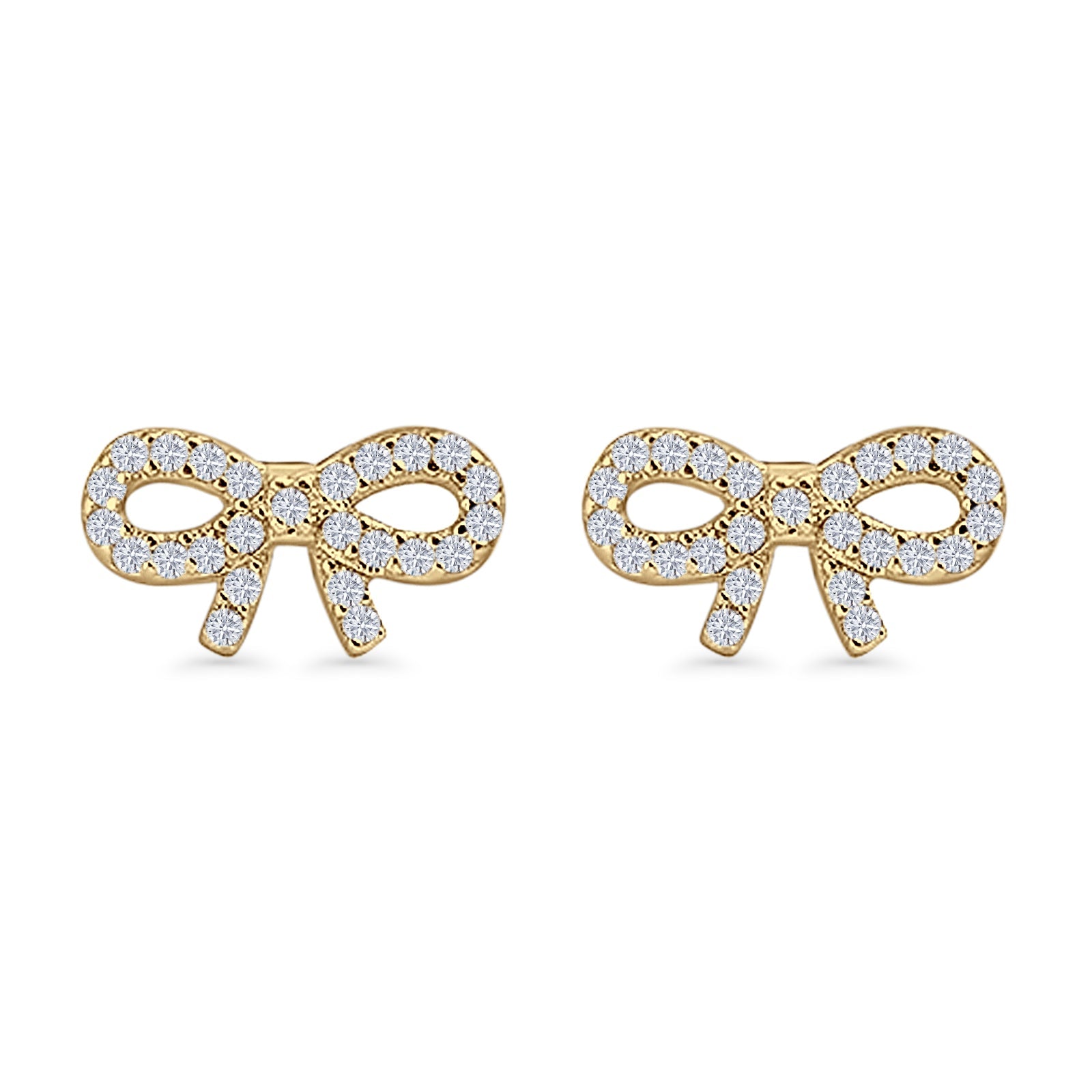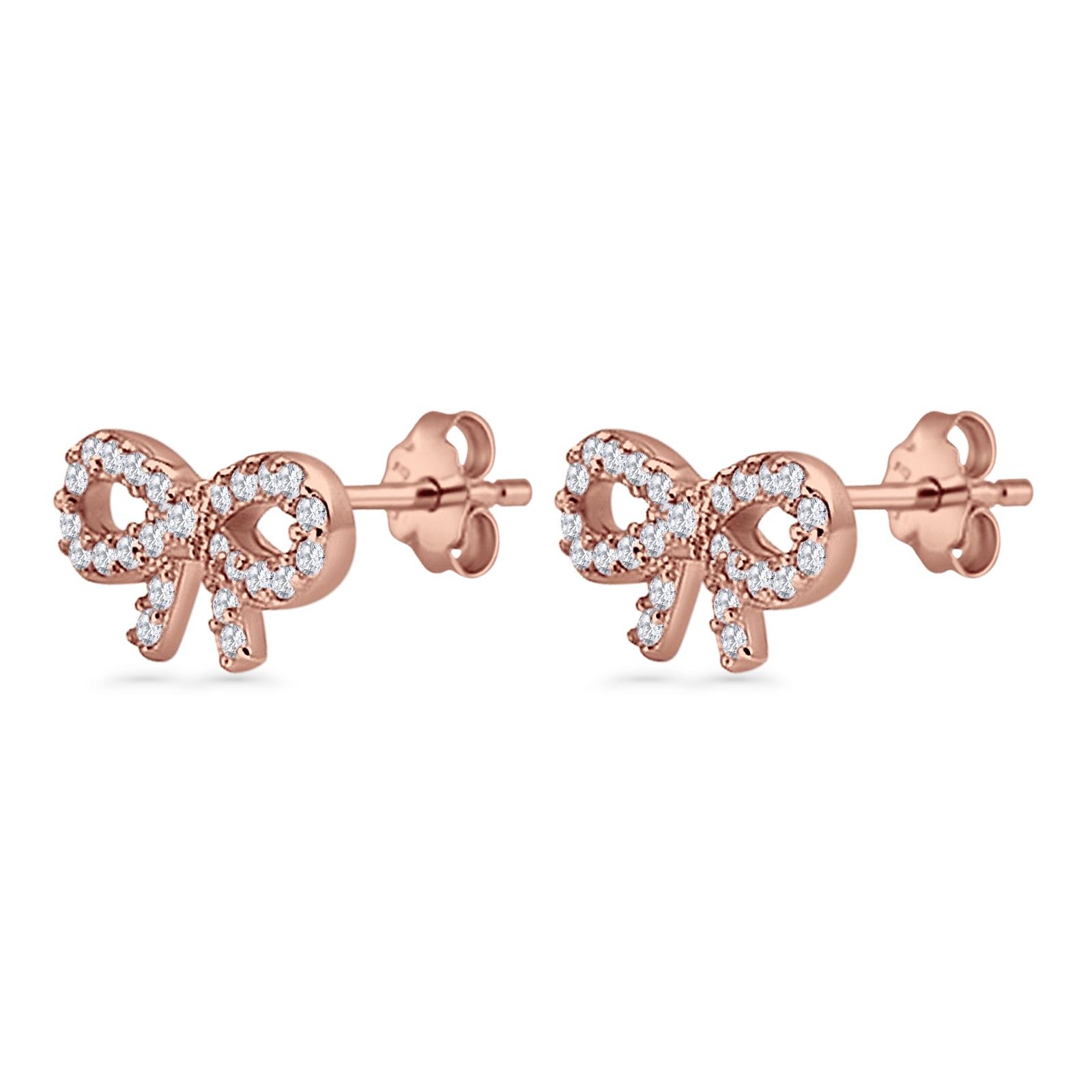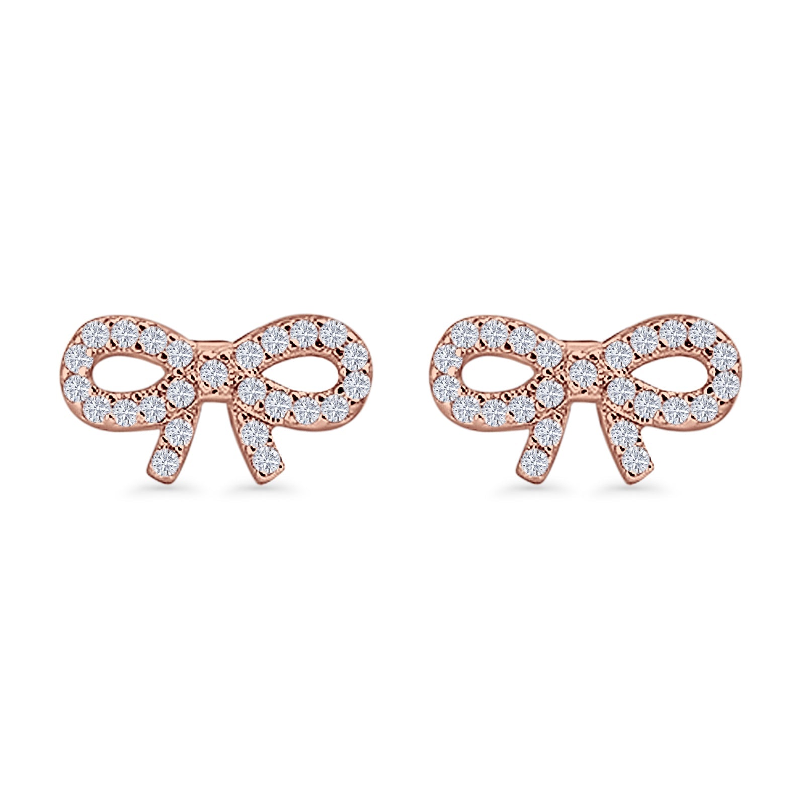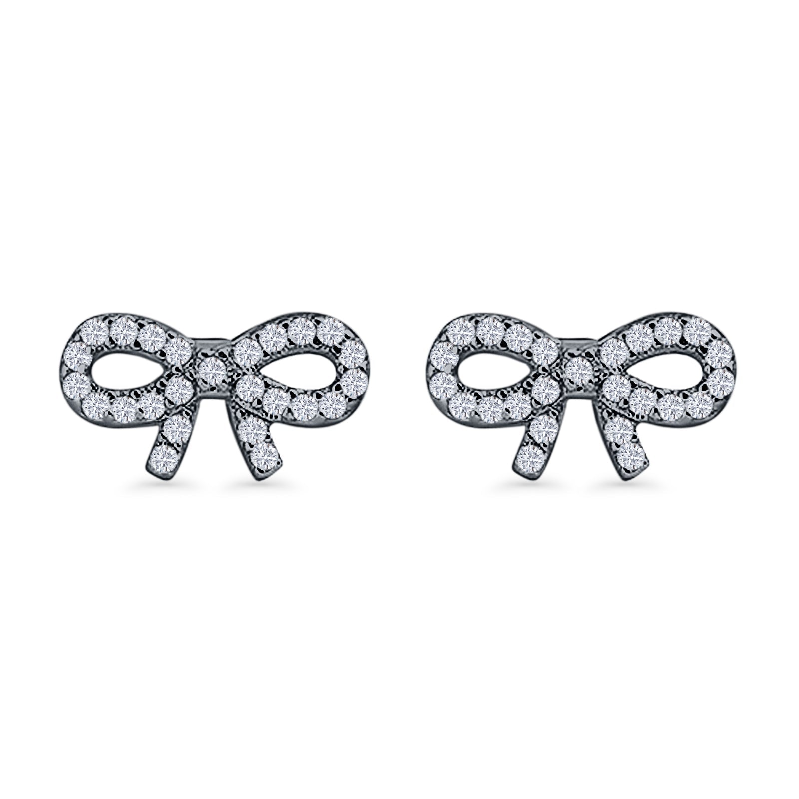 Minimalist 6mm Ribbon Knot Stud Earrings Cubic Zirconia 925 Sterling Silver