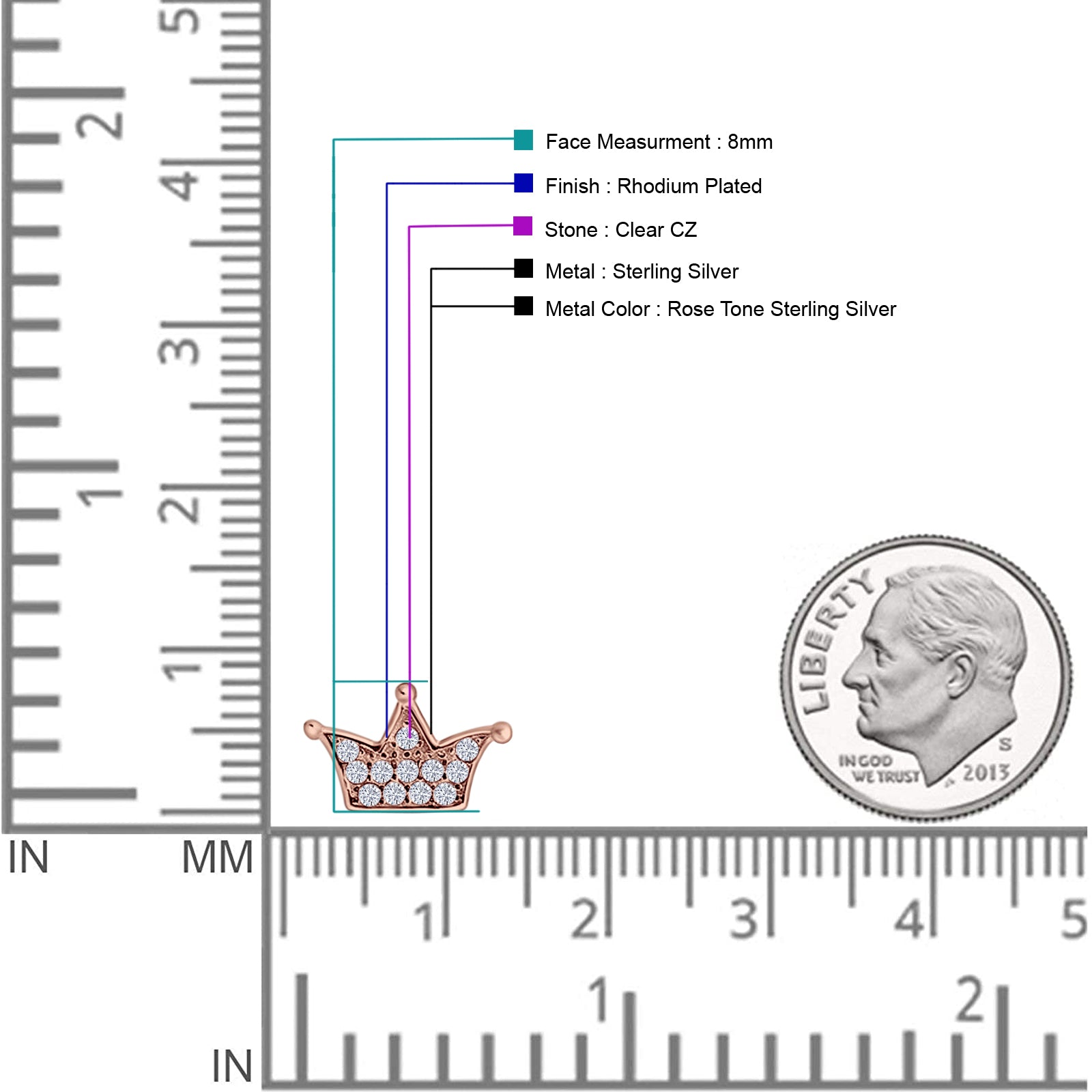 Design: Crown CZ Stud Earrings.