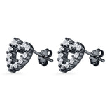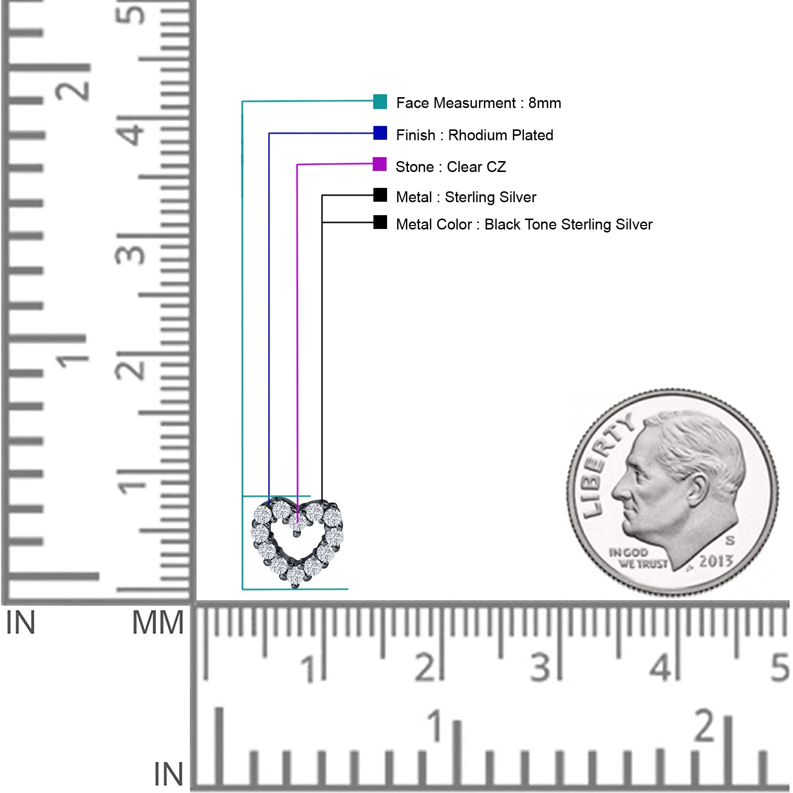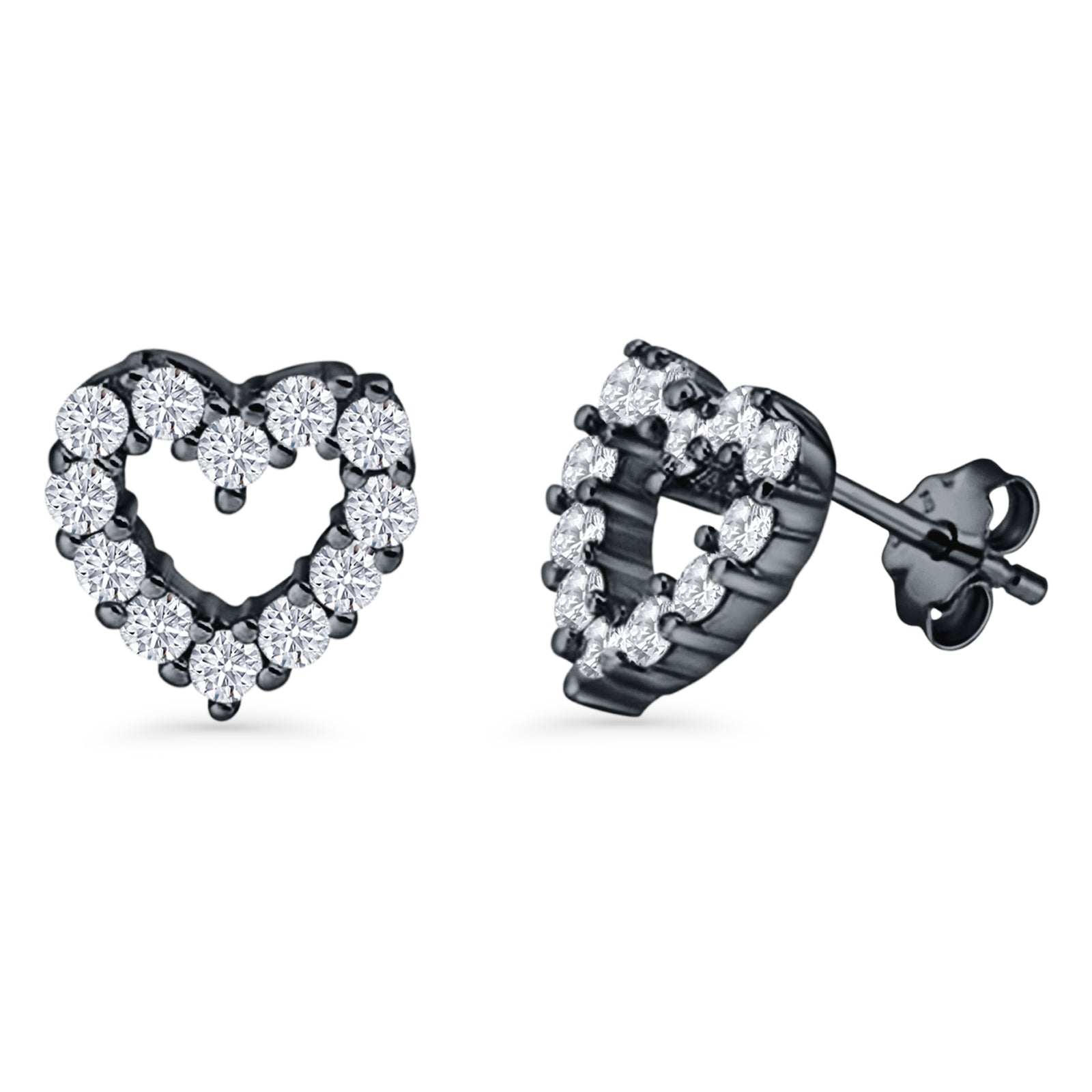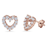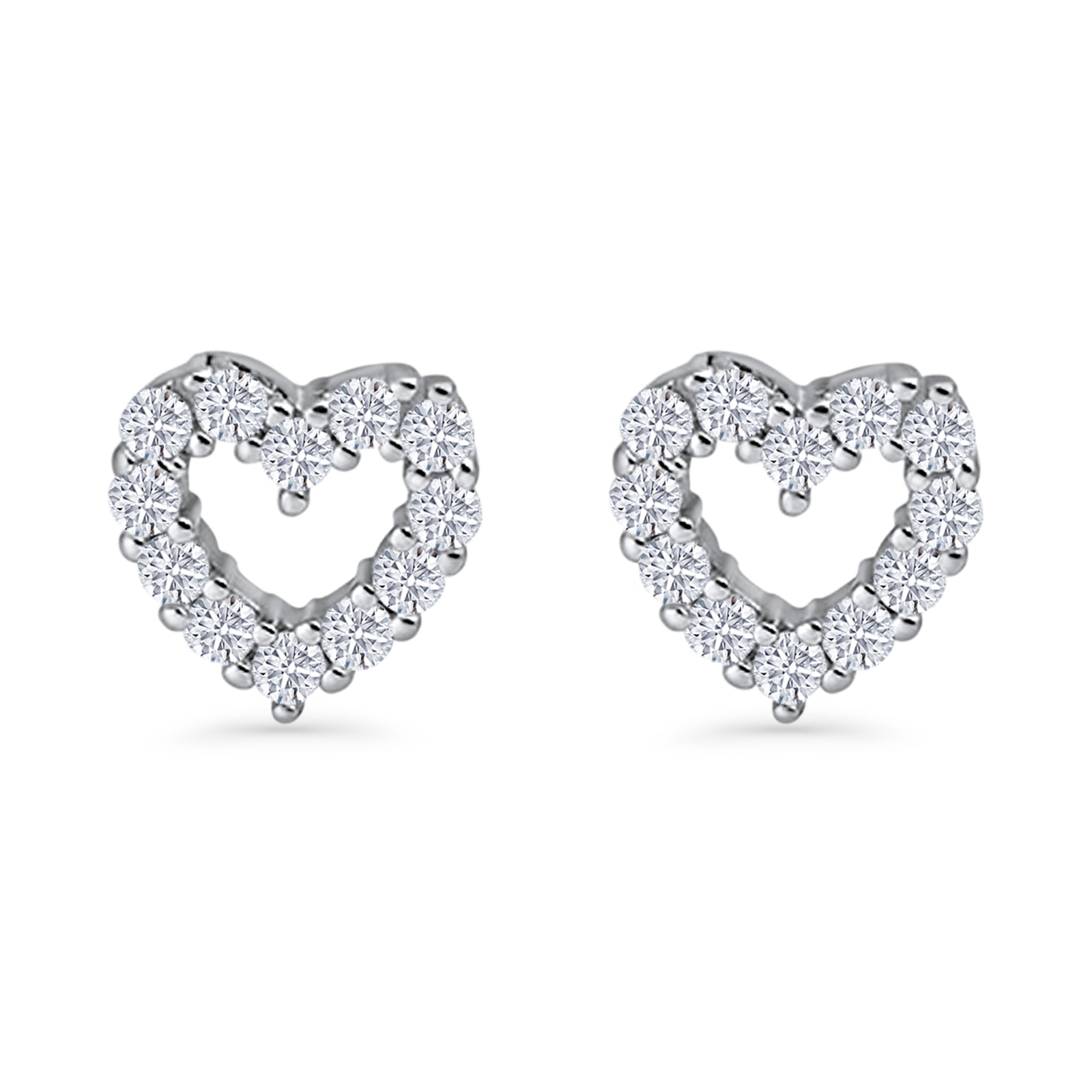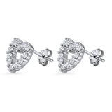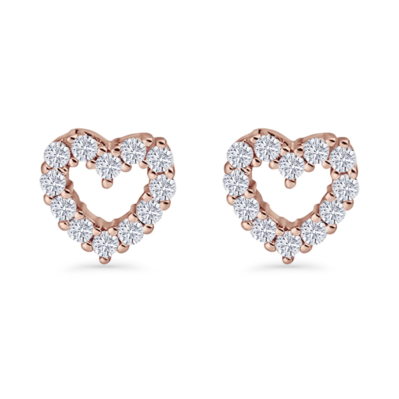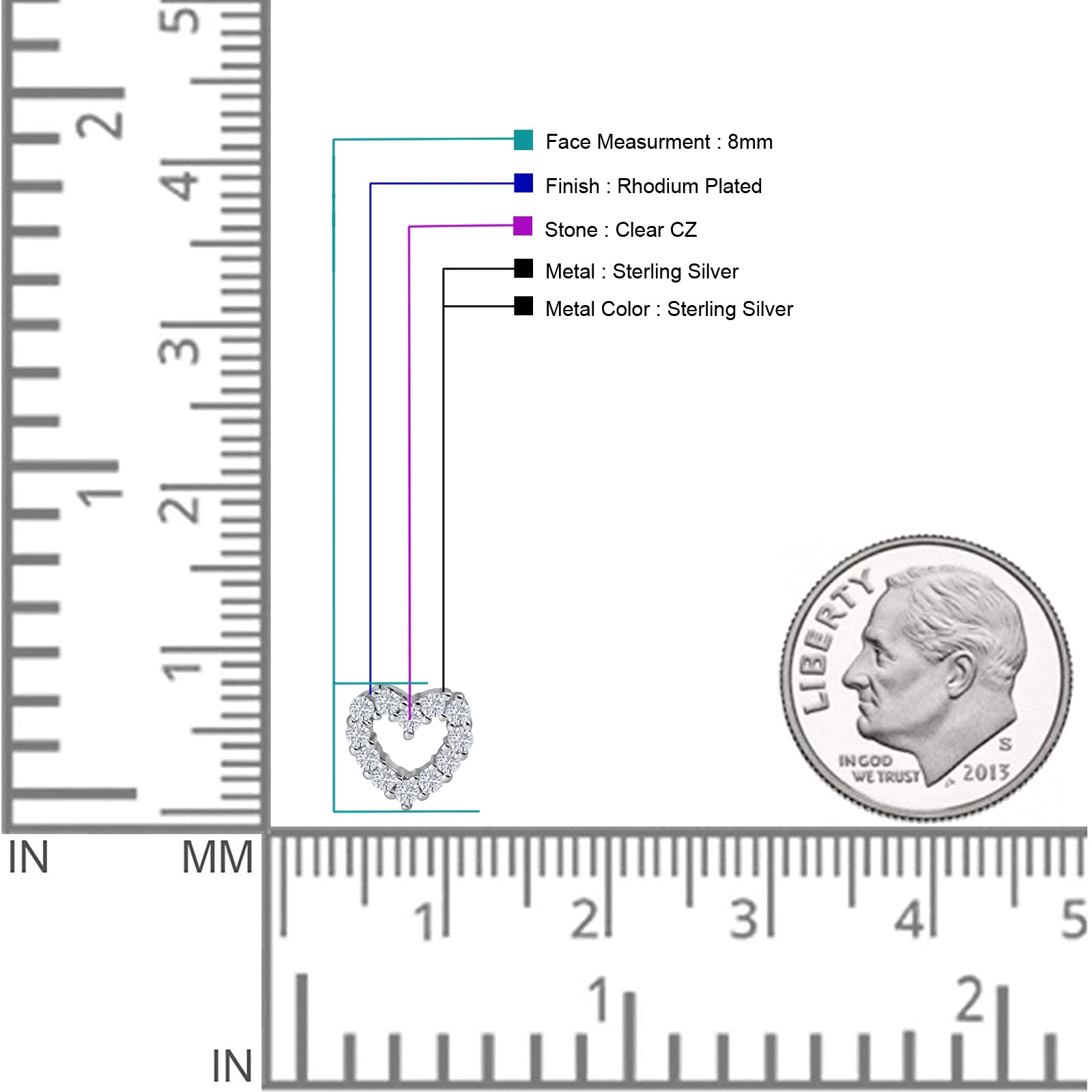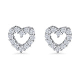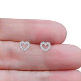 Minimalist 8mm Heart Stud Earrings Cubic Zirconia 925 Sterling Silver