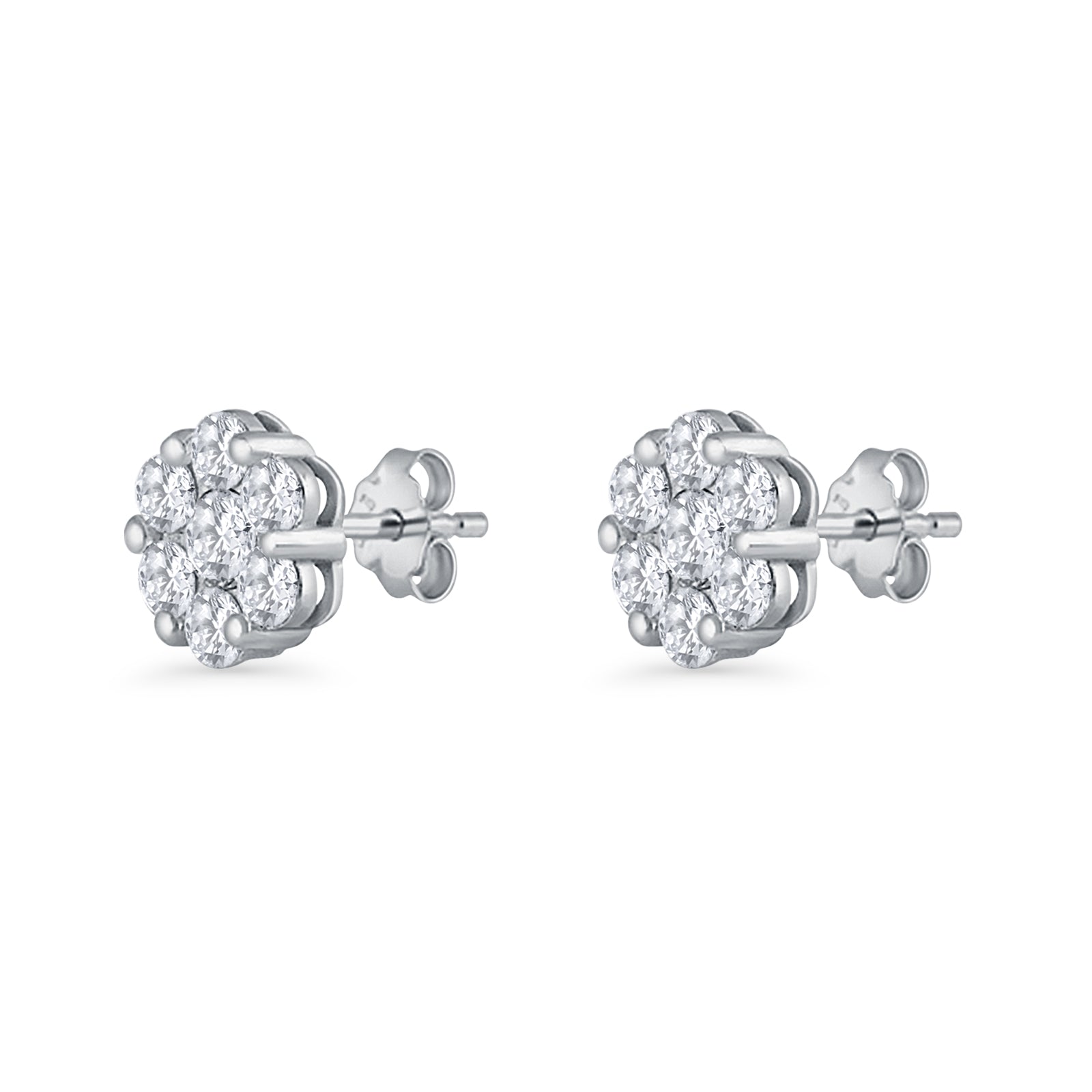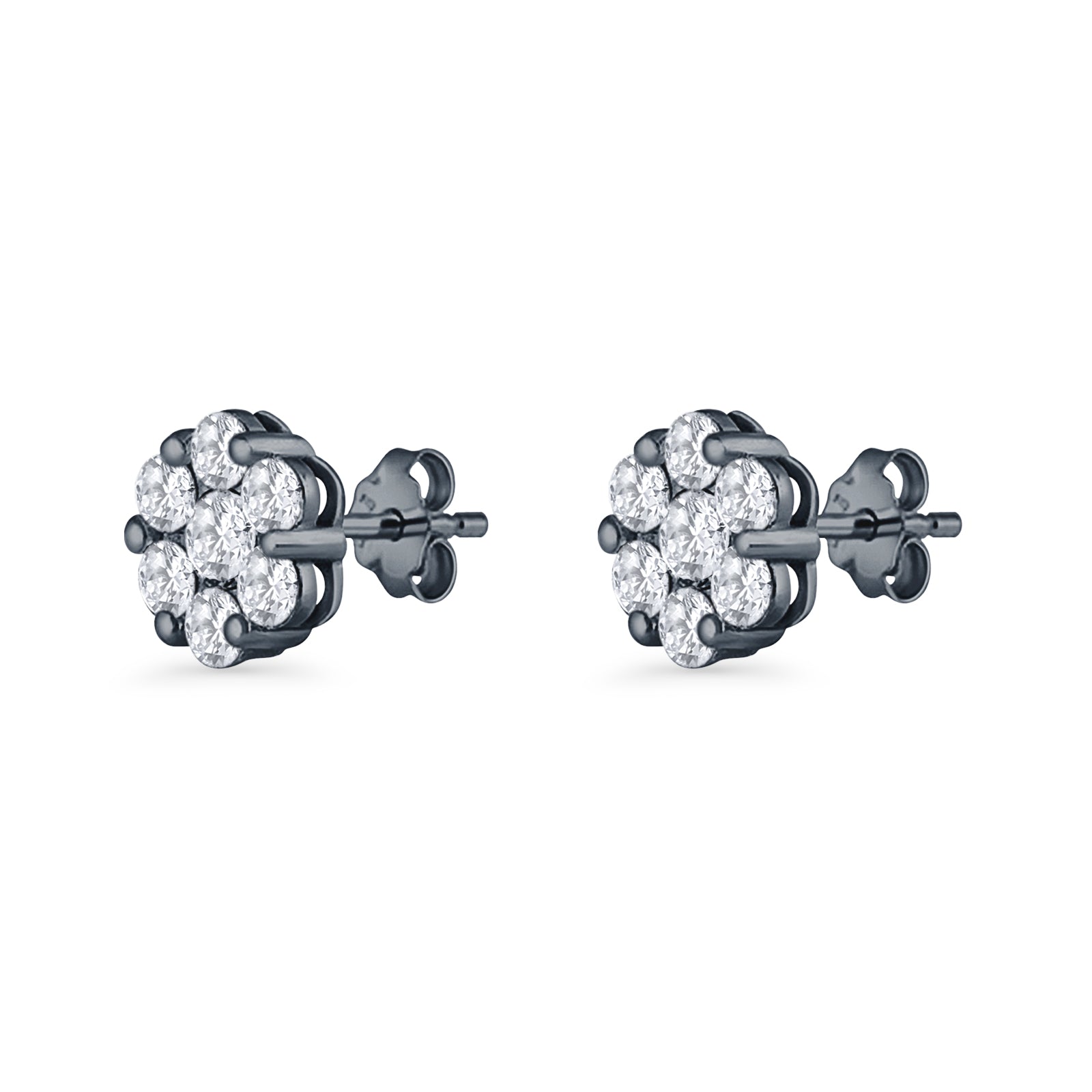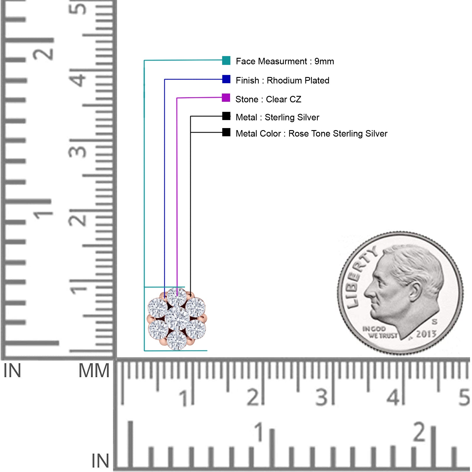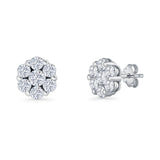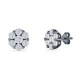 Minimalist 9mm Floral Stud Earrings Cluster Cubic Zirconia 925 Sterling Silver