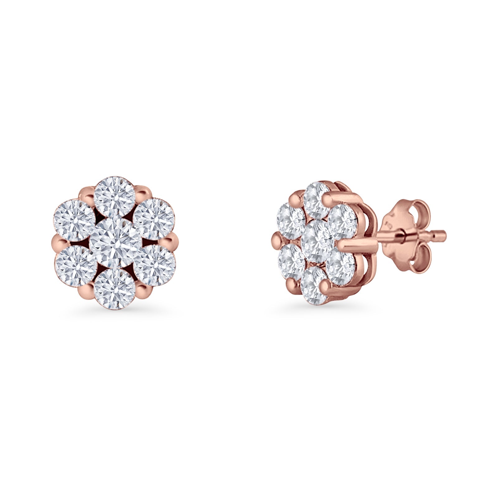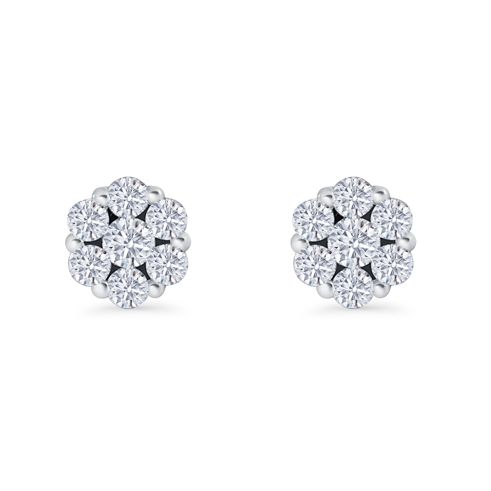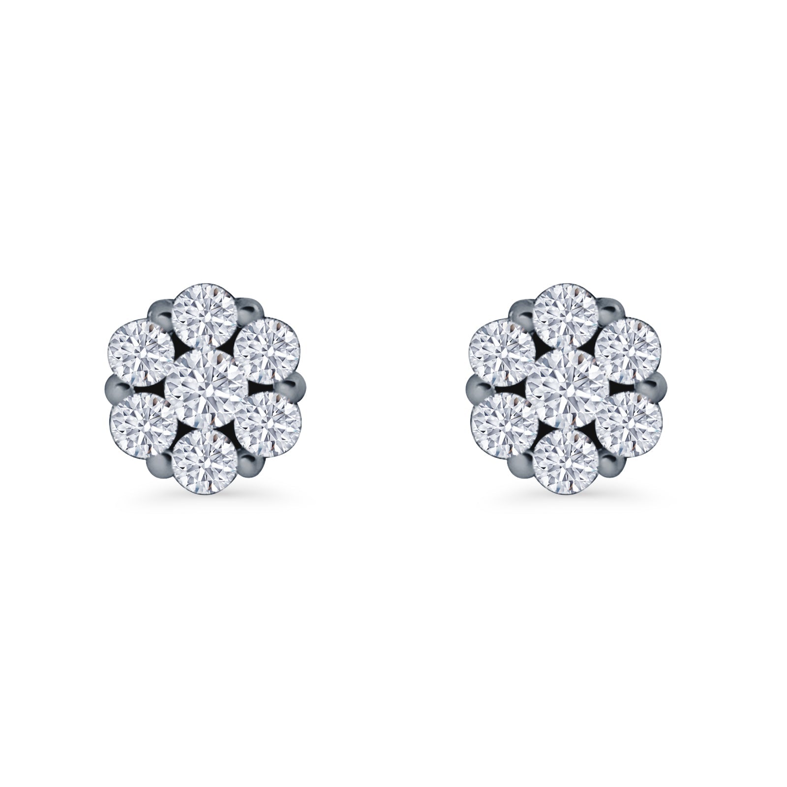 Minimalist 9mm Floral Stud Earrings Cluster Cubic Zirconia 925 Sterling Silver