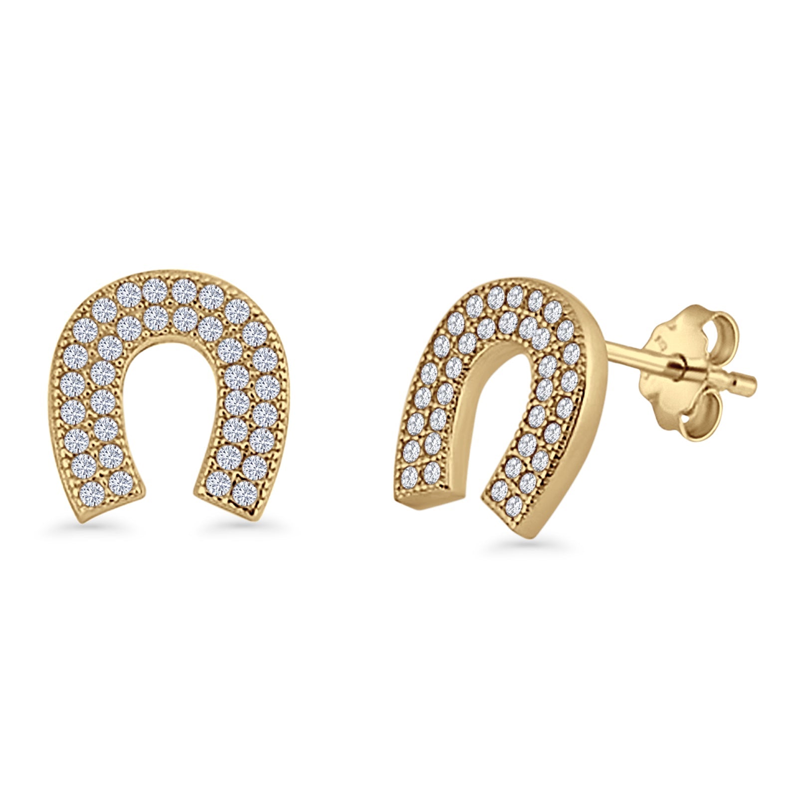 Minimalist 9mm Horseshoe Stud Earring Cubic Zirconia 925 Sterling Silver