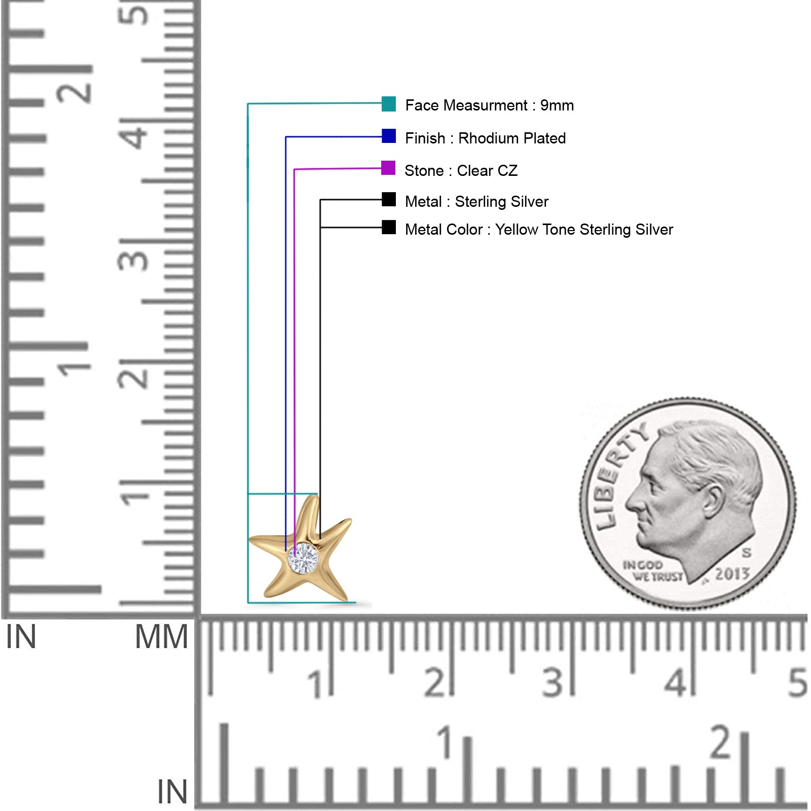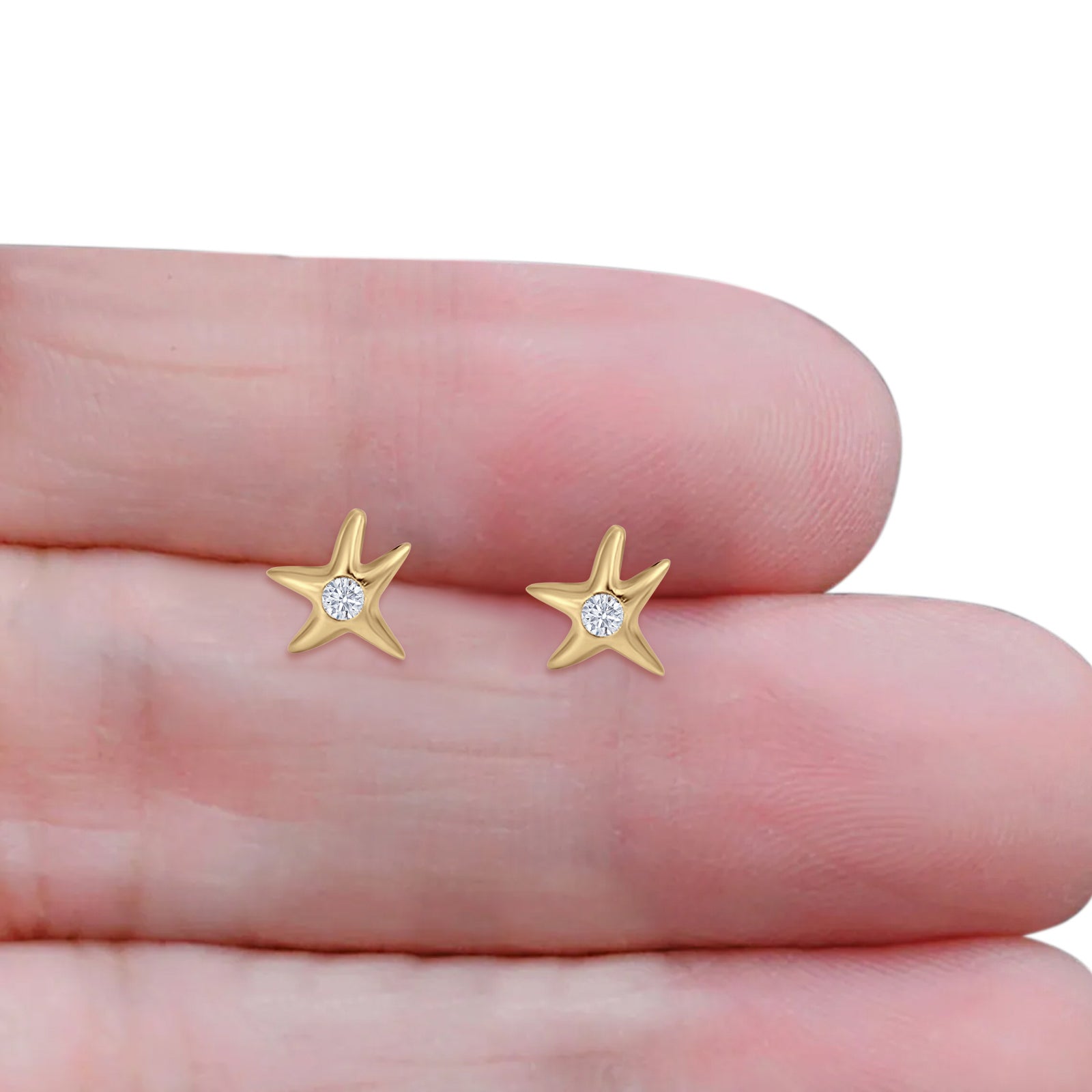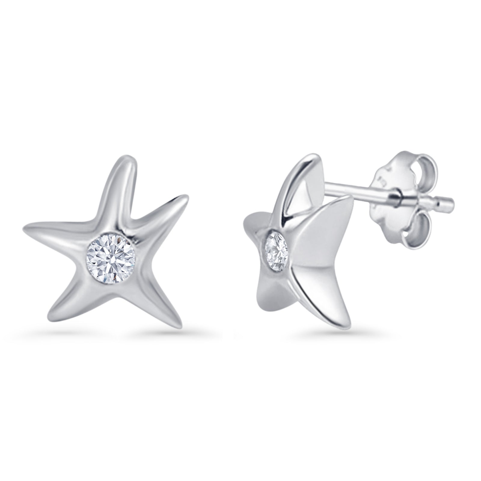 Design: Starfish Solitaire CZ Stud Earrings.