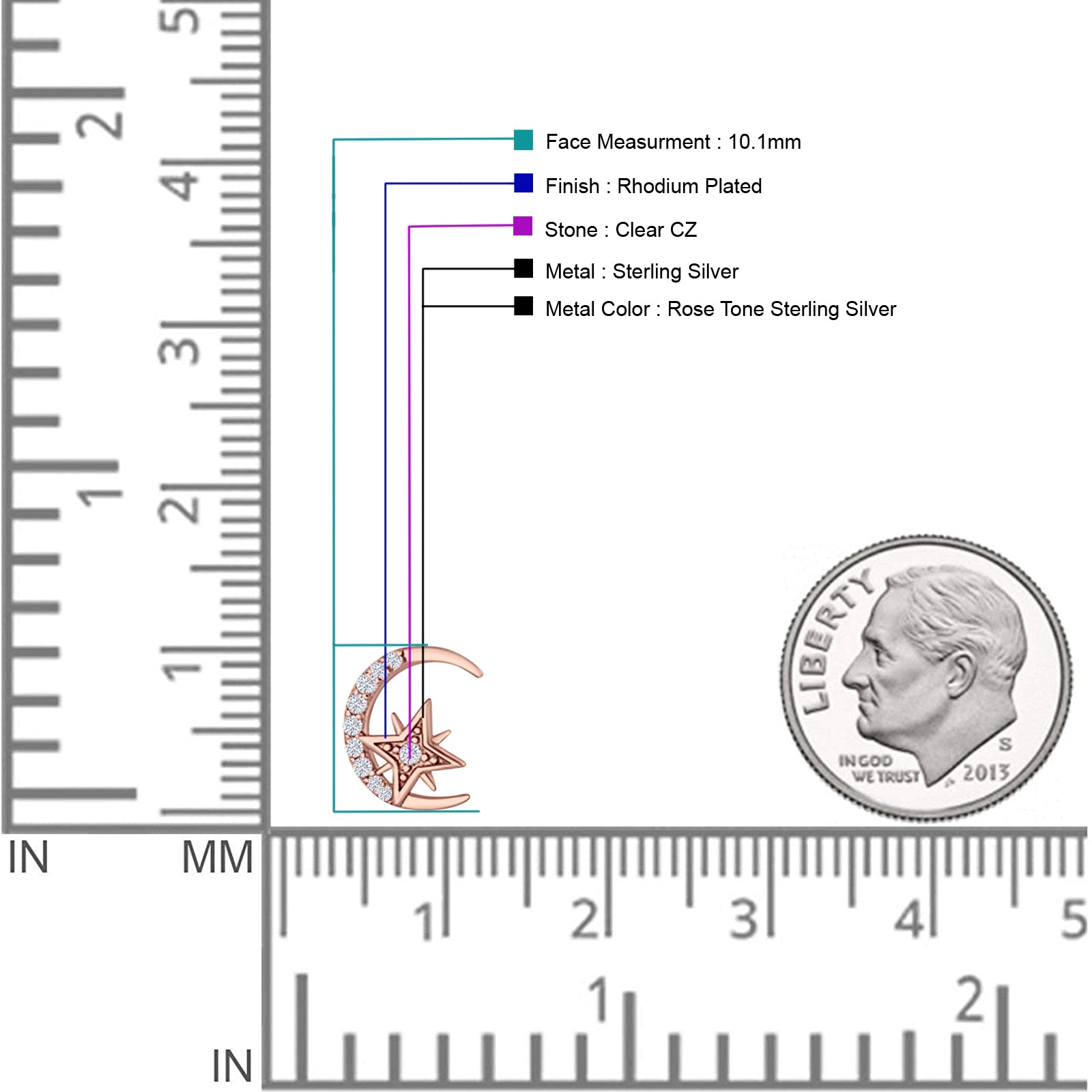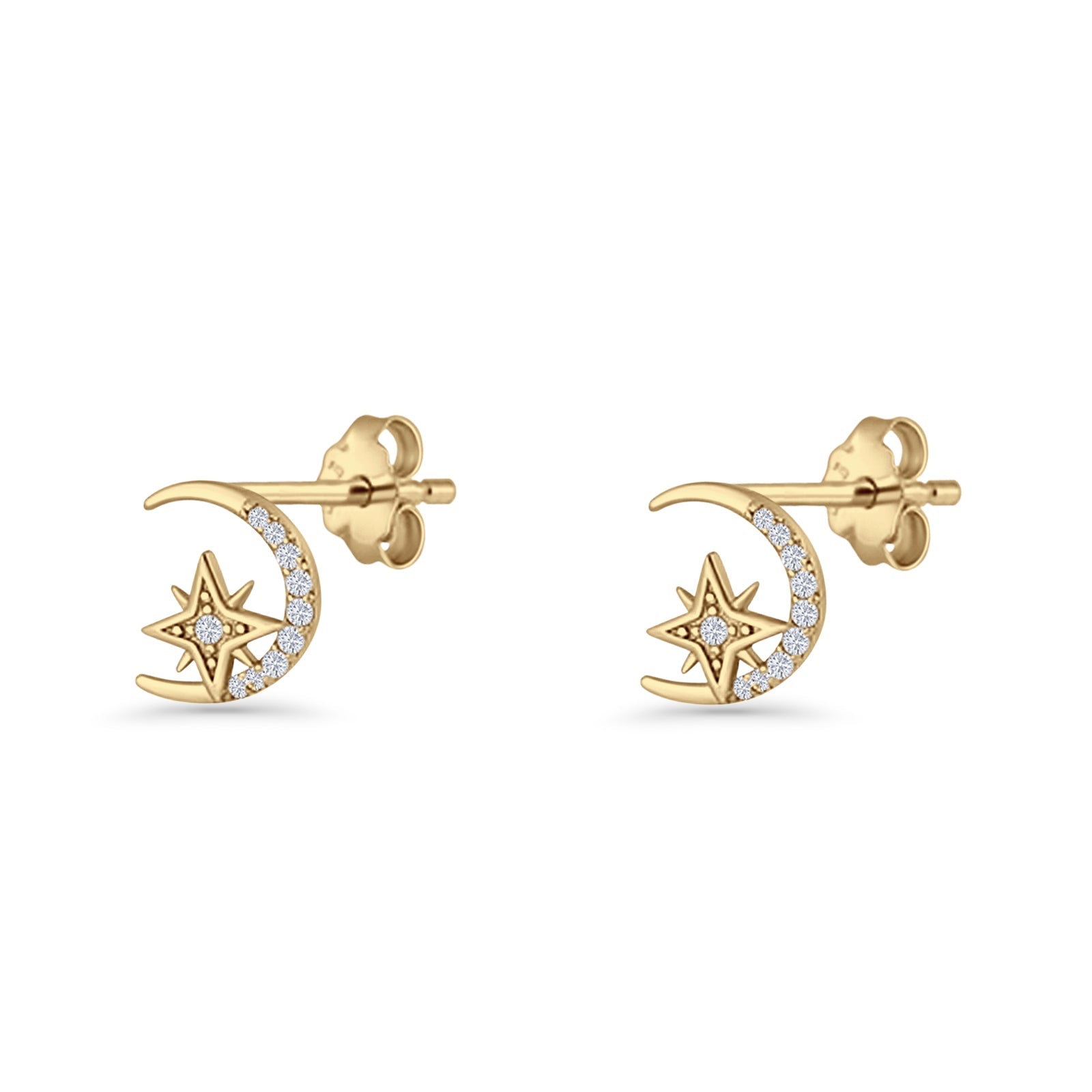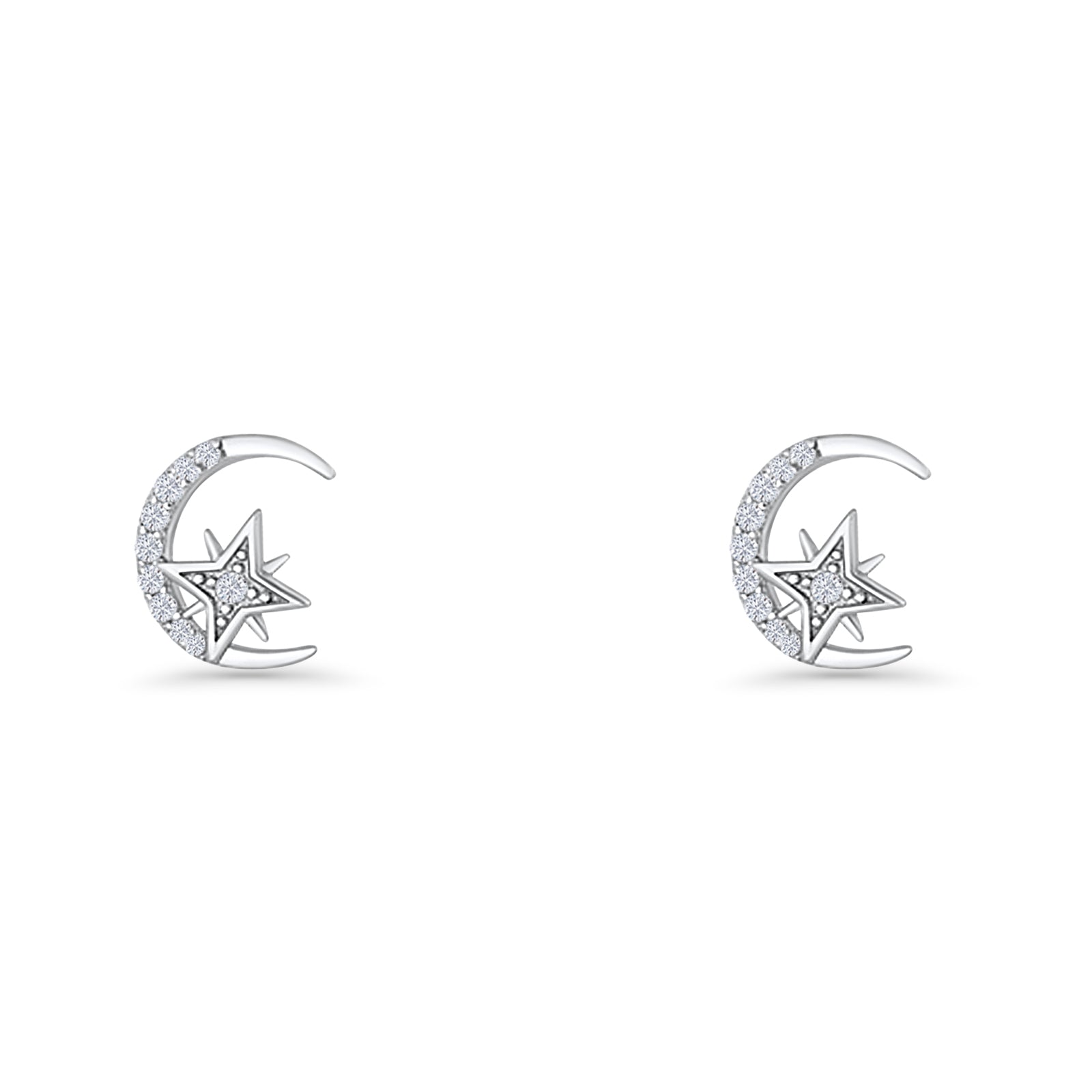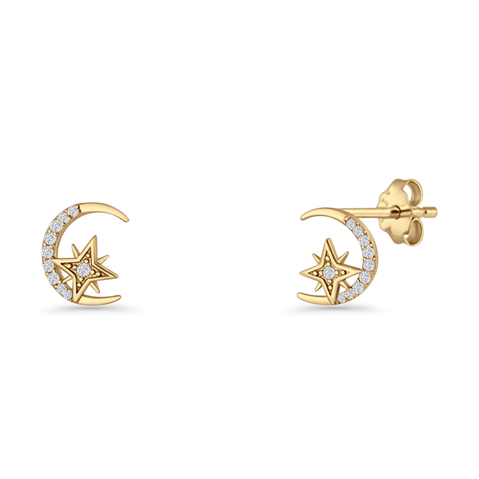 Design: Crescent Moon & Star CZ Stud Earrings.