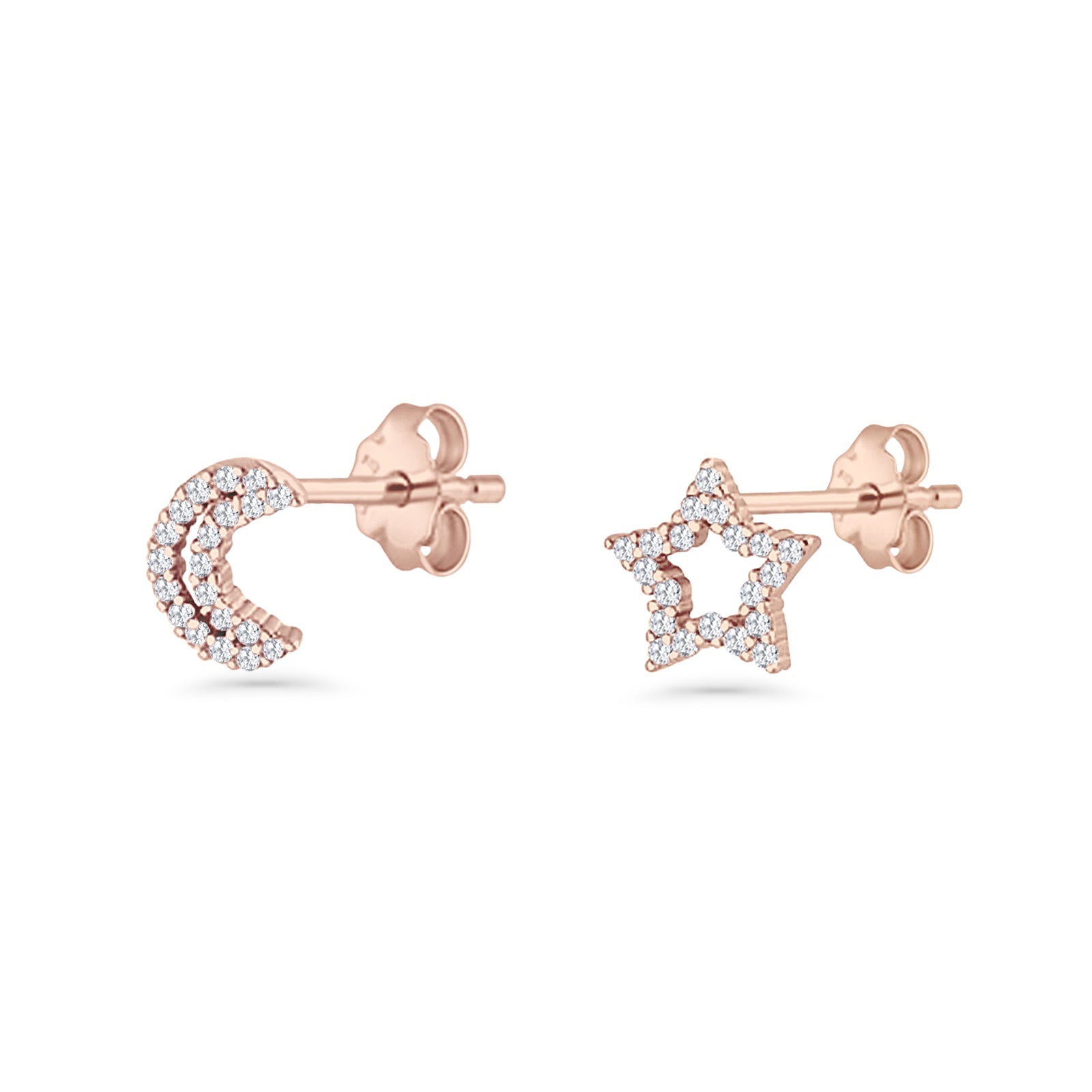CZ & Blue Sapphire CZ Rose Tone Silver