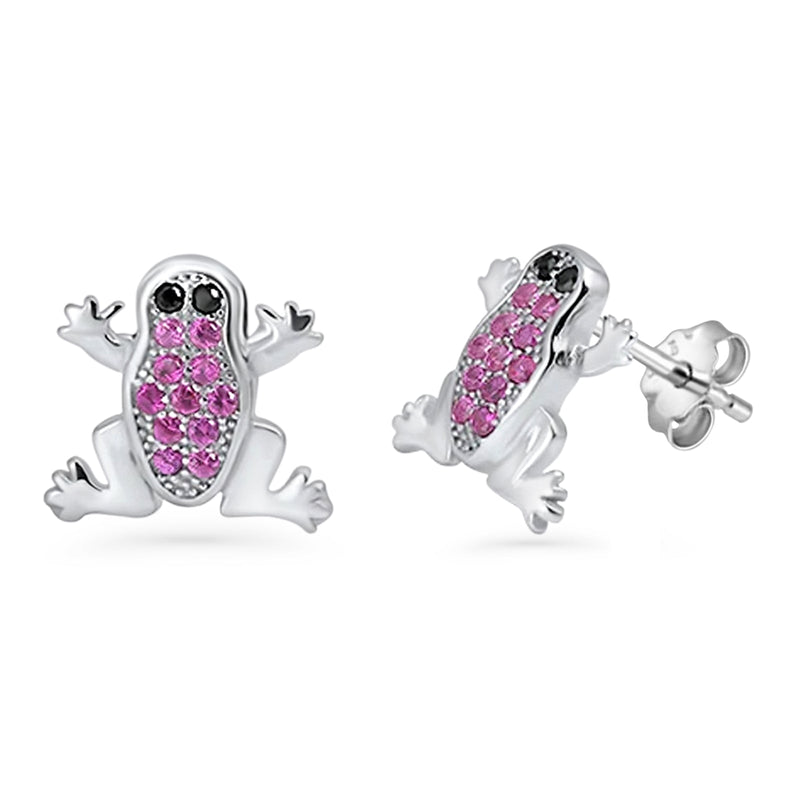 Item Specifications: Metal Type: Sterling Silver.Metal Stamp or Hallmark: .925Metal Purity: 92.5% Sterling.Gemstone: Pink CZ & Black CZ.Gemstone Creation Method: Simulated. Face Measurements From South To North: 9mm(0.35inch).Earring Type: Stud Earring. Design: Frog Stud Earrings.