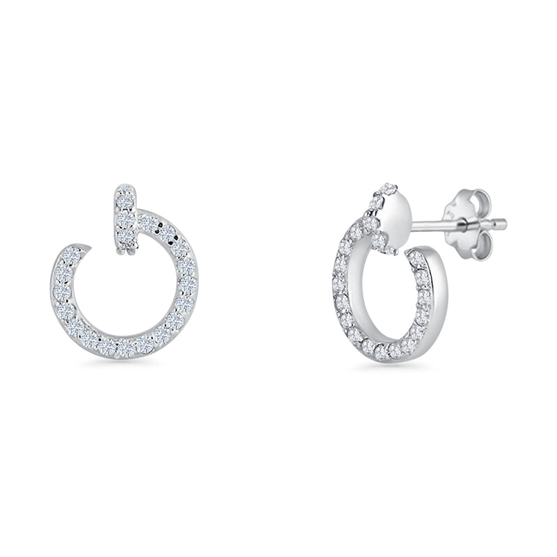 Item Specifications: Metal Type: Sterling Silver.Metal Stamp or Hallmark: .925Metal Purity: 92.5% Sterling.Gemstone: Cubic Zirconia.Gemstone Creation Method: Simulated. Face Measurements From South To North: 10mm(0.39inch).Earring Type: Stud Earring. Design: Open Half Circle Stud Earrings.