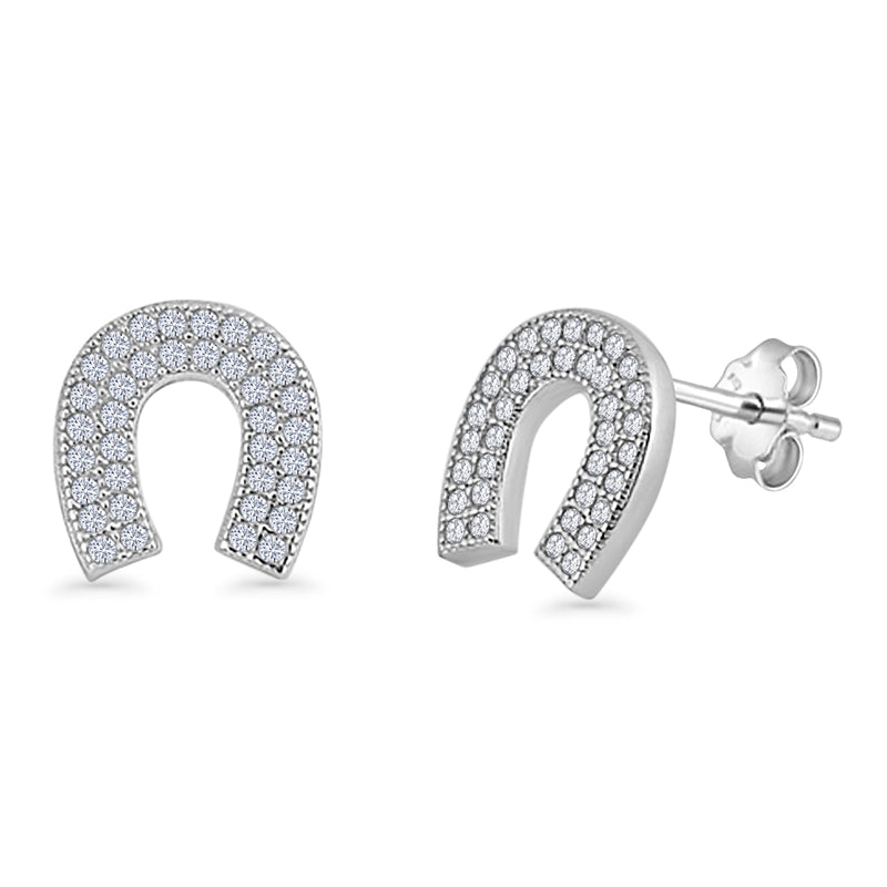 Item Specifications: Metal Type: Sterling Silver.Metal Stamp or Hallmark: .925Metal Purity: 92.5% Sterling.Gemstone: Cubic Zirconia.Gemstone Creation Method: Simulated. Face Measurements From South To North: 8mm(0.31inch).Earring Type: Stud Earring. Design: Horseshoe Stud Earrings.