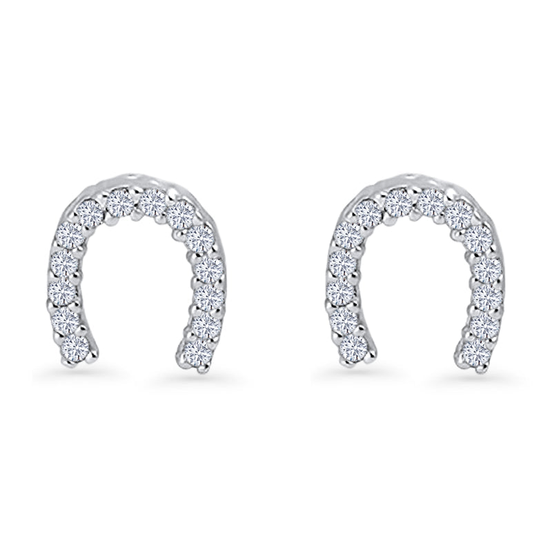 Minimalist 8mm Horseshoe Stud Earrings Cubic Zirconia 925 Sterling Silver