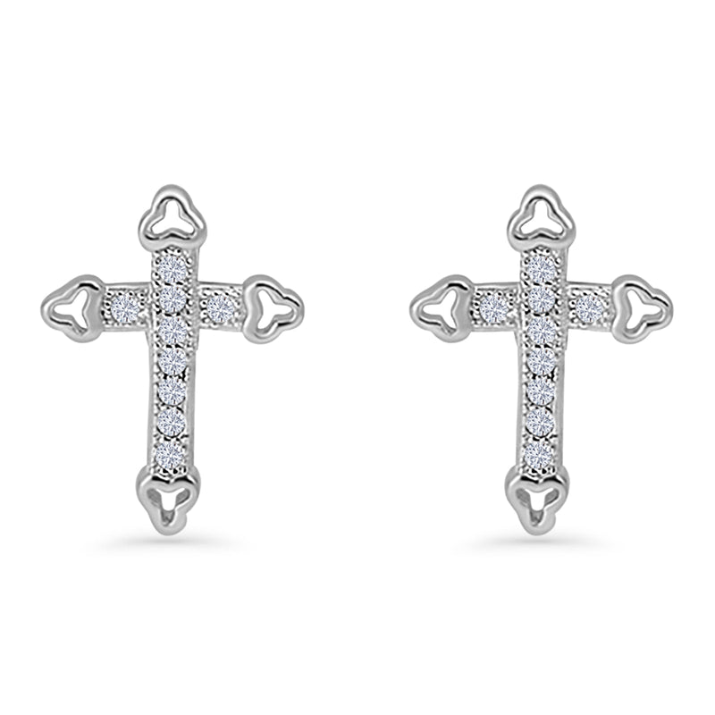 Cross Stud Earrings for Women Cubic Zirconia 925 Sterling Silver