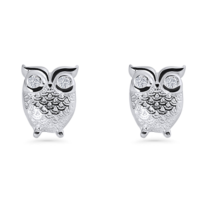 Minimalist 8mm Owl Stud Earrings Cubic Zirconia 925 Sterling Silver