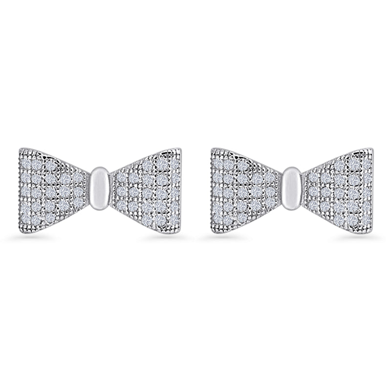 Bow Knot Stud Earring 8mm Cluster Cubic Zirconia 925 Sterling Silver