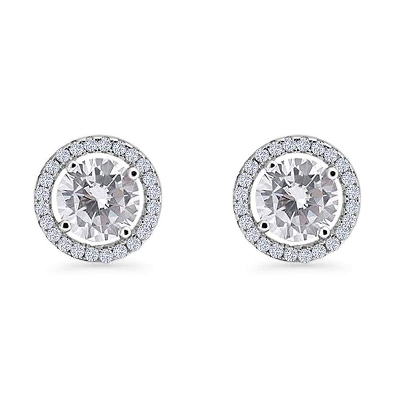 Minimalist 10mm Round Halo Stud Earrings Cubic Zirconia 925 Sterling Silver