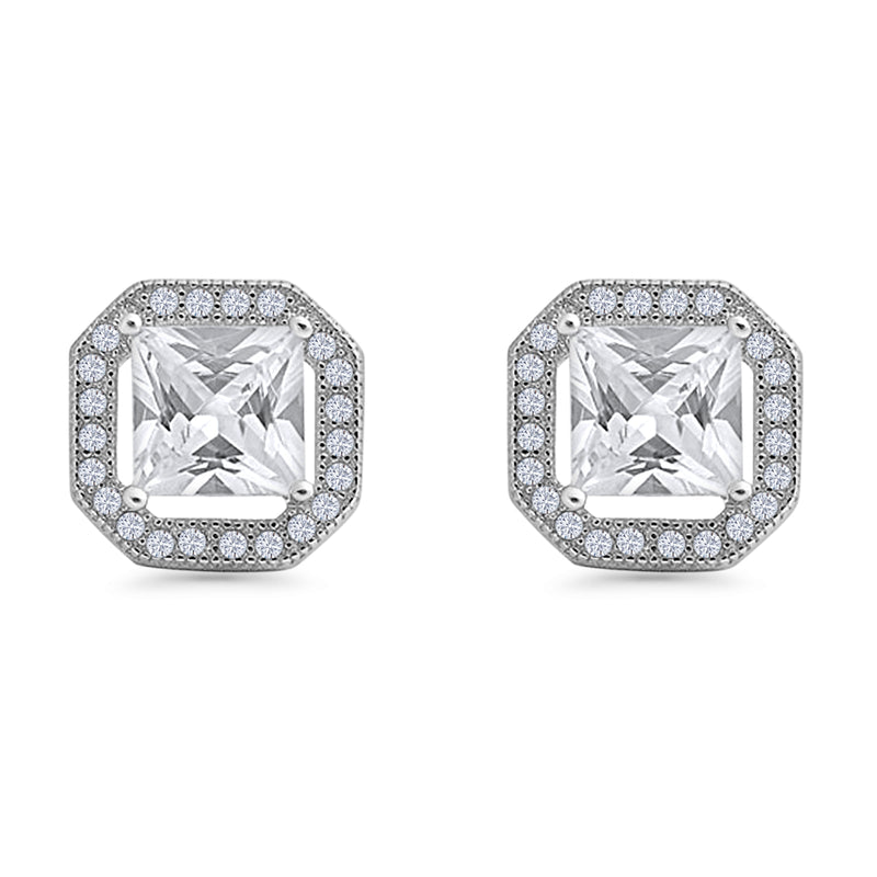 Item Specifications: Metal Type: Sterling Silver.Metal Stamp or Hallmark: .925Metal Purity: 92.5% Sterling.Gemstone: Cubic Zirconia.Gemstone Creation Method: Simulated. Face Measurements From South To North: 10mm(0.39inch).Earring Type: Stud Earring. Design: Princess Cut CZ Stud Earrings.