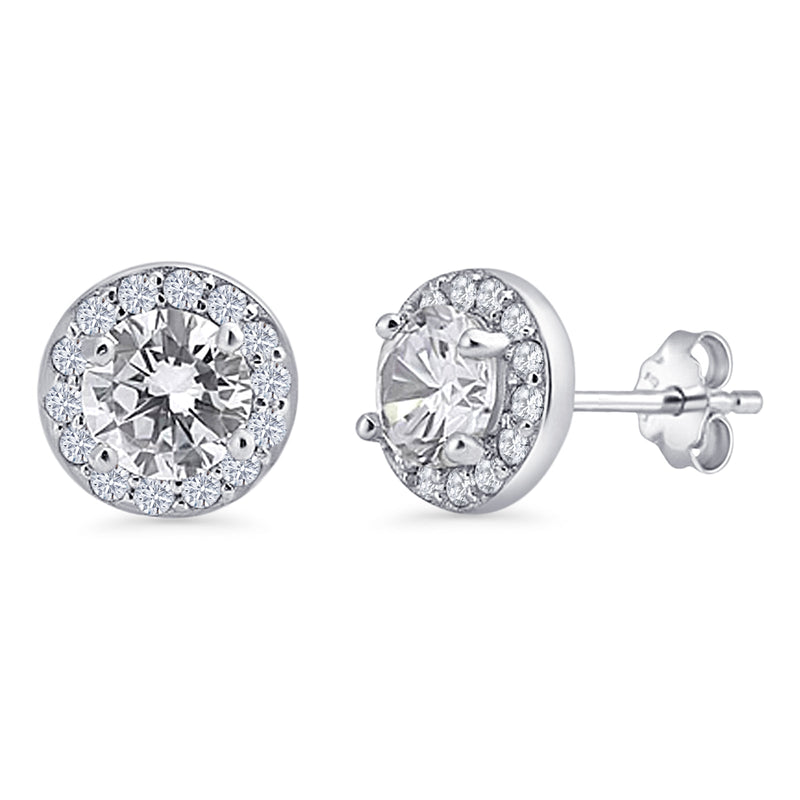 Minimalist 8mm Round Stud Earrings Halo Cubic Zirconia 925 Sterling Silver