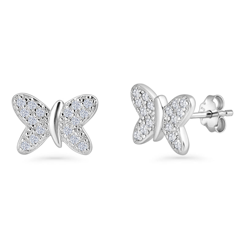 Minimalist 7mm Butterfly Stud Earrings Cubic Zirconia 925 Sterling Silver