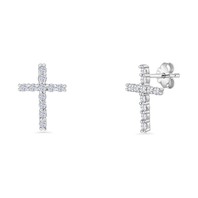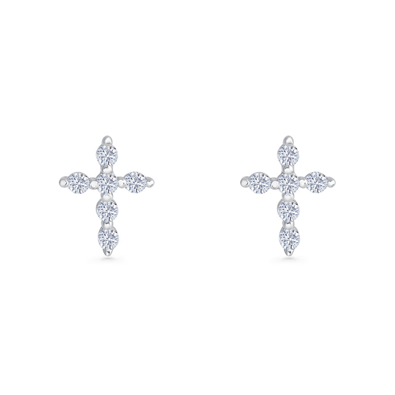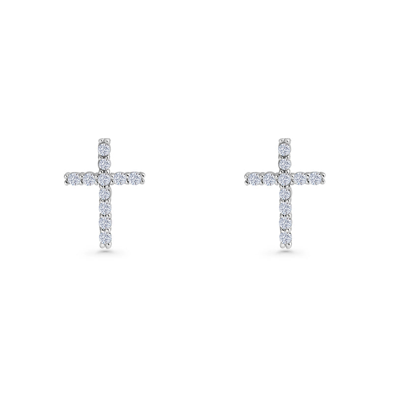 Petite Dainty 11mm Cross Stud Earrings Cubic Zirconia 925 Sterling Silver