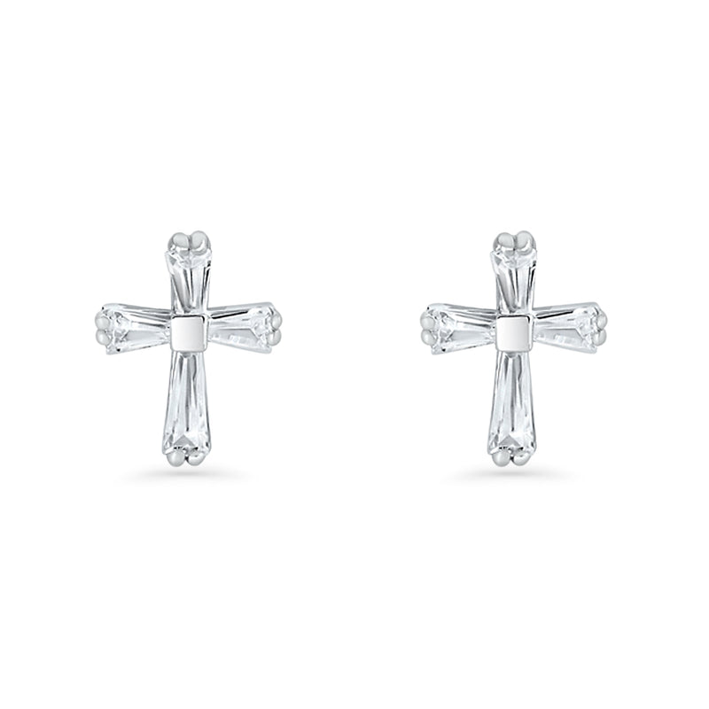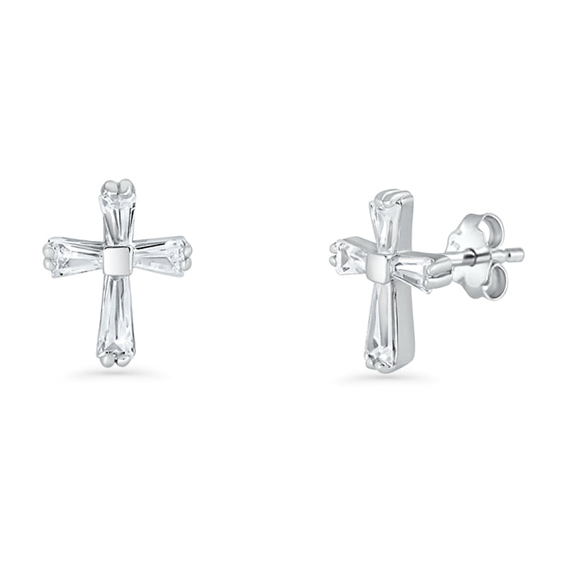 Vintage Style 10mm Cross Stud Earrings Baguette Cubic Zirconia 925 Sterling Silver
