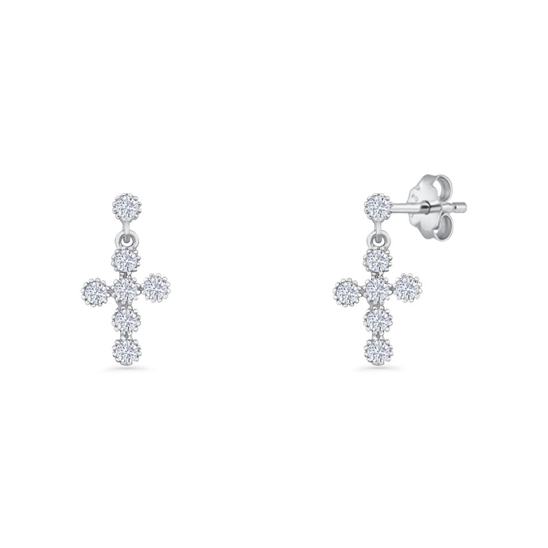 Item Specifications: Metal Type: Sterling Silver.Metal Stamp or Hallmark: .925Metal Purity: 92.5% Sterling.Gemstone: Cubic Zirconia.Gemstone Creation Method: Simulated. Face Measurements From South To North: 21mm(0.82inch).Earring Type: Stud Earring. Design: Cross Drop Earrings