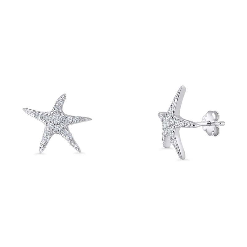 Starfish Stud Earrings 11mm Cubic Zirconia 925 Sterling Silver