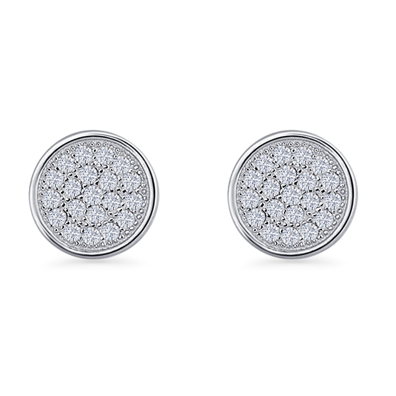 Minimalist 8mm Round Stud Earrings Cluster Cubic Zirconia 925 Sterling Silver