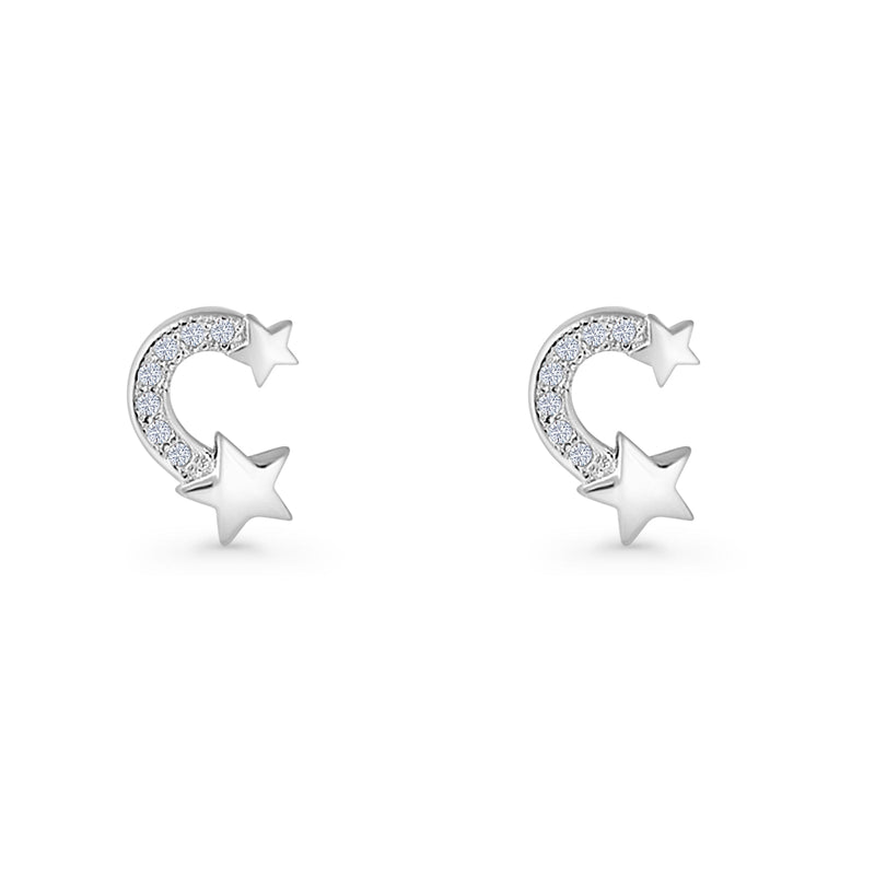 Petite 9mm Shooting Star Stud Earrings Cubic Zirconia 925 Sterling Silver