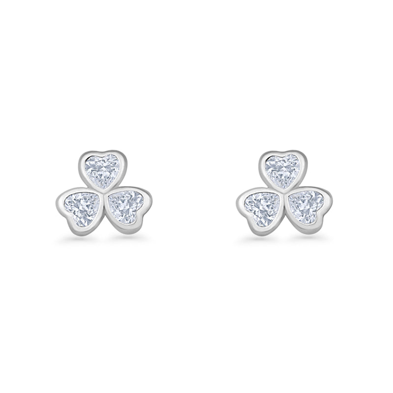 Minimalist 8mm Clover Leaf Stud Earrings Cubic Zirconia 925 Sterling Silver