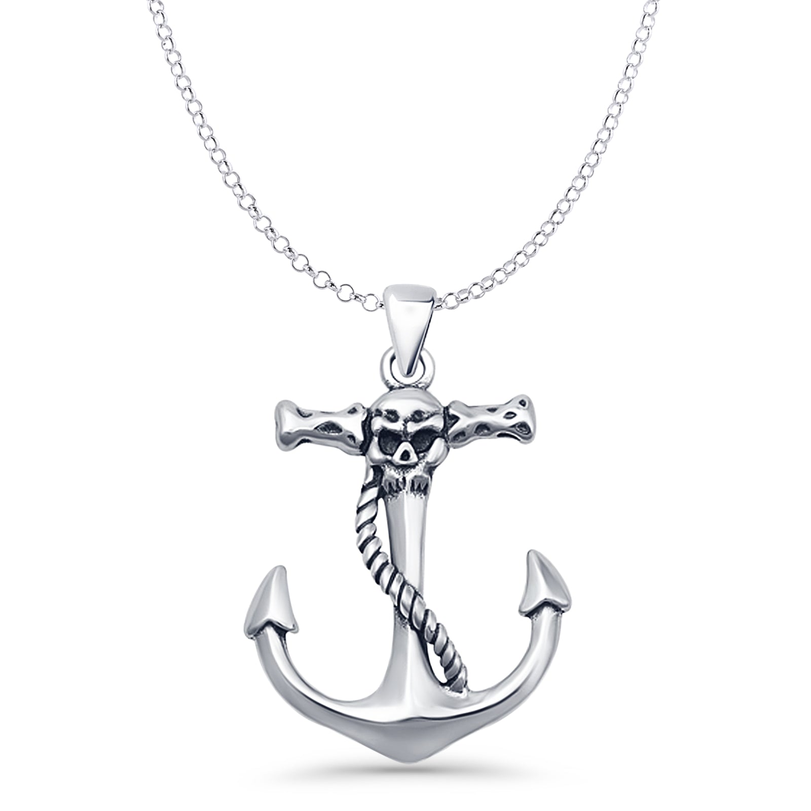 Style: Oxidized Anchor & Skull Pendant Necklace
