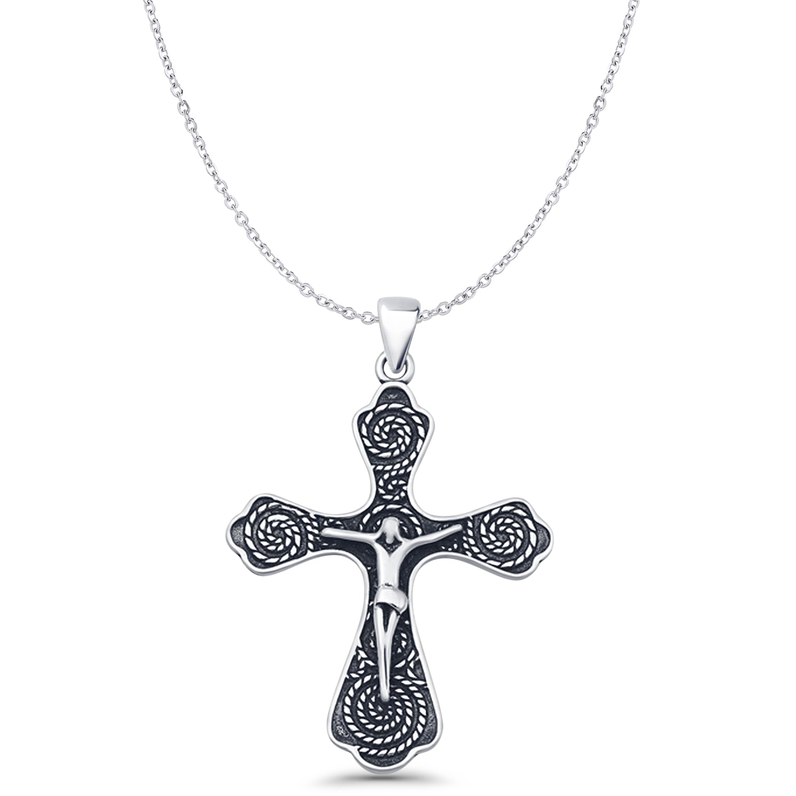 Style: Oxidized Crucifix Cross Pendant Necklace