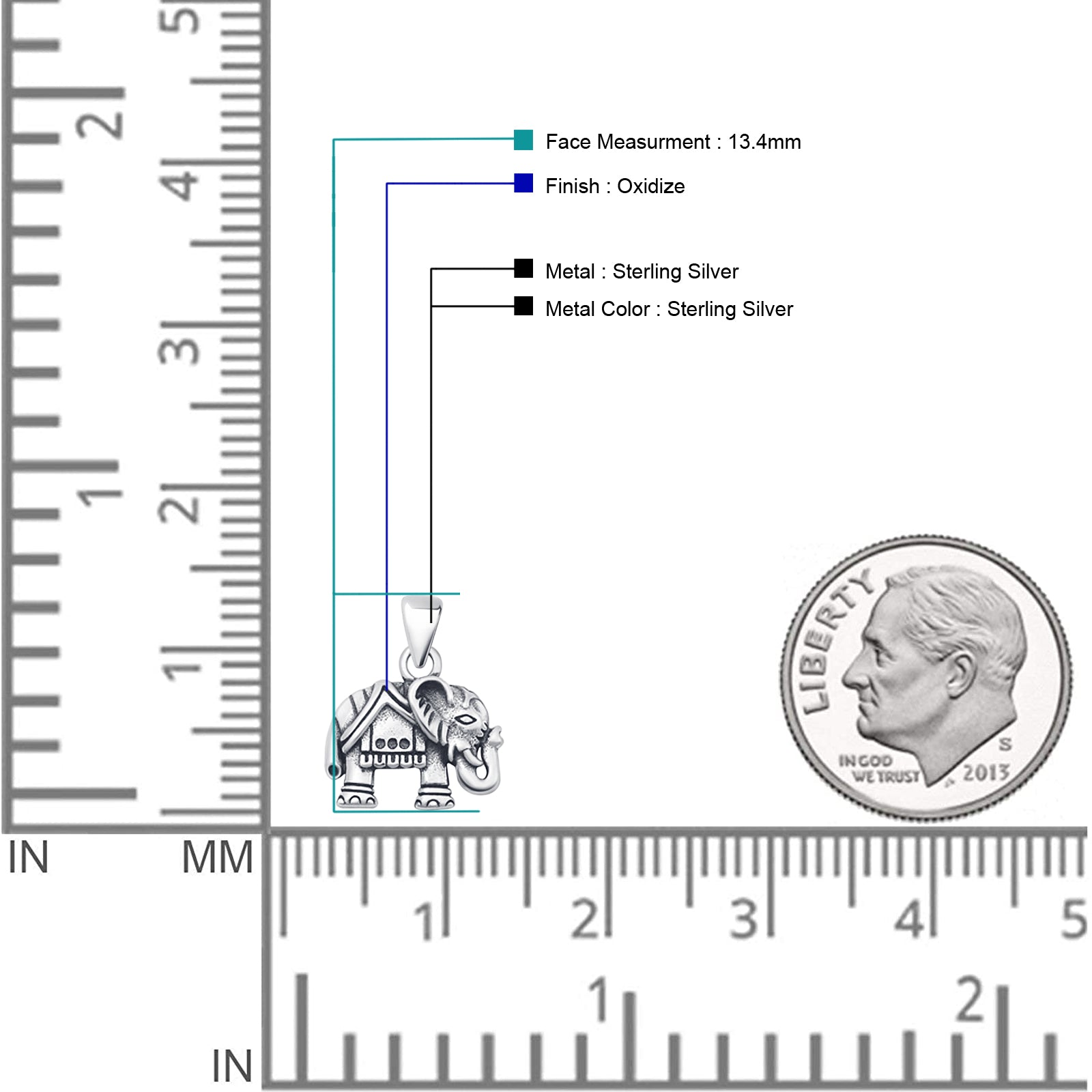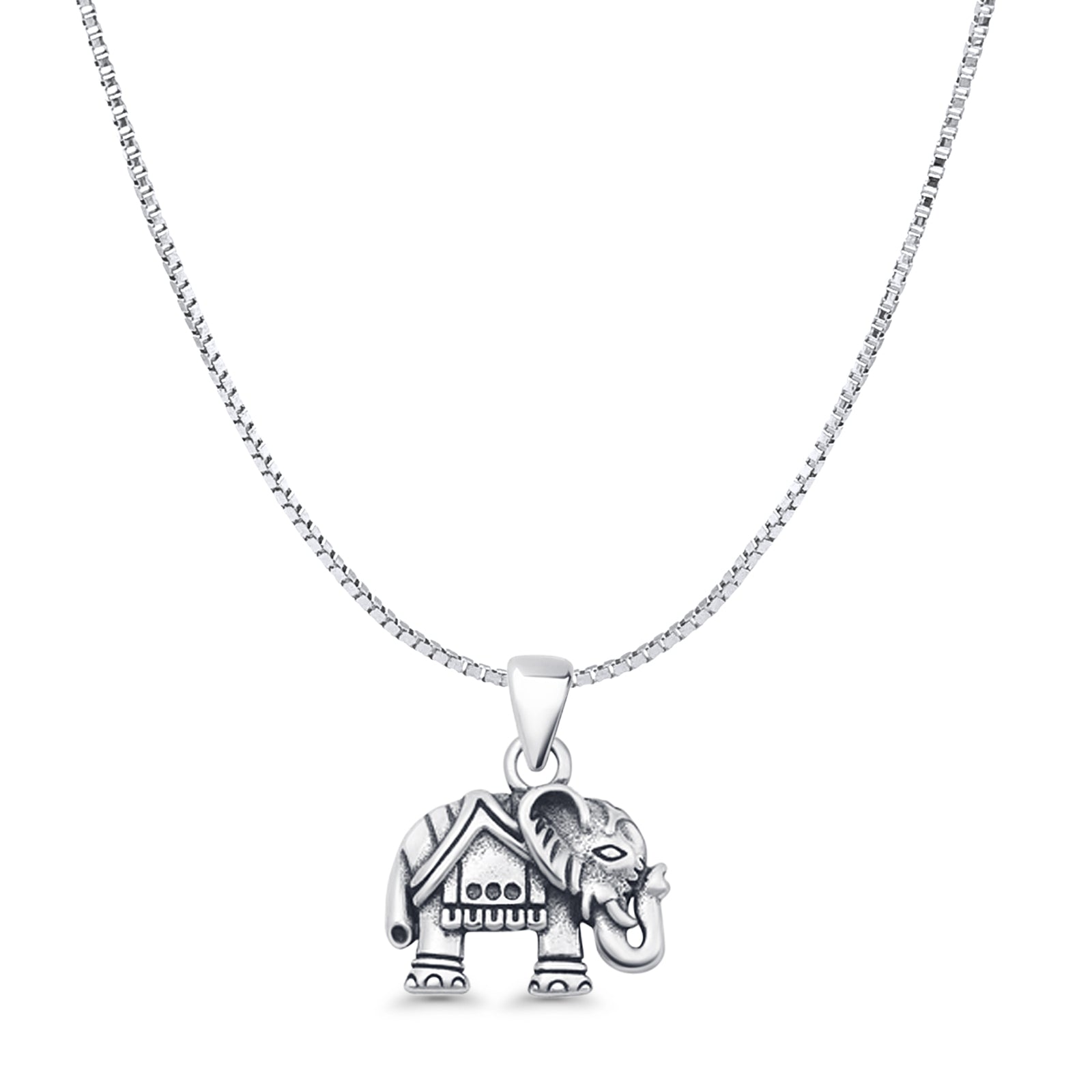 Elephant Charm Pendant Box Chain Necklace Oxidized 925 Sterling Silver