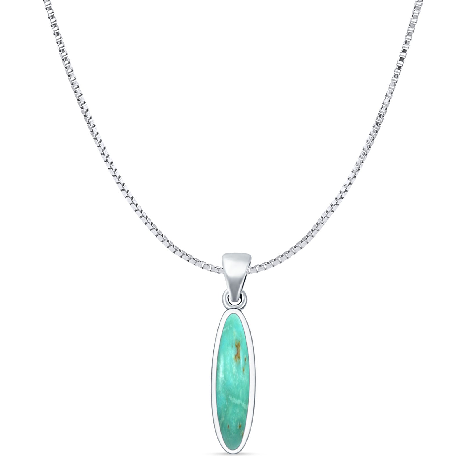 Oval Turquoise Pendant Box Chain Necklace Oxidized 925 Sterling Silver