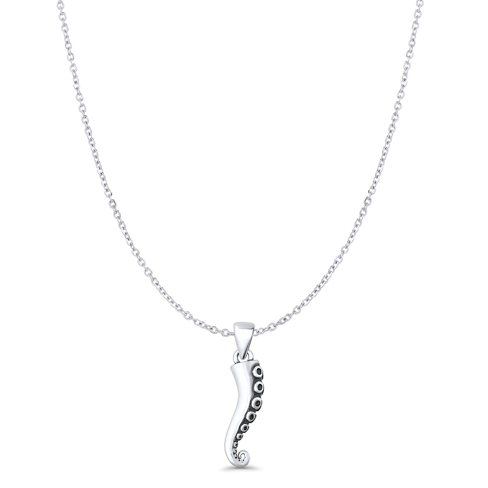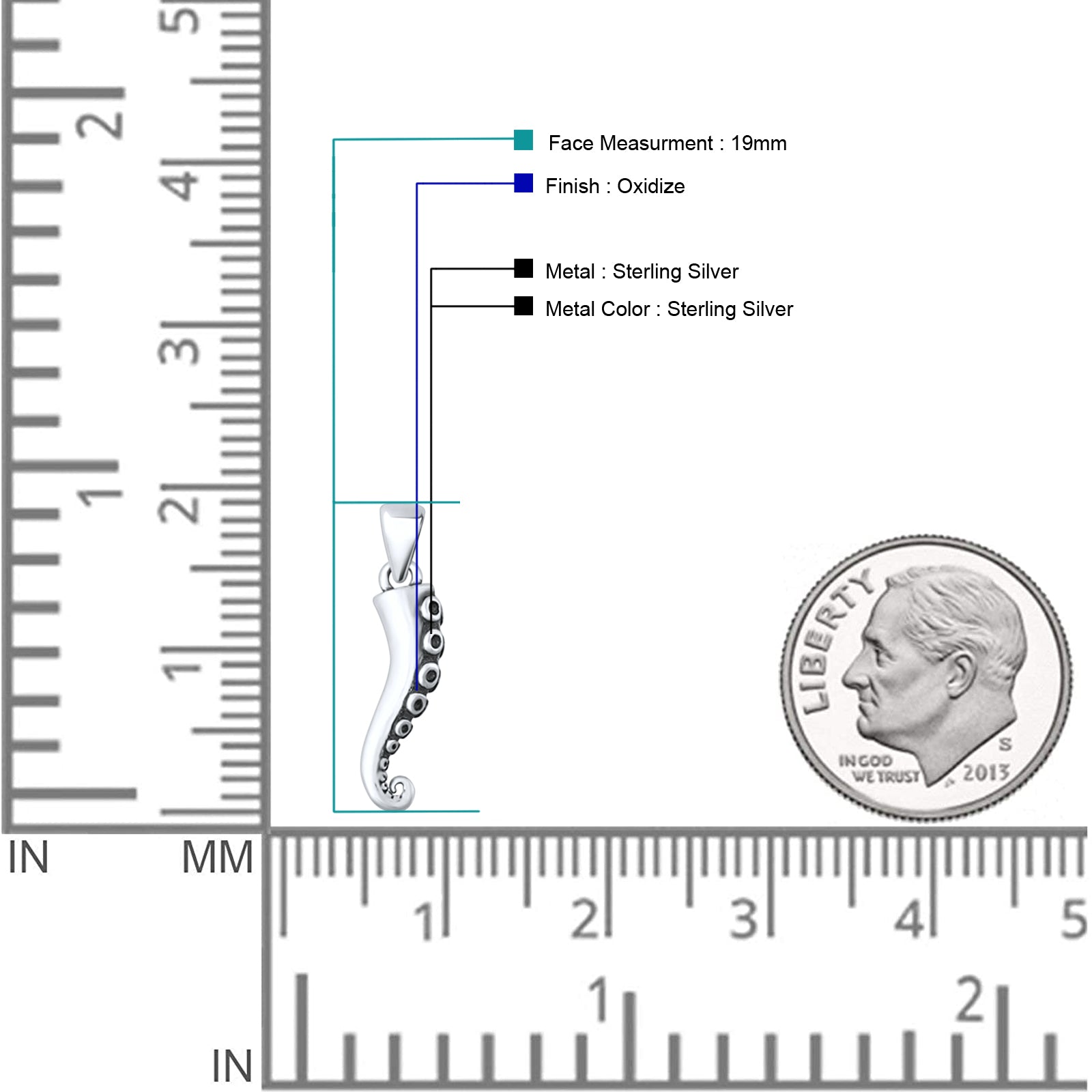 Tentacle Charm Pendant Cable Chain Necklace 19mm Oxidized 925 Sterling Silver