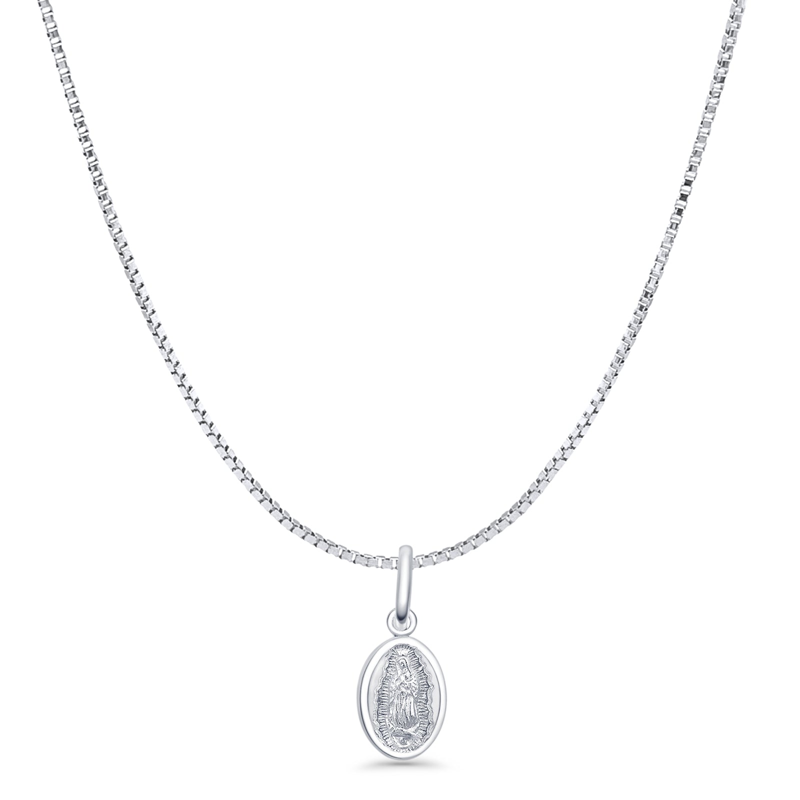 Virgin Mary Pendant Box Chain Necklace Oxidized 925 Sterling Silver