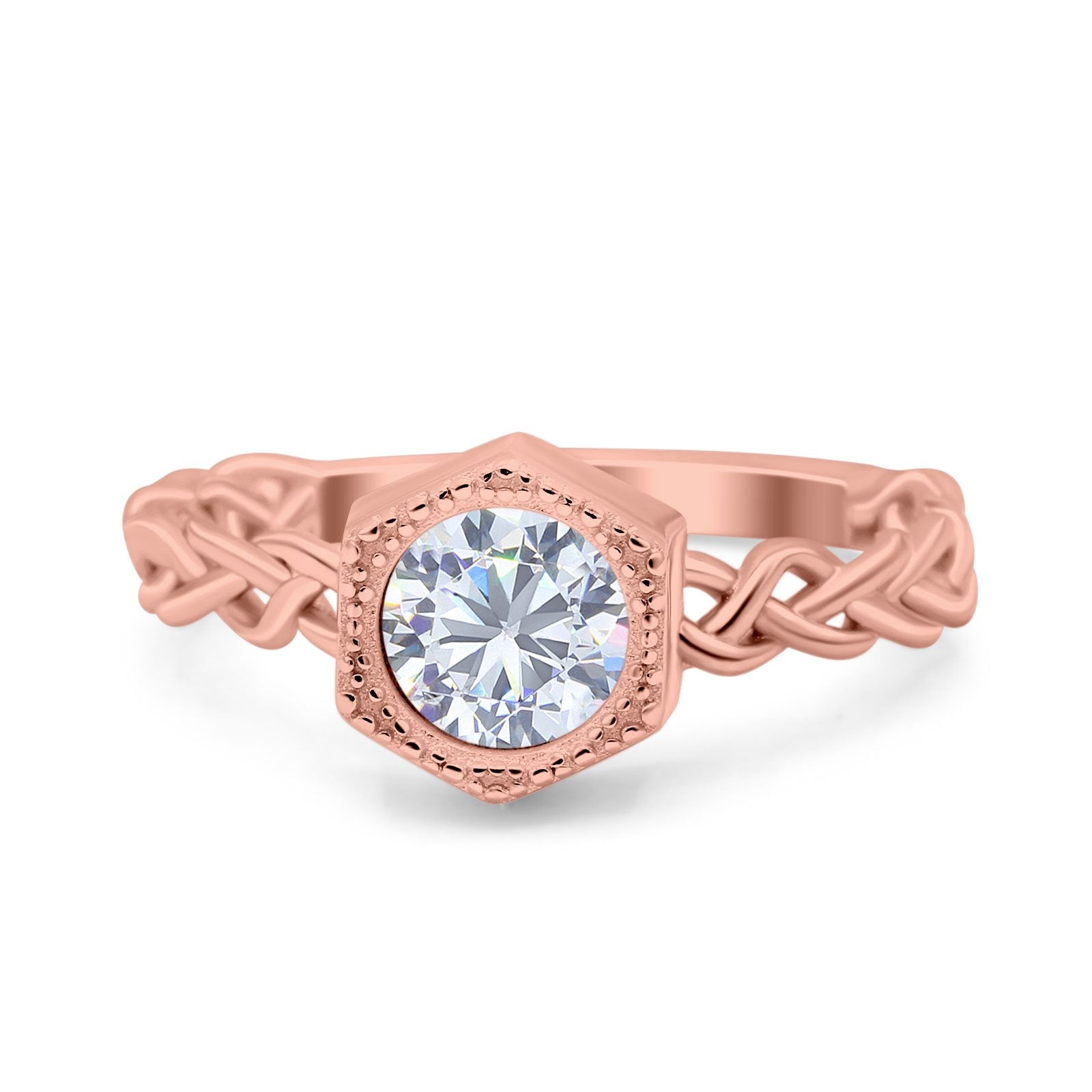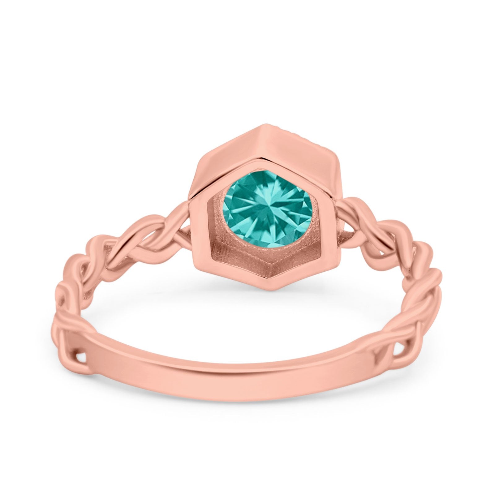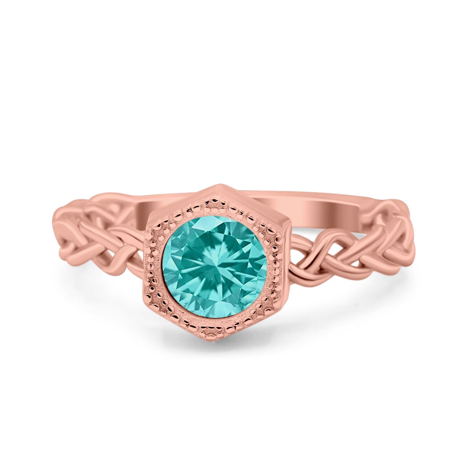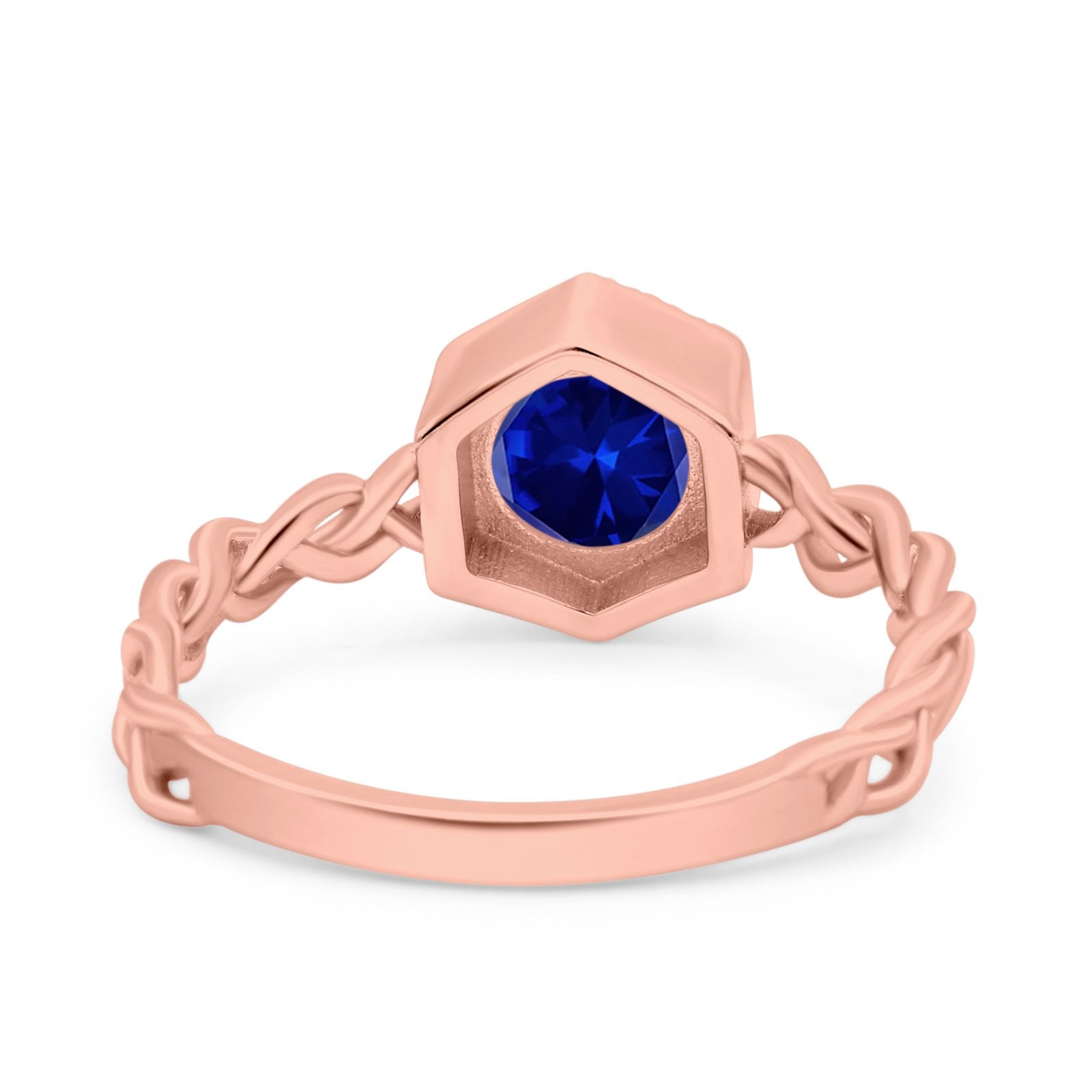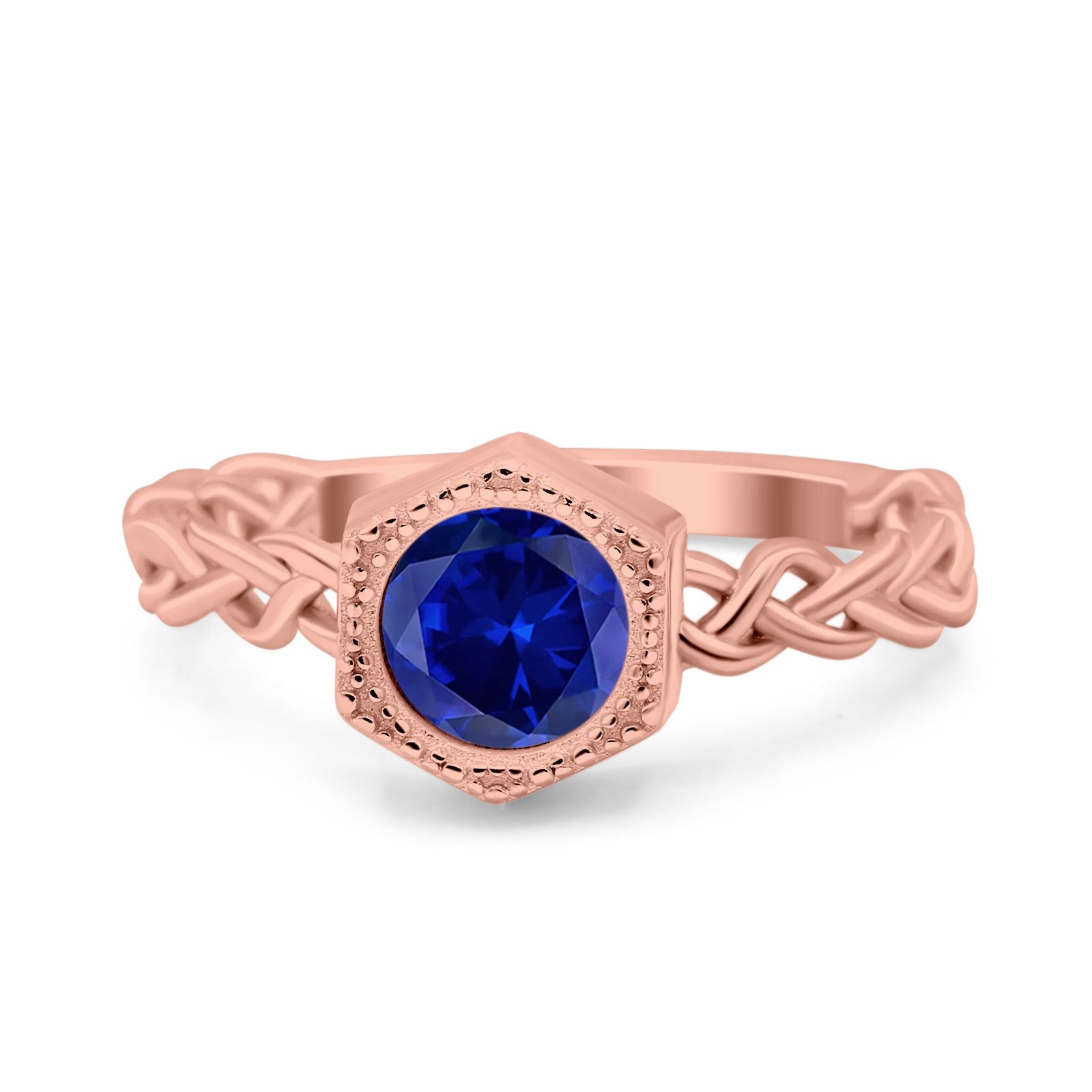 CZ & Blue Sapphire CZ Rose Tone Silver