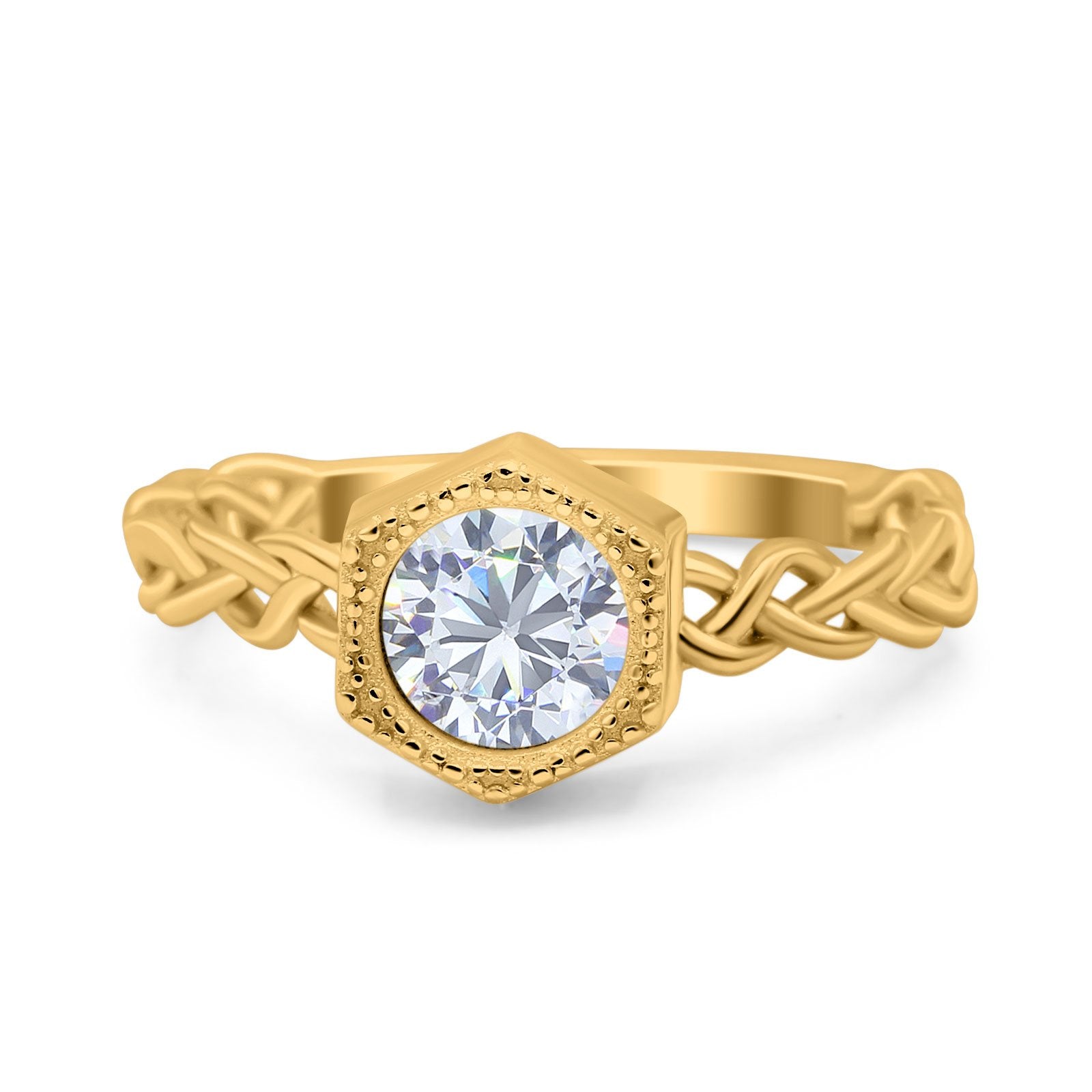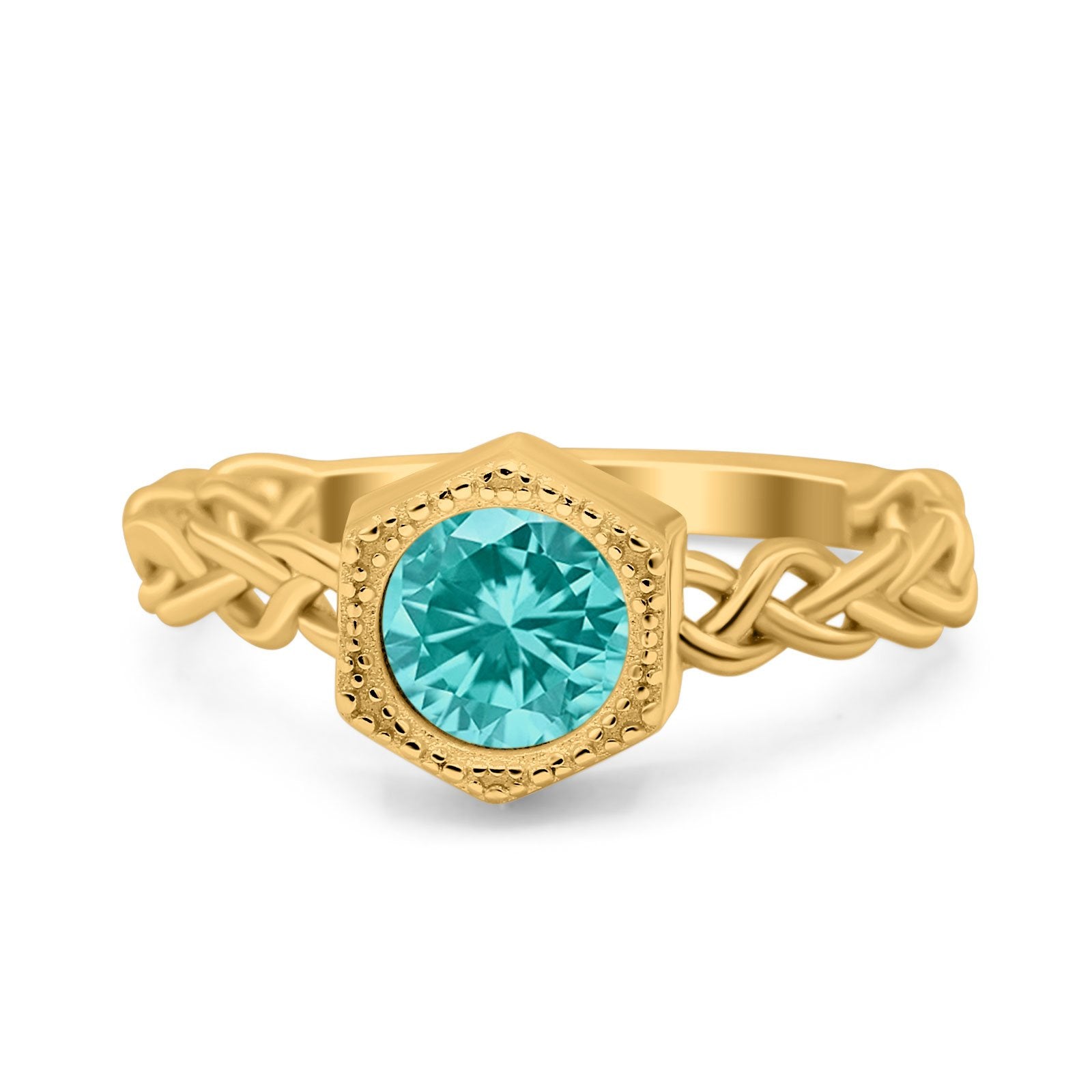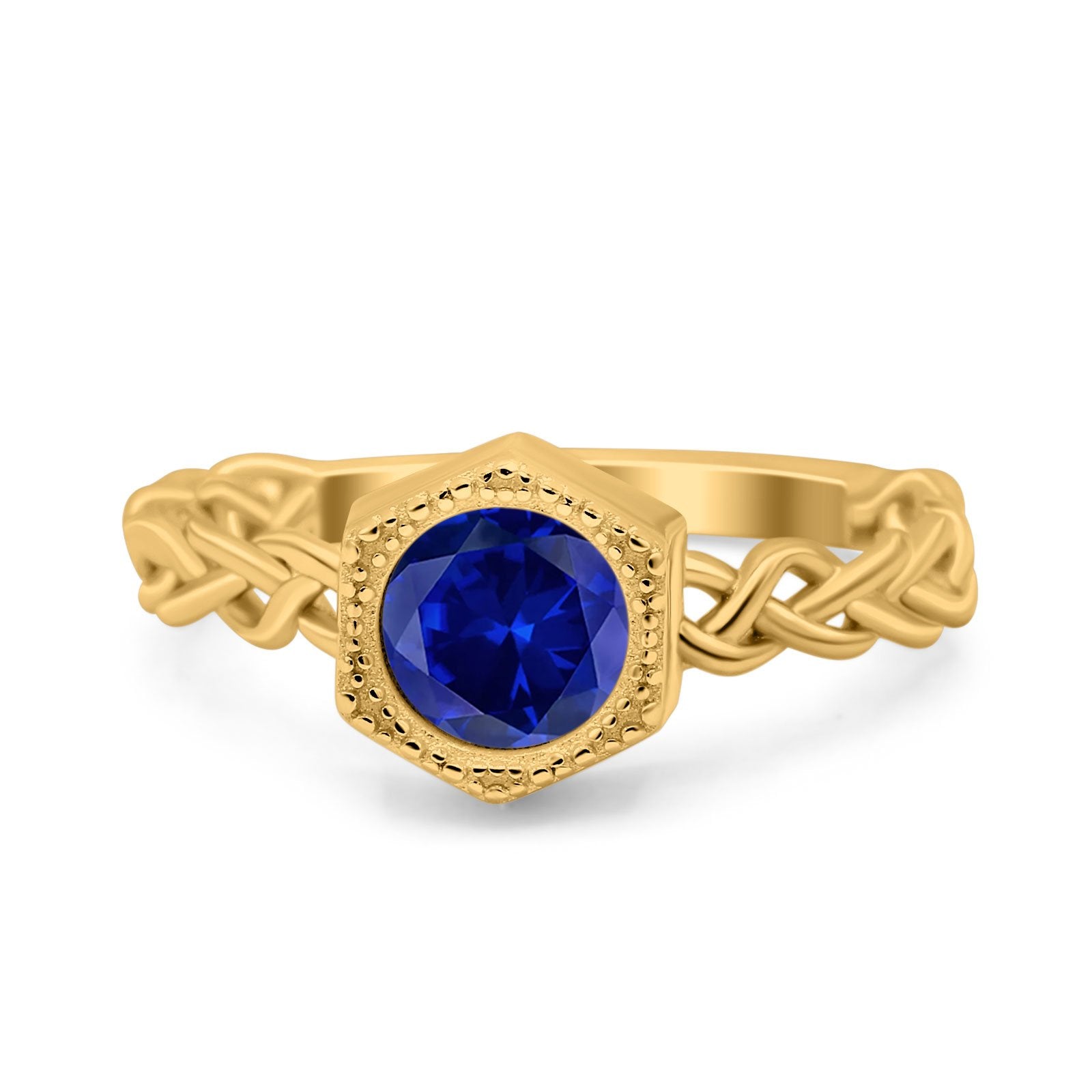 CZ & Blue Sapphire CZ Yellow Tone Silver