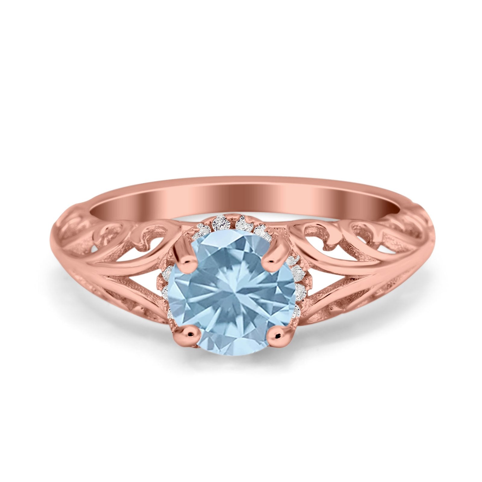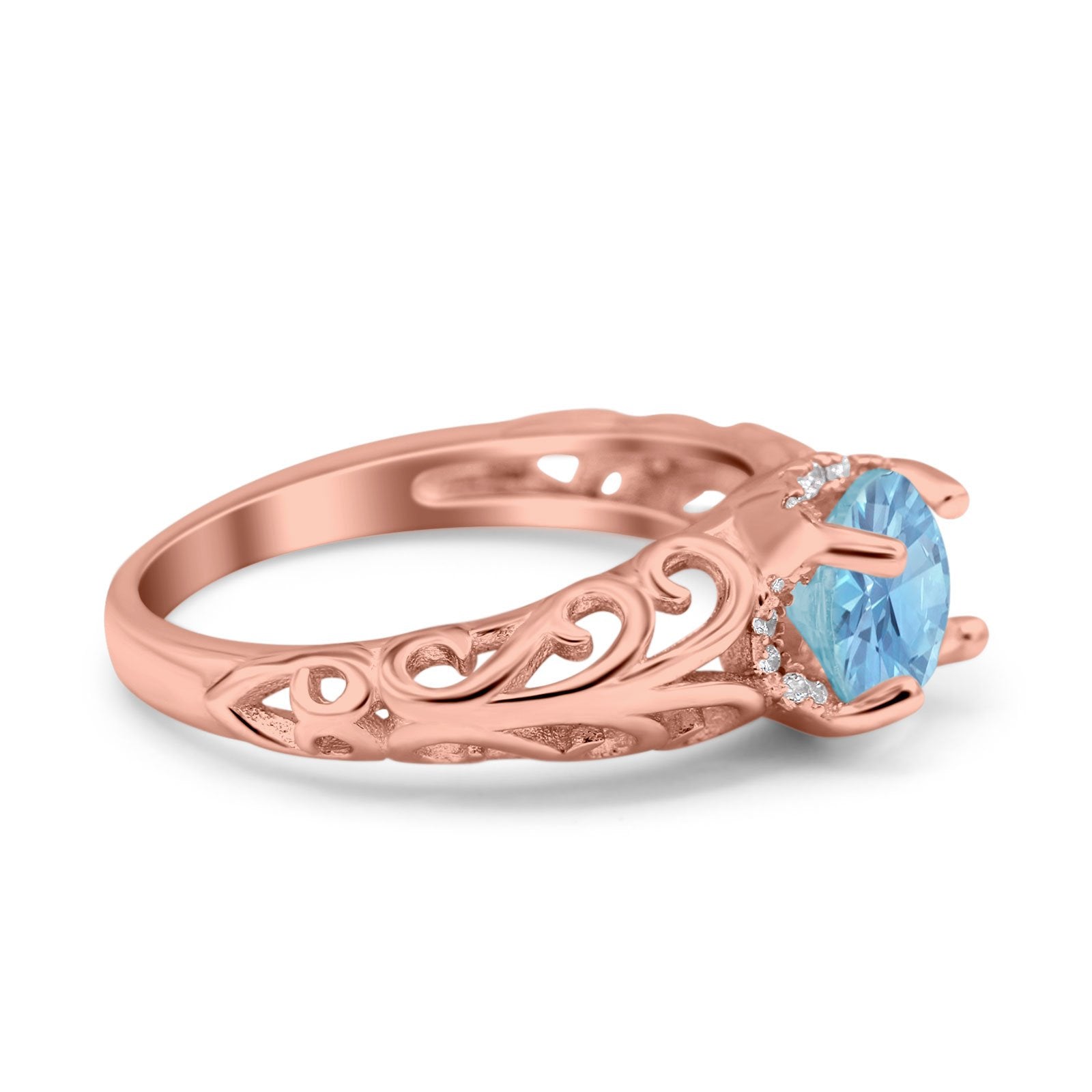 CZ & Blue Sapphire CZ Rose Tone Silver