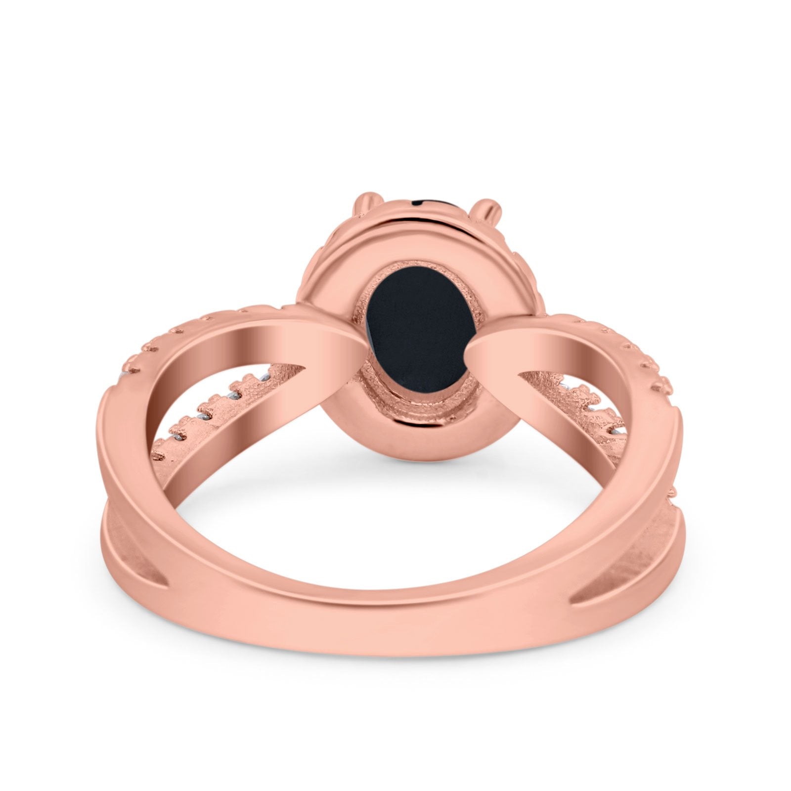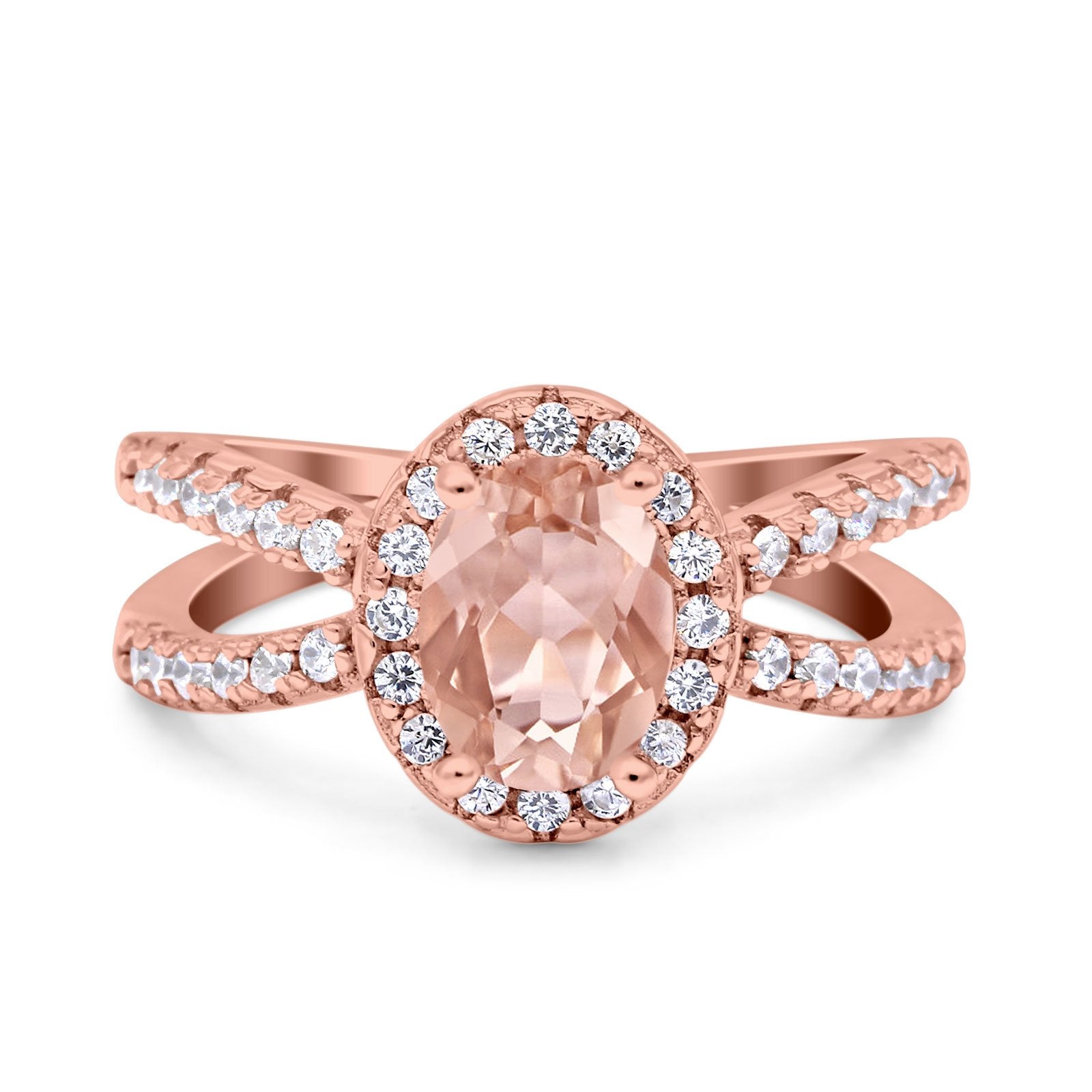 CZ & Blue Sapphire CZ Rose Tone Silver
