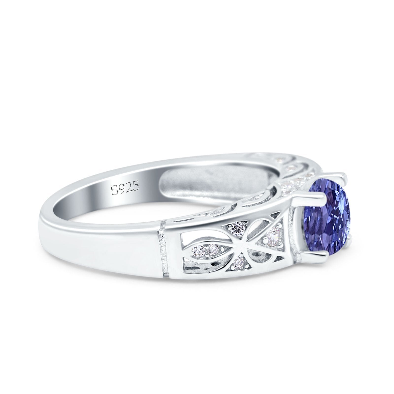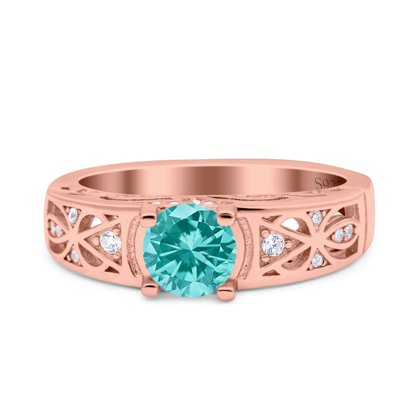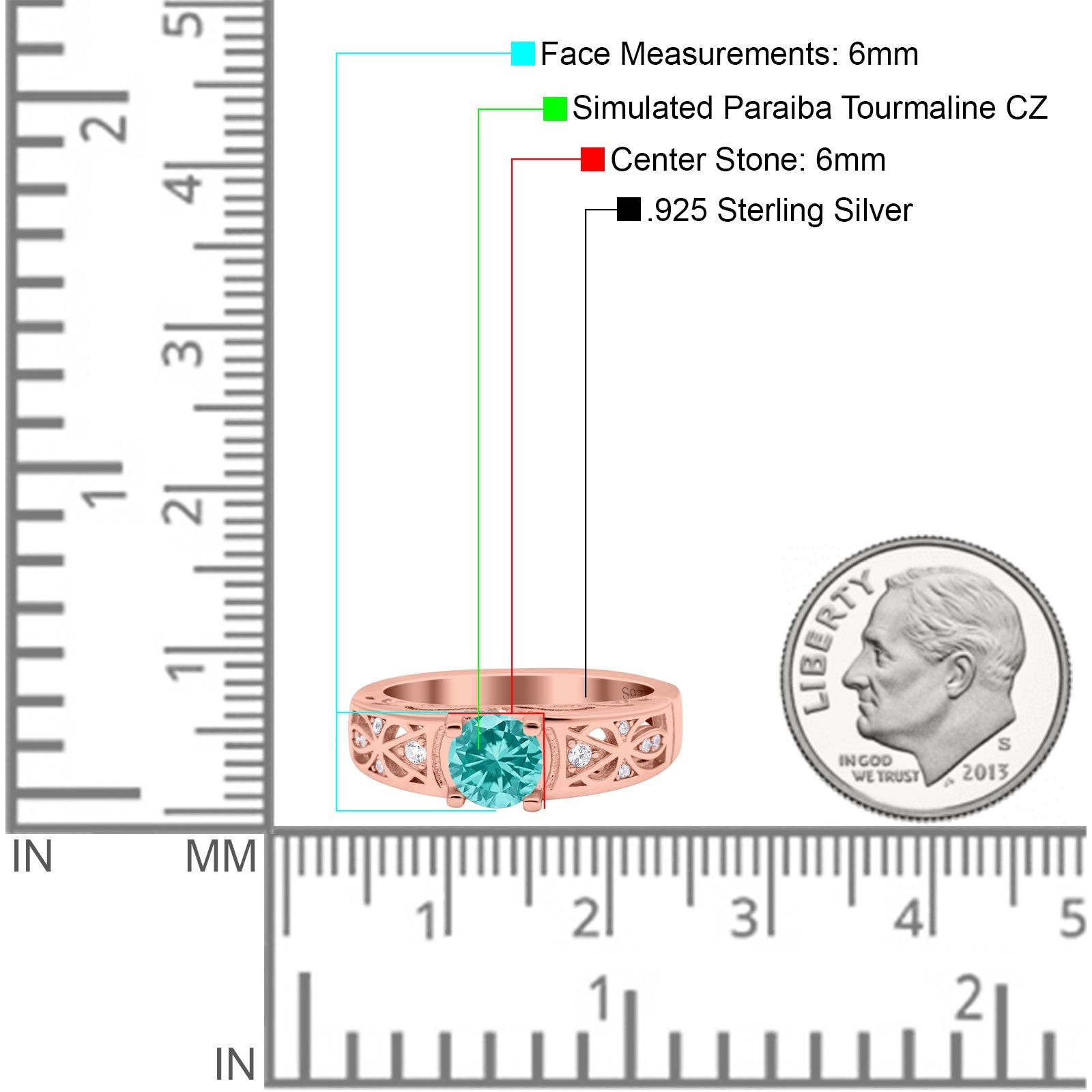 CZ & Blue Sapphire CZ Rose Tone Silver