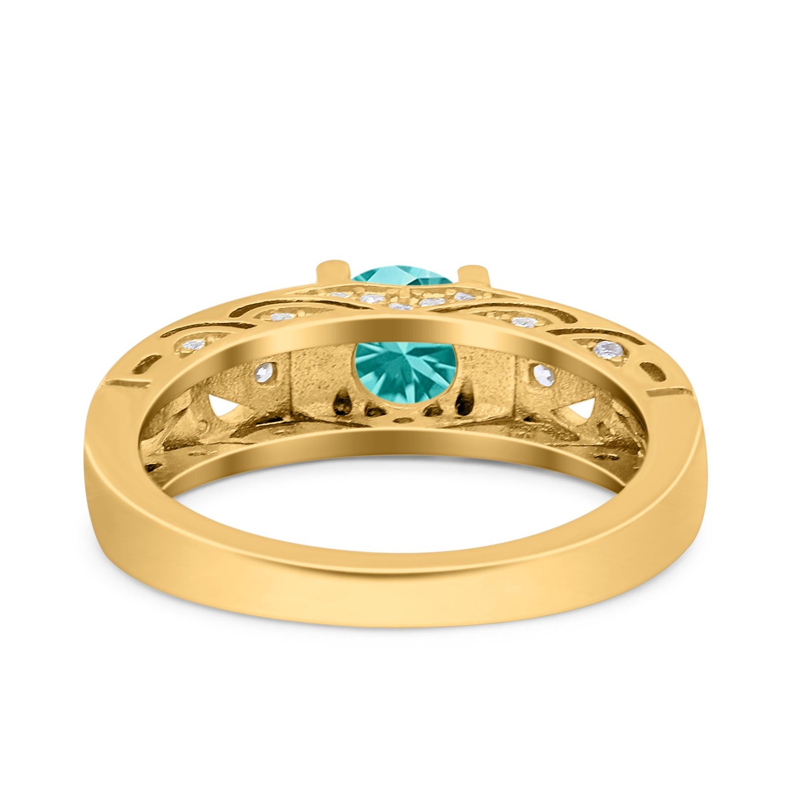 CZ & Blue Sapphire CZ Yellow Tone Silver