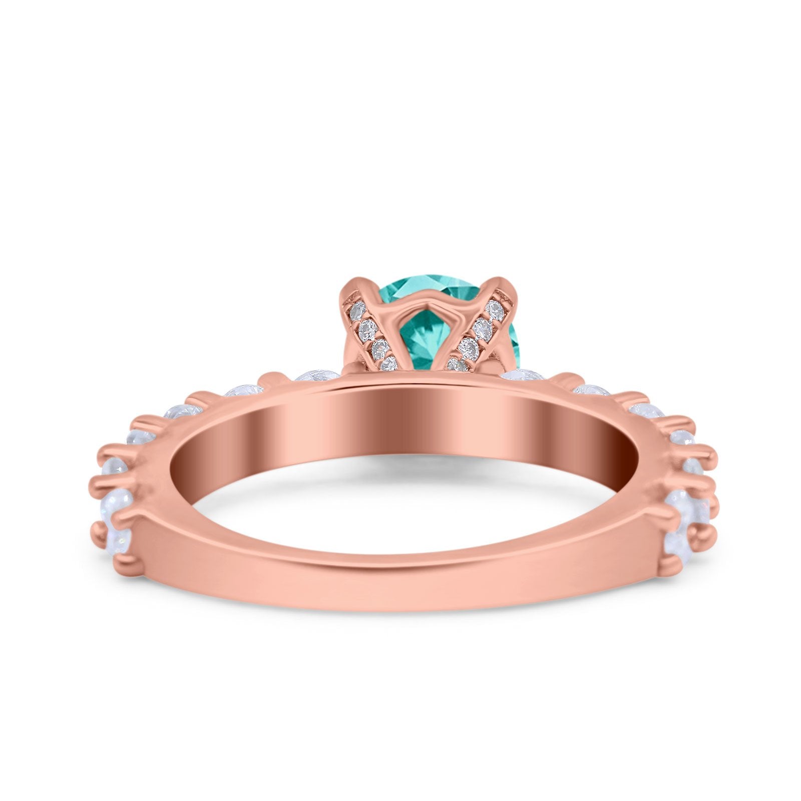 CZ & Blue Sapphire CZ Rose Tone Silver