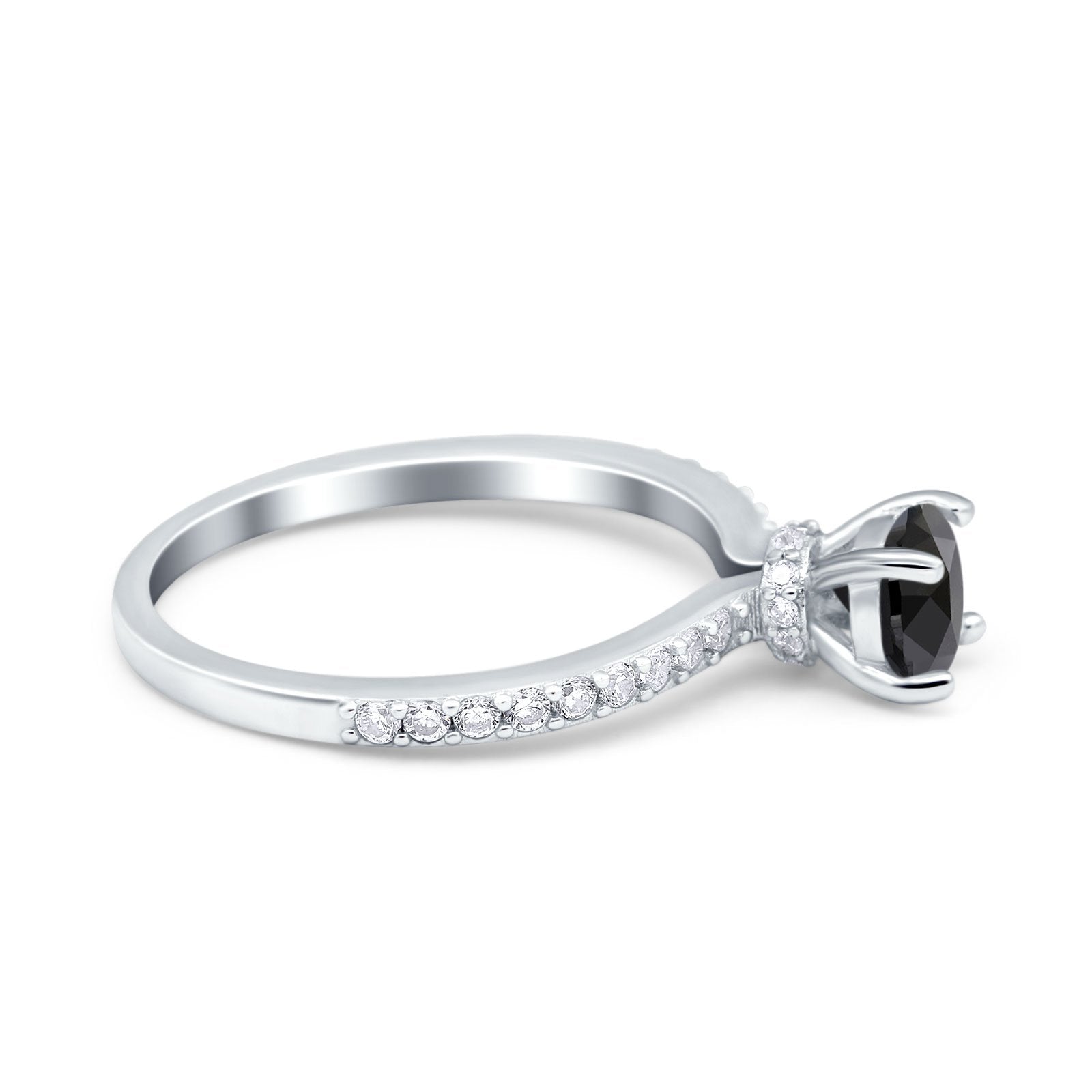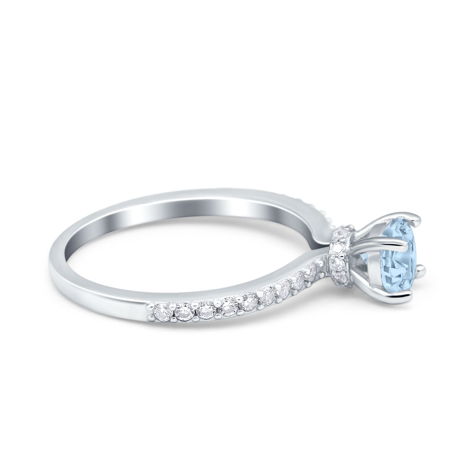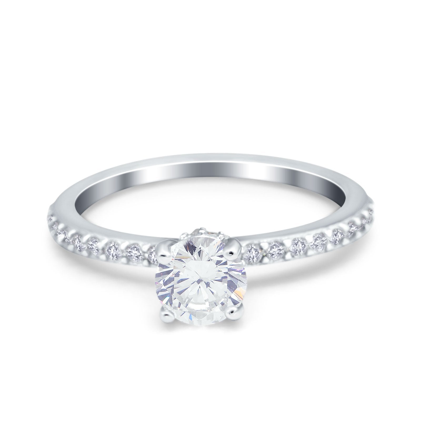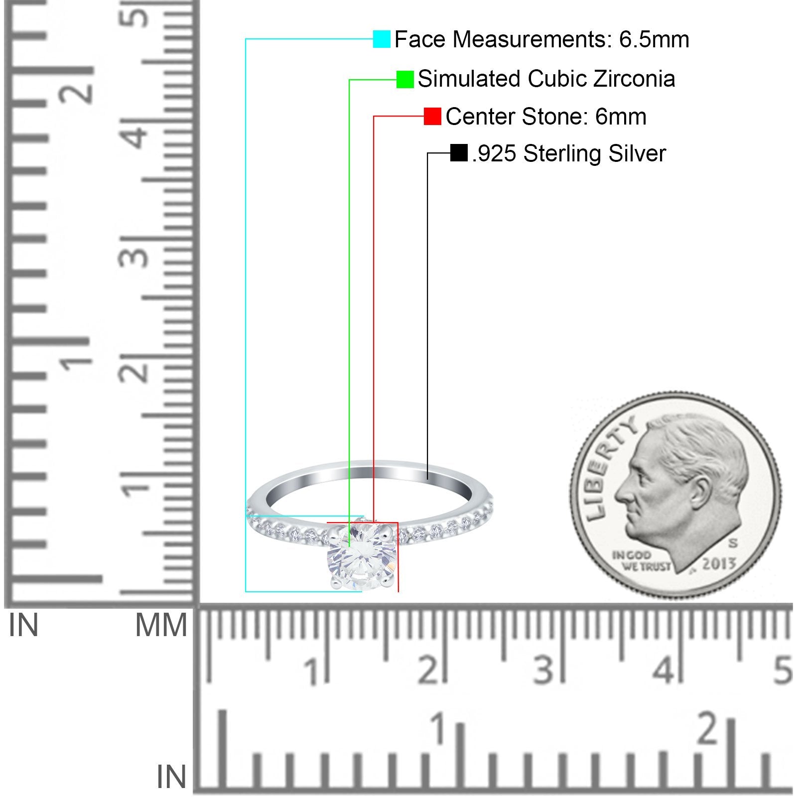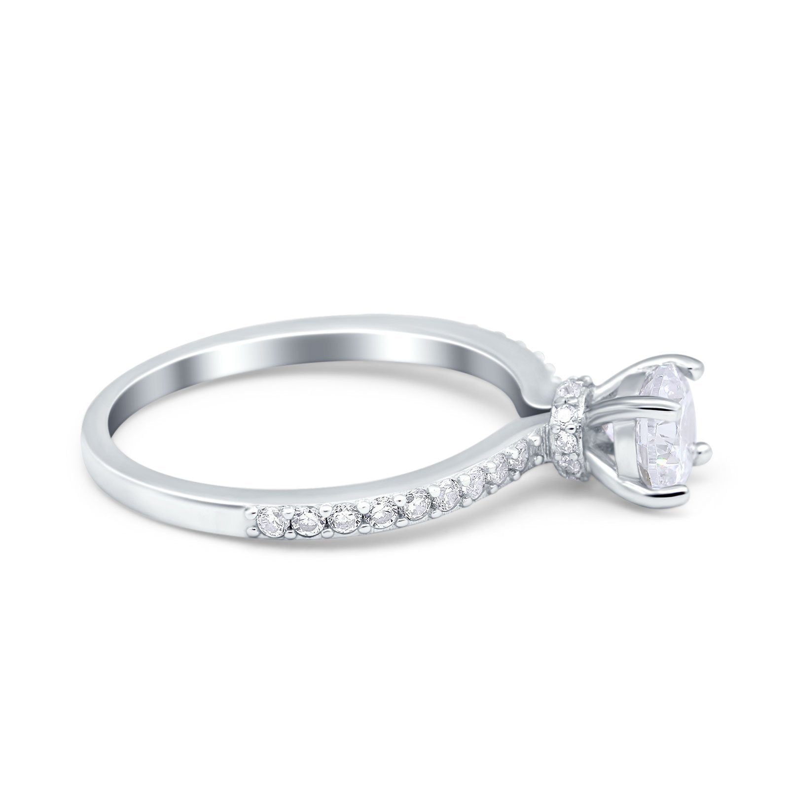 Art Deco Wedding Engagement Ring Simulated Cubic Zirconia Accent Vintage Bridal Ring Round 925 Sterling Silver