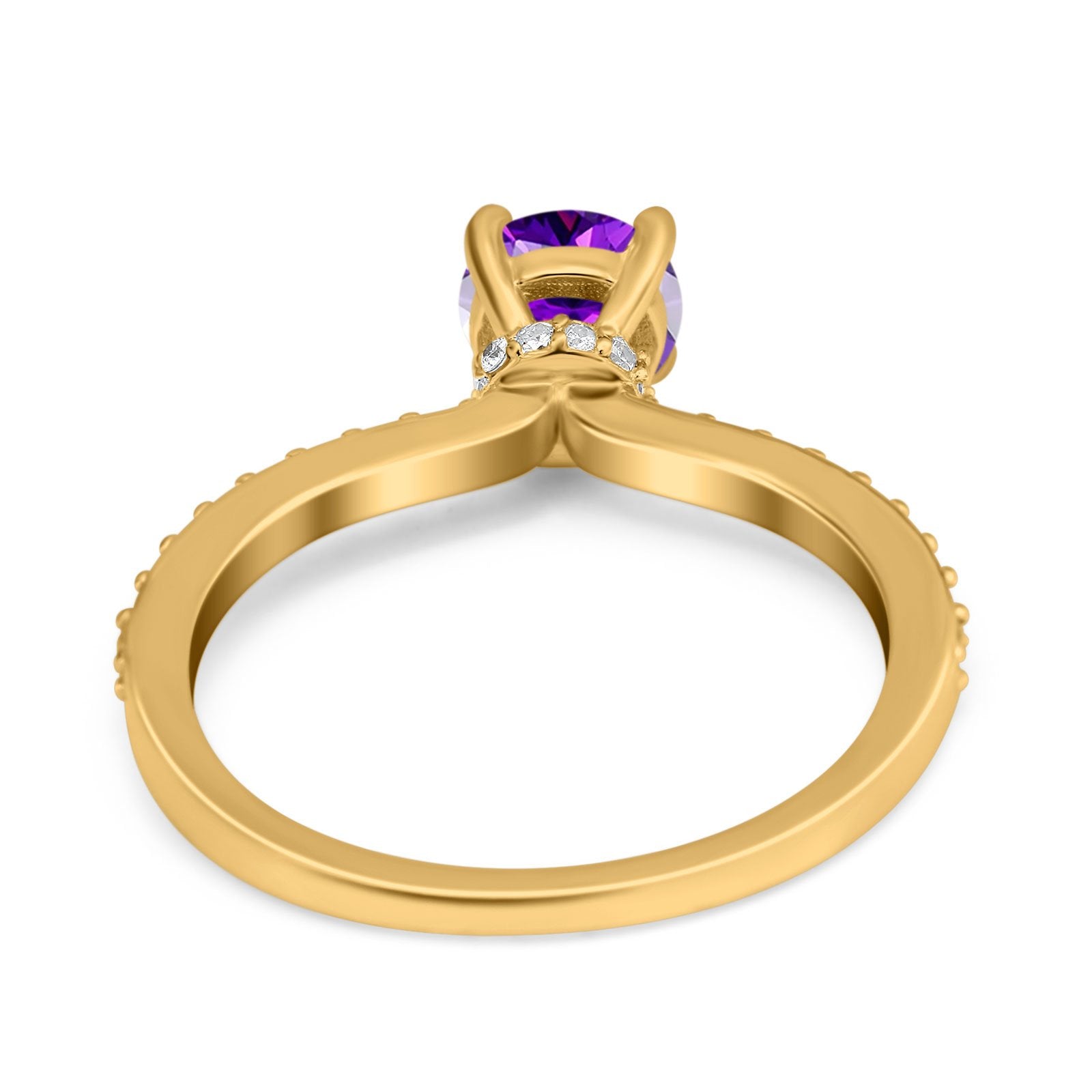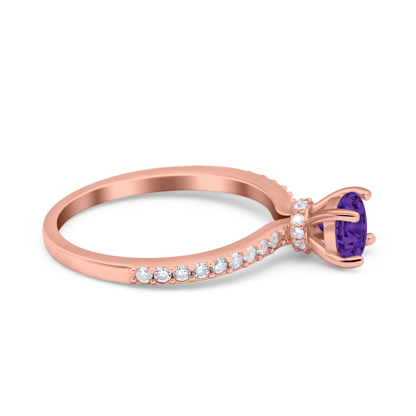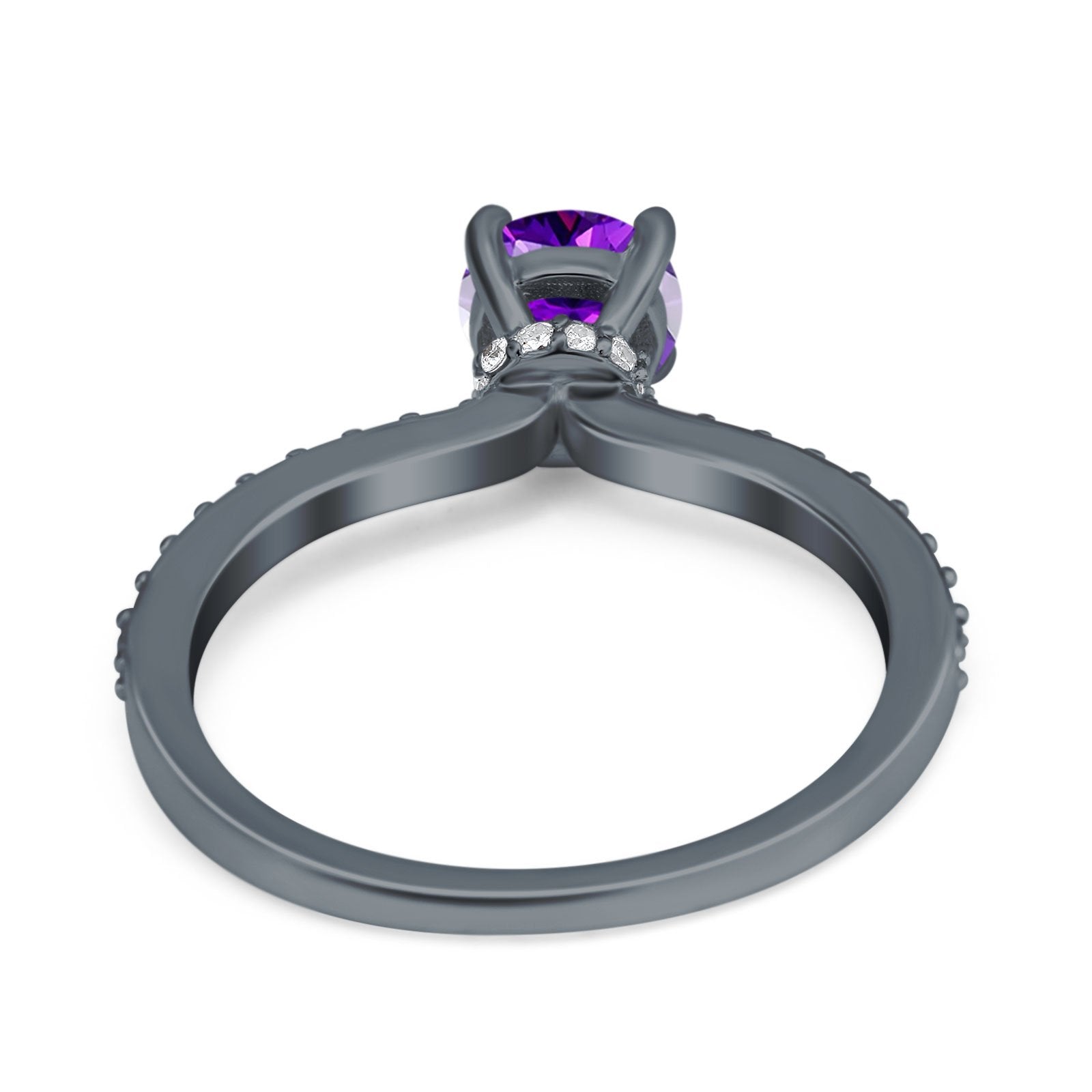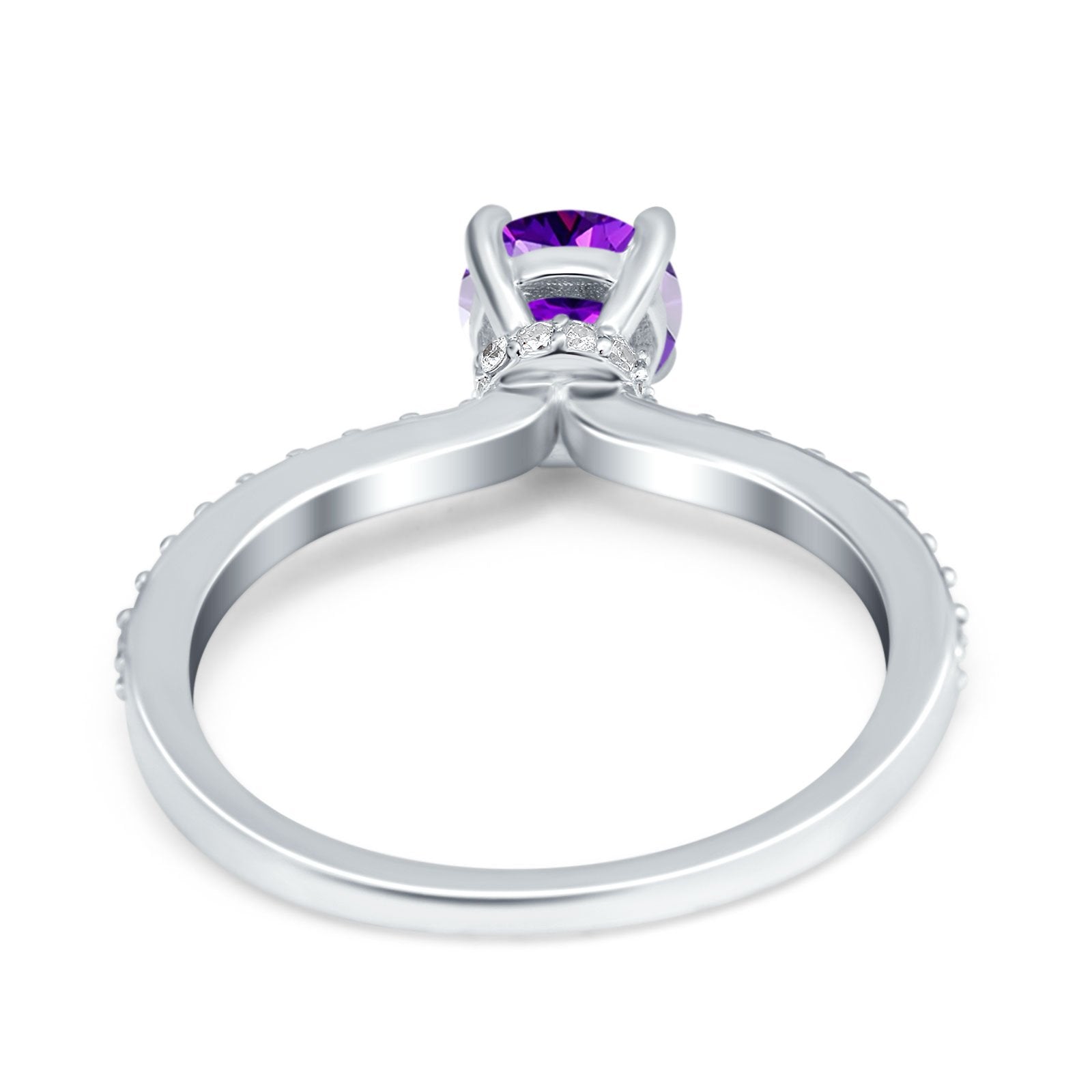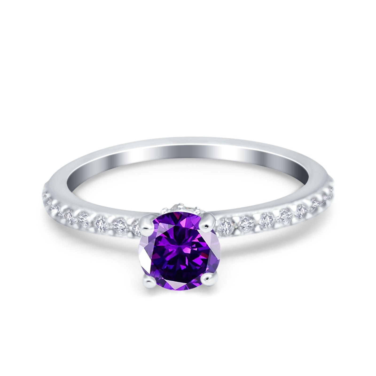 Art Deco Wedding Engagement Ring Simulated Cubic Zirconia Accent Vintage Bridal Ring Round 925 Sterling Silver