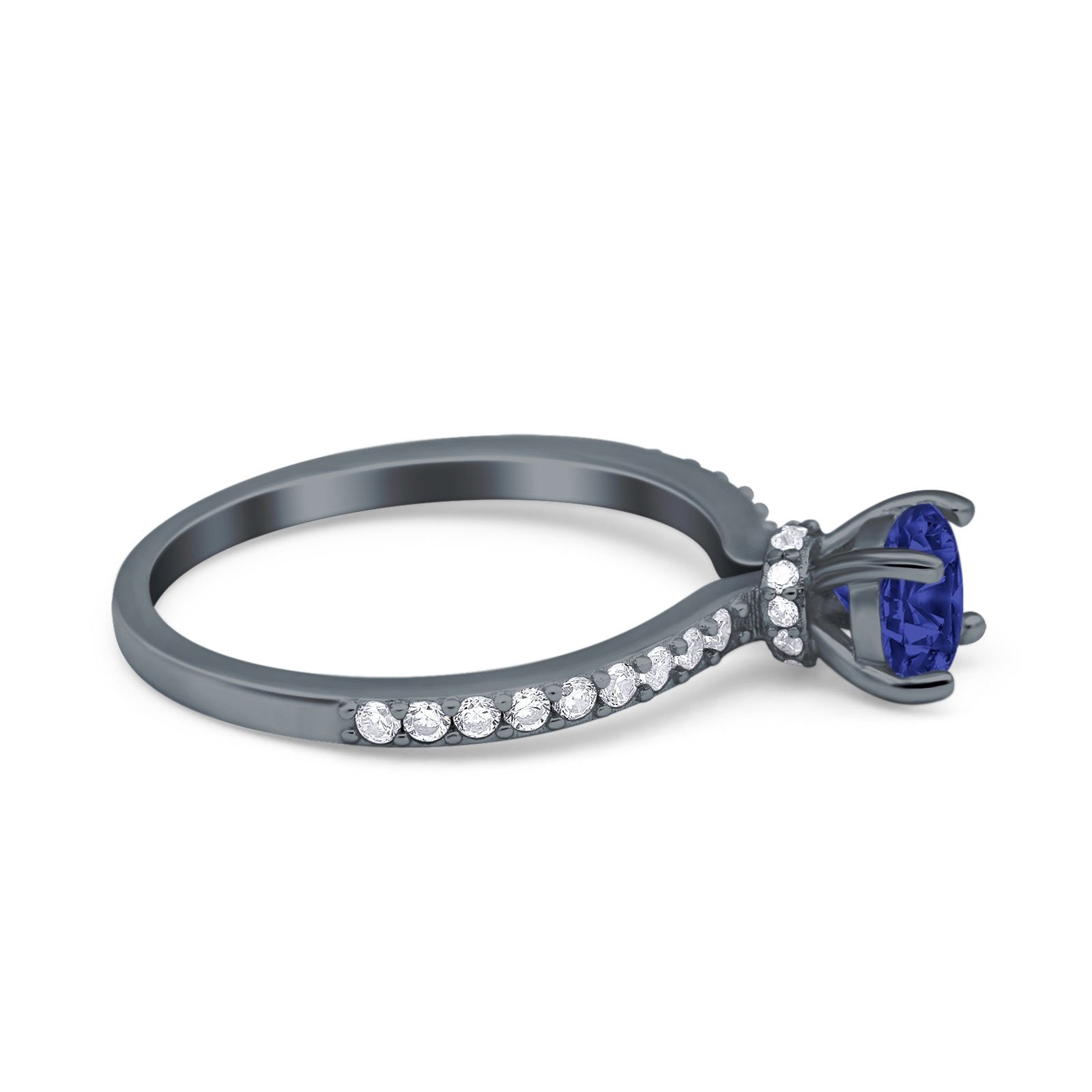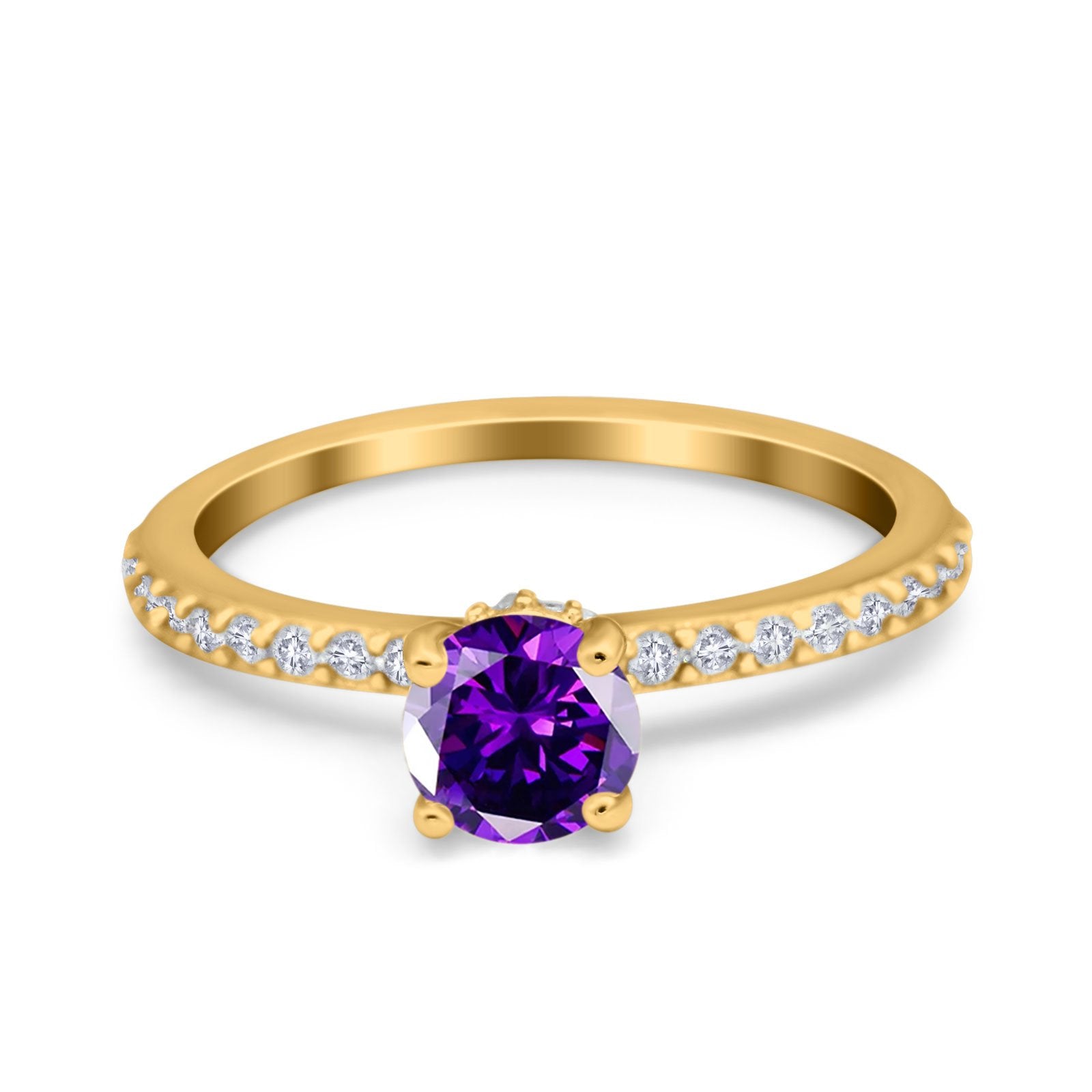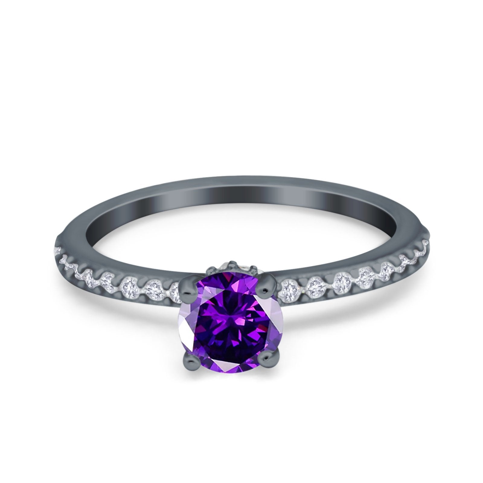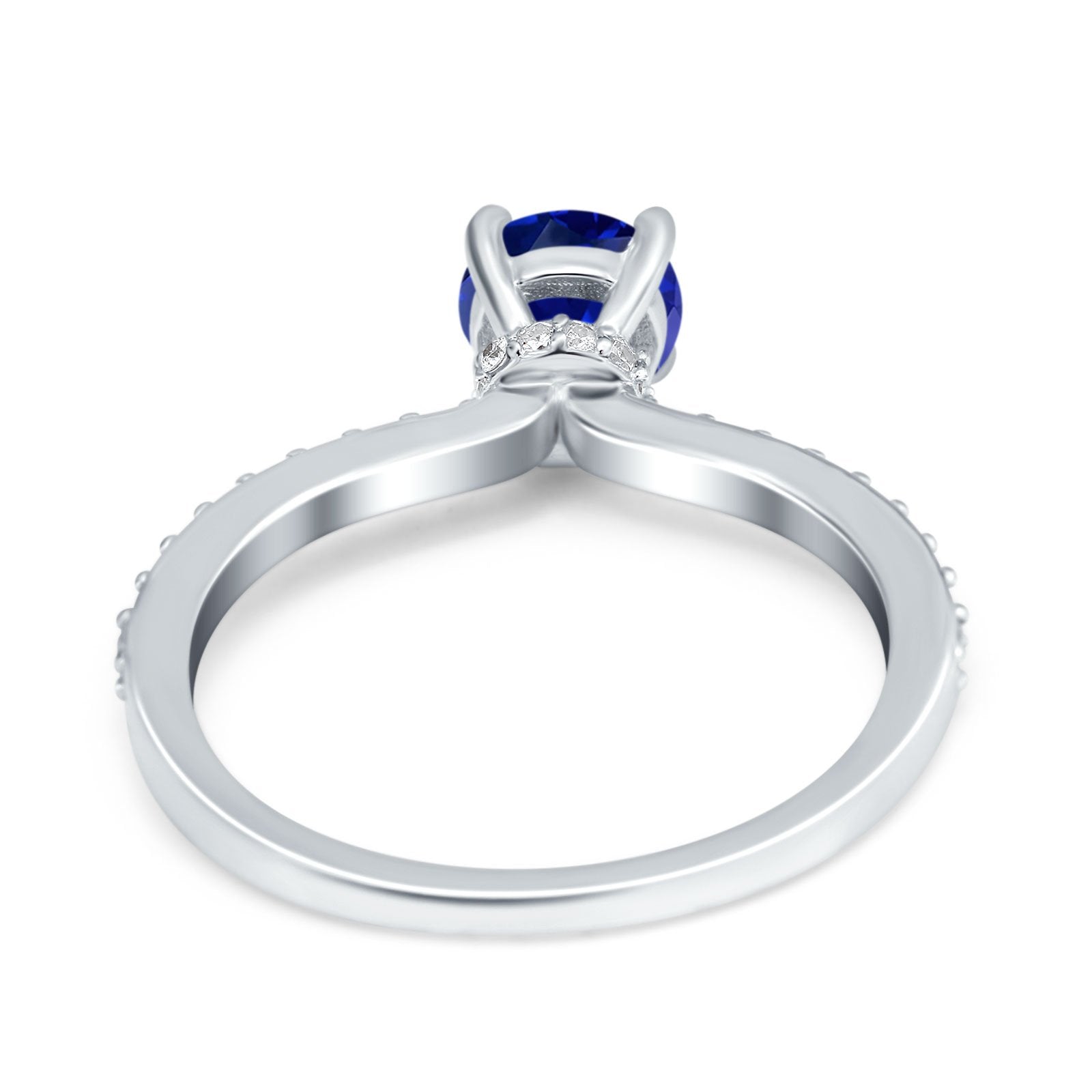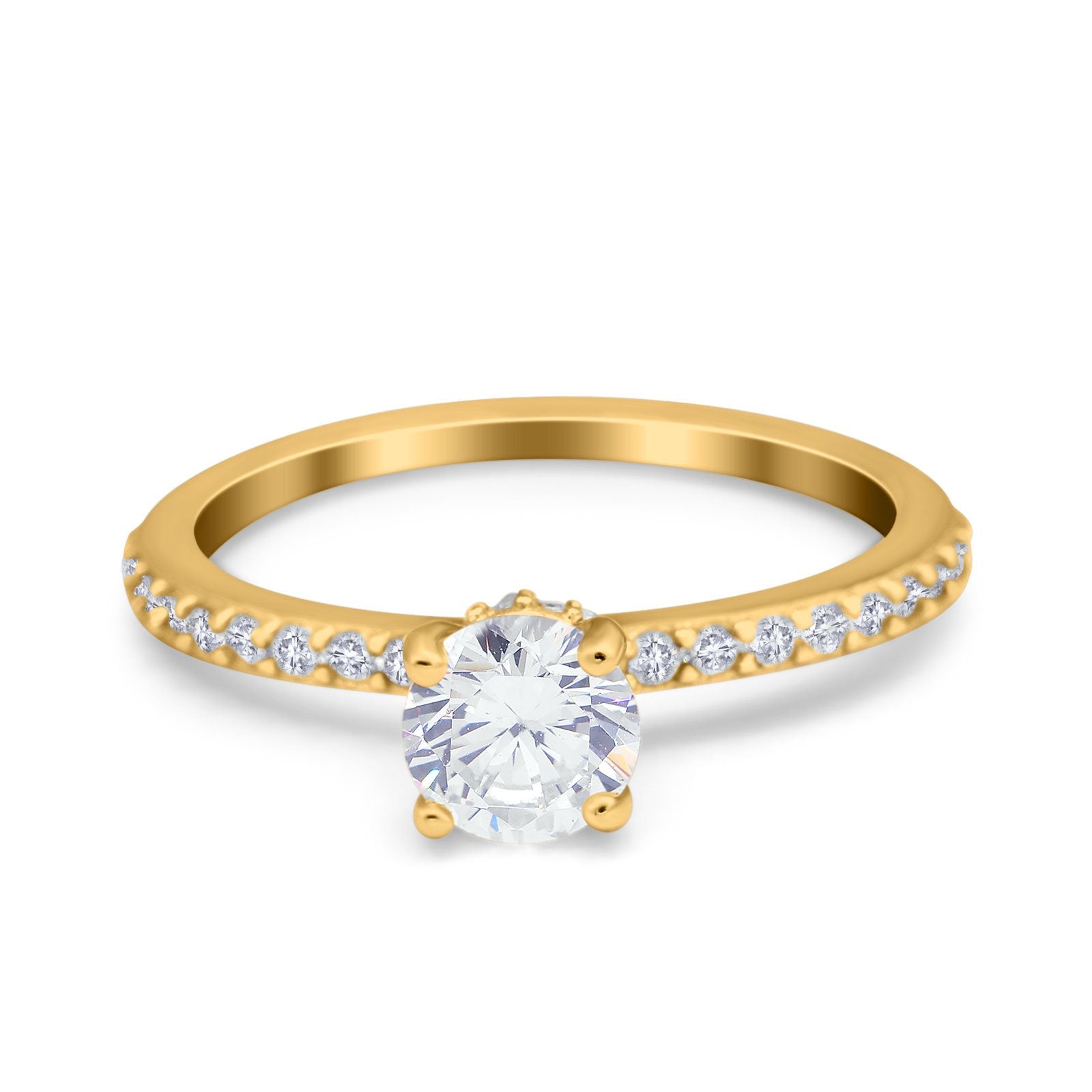 Art Deco Wedding Engagement Ring Simulated Cubic Zirconia Accent Vintage Bridal Ring Round 925 Sterling Silver