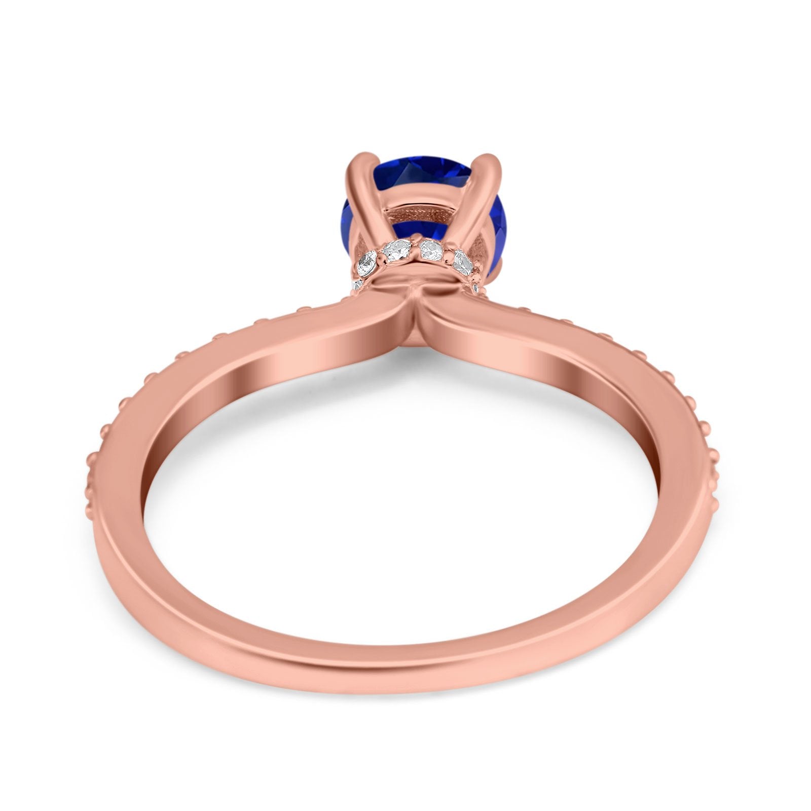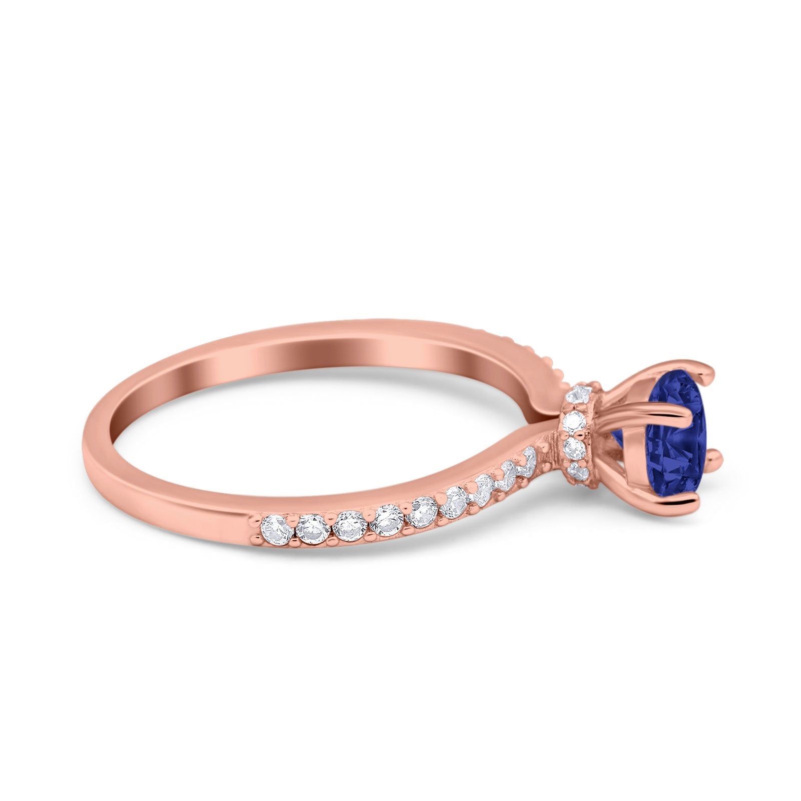 CZ & Blue Sapphire CZ Rose Tone Silver