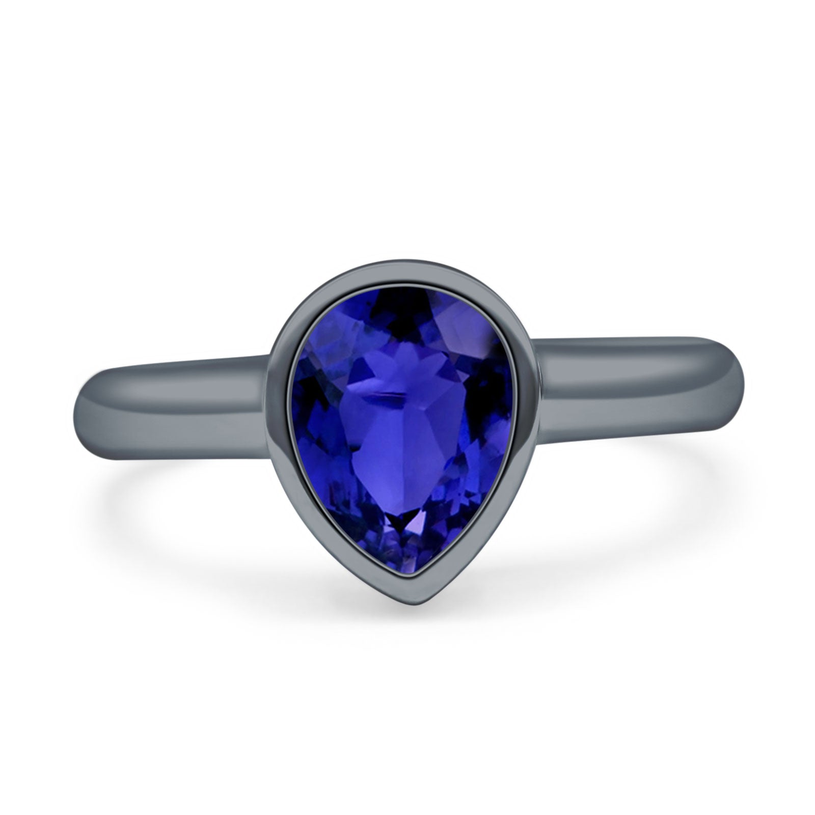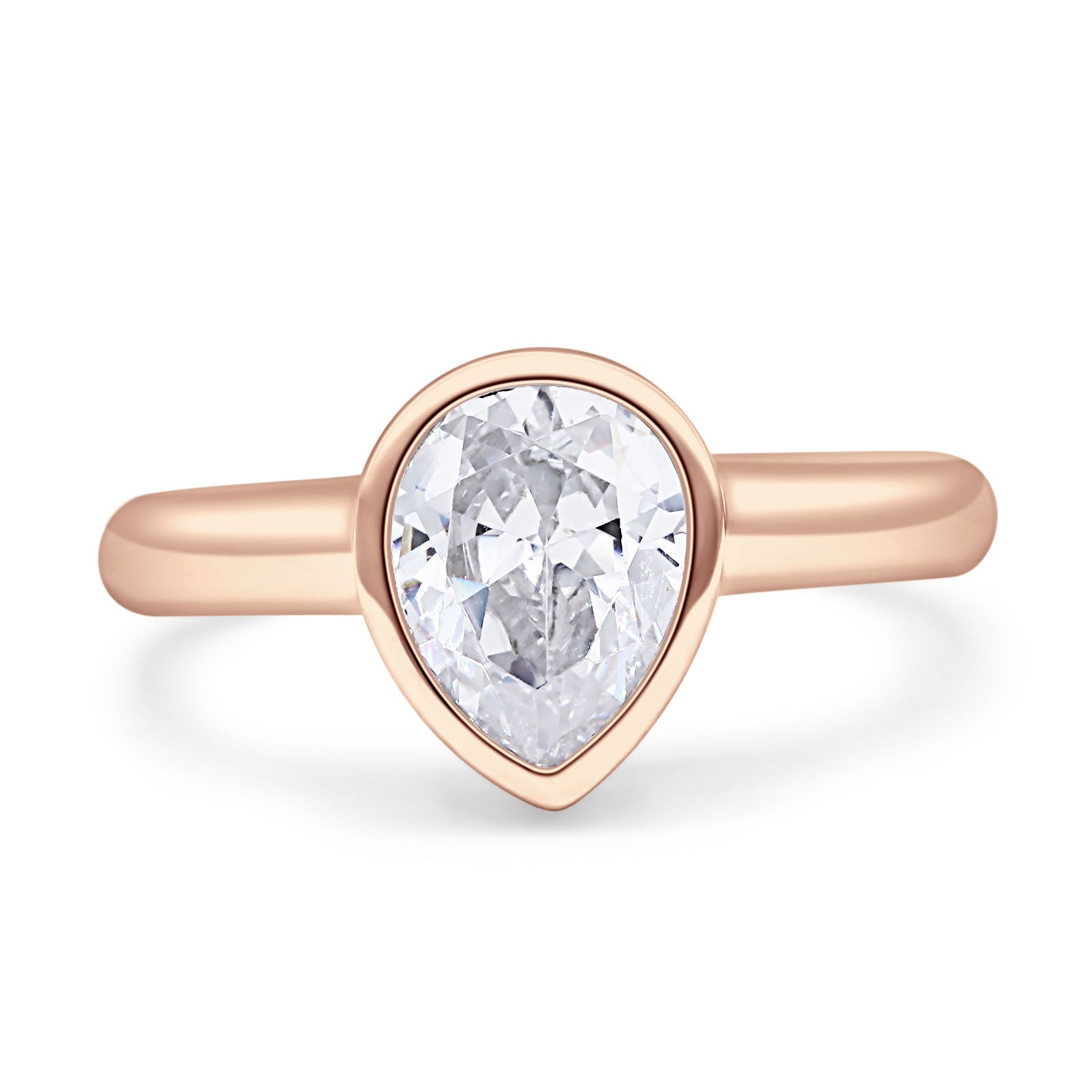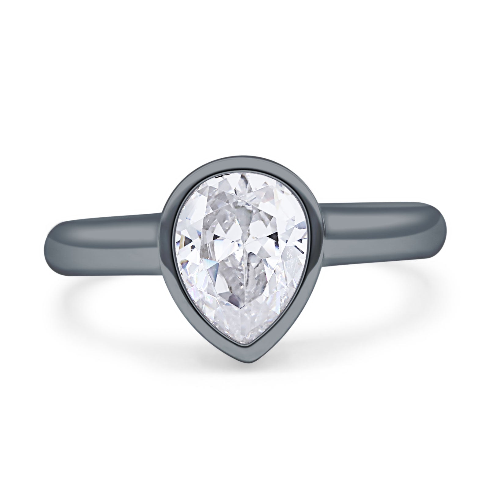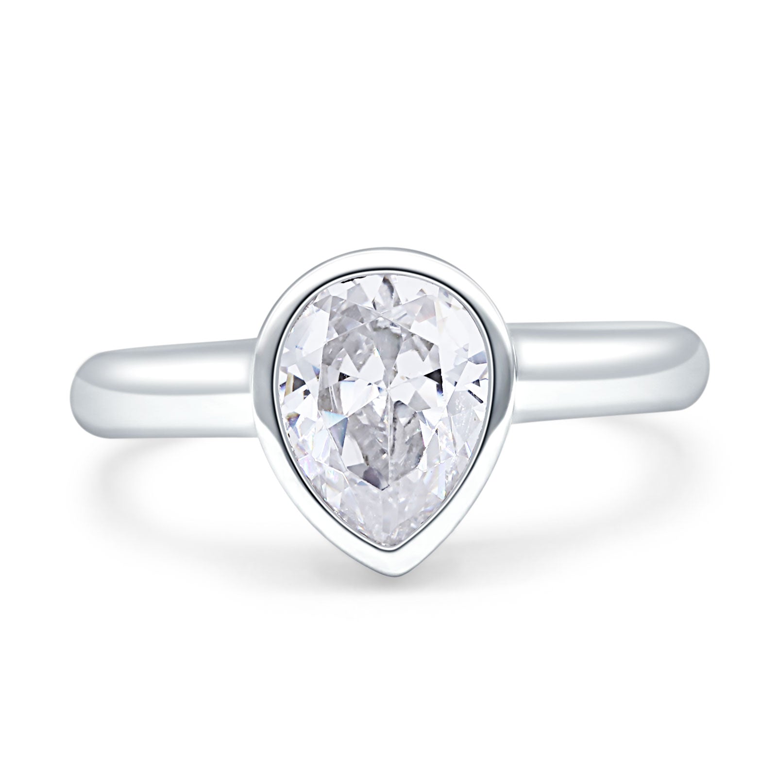 Bezel Set 9mmX6mm Pear Engagement Ring Cubic Zirconia 925 Sterling Silver