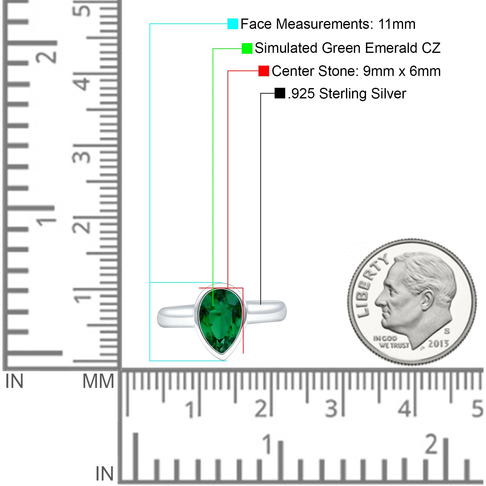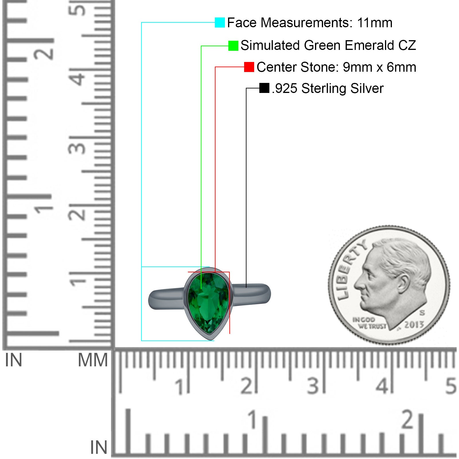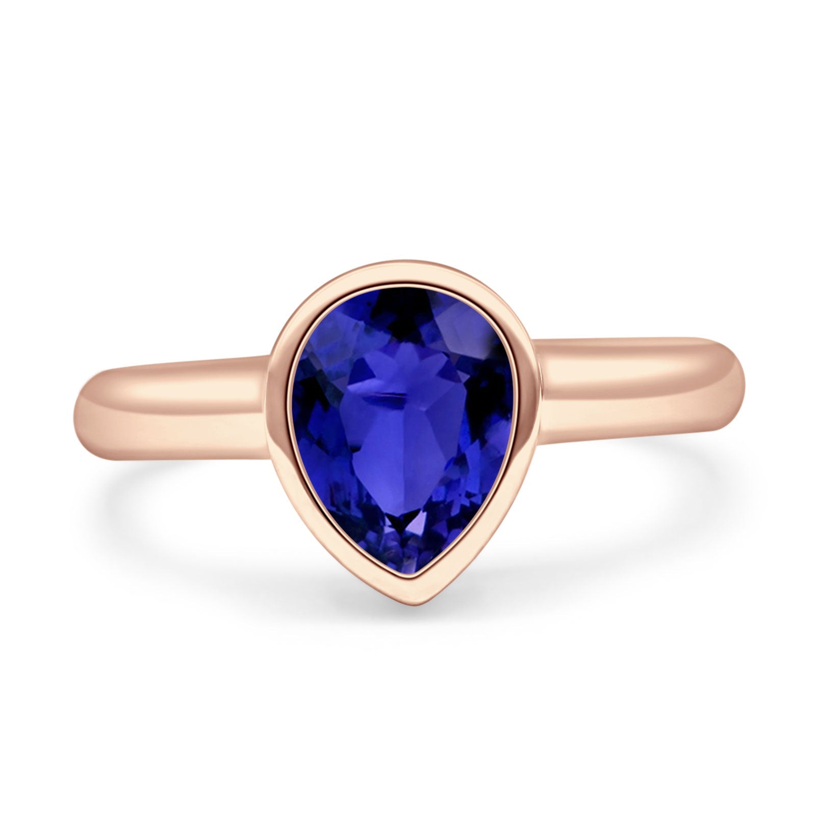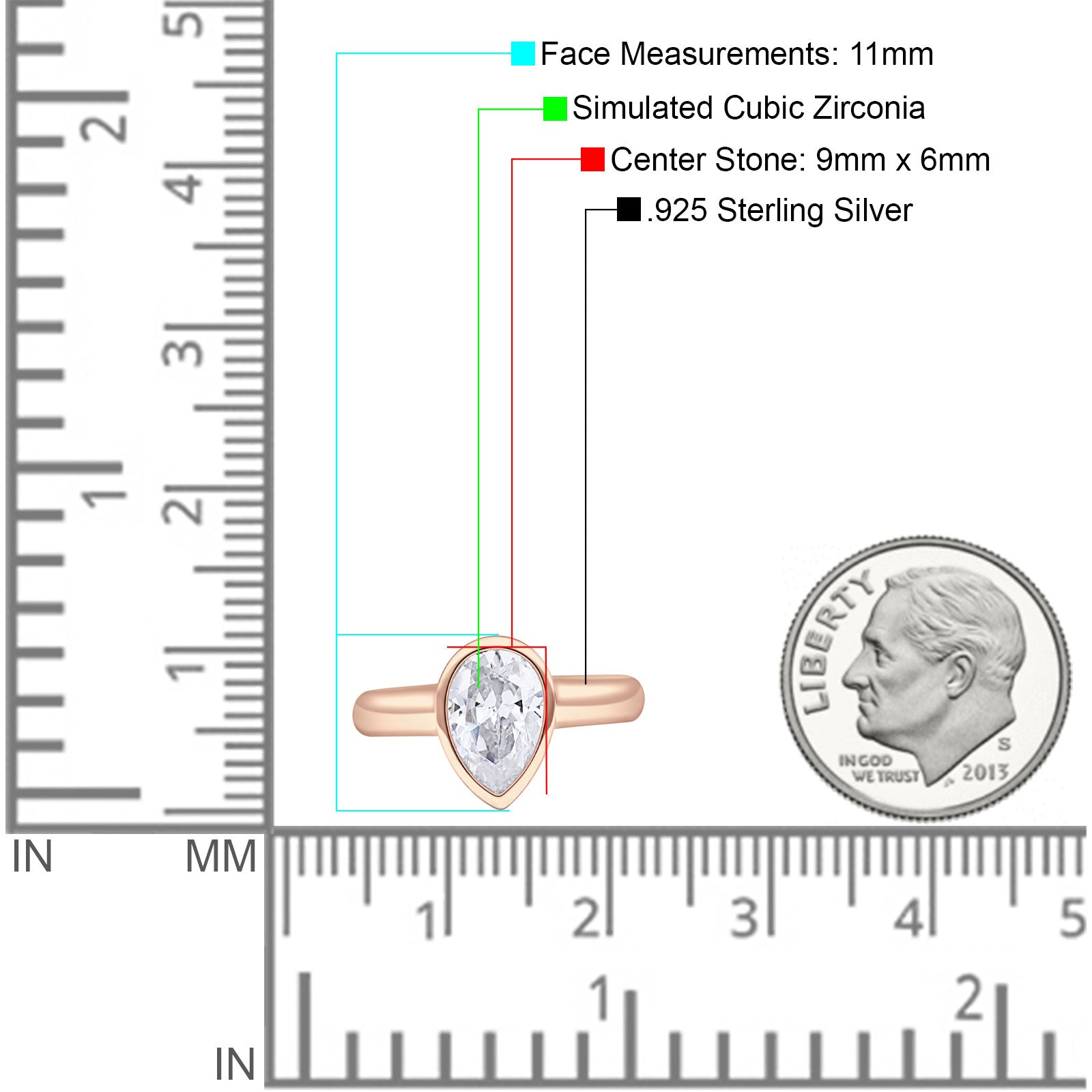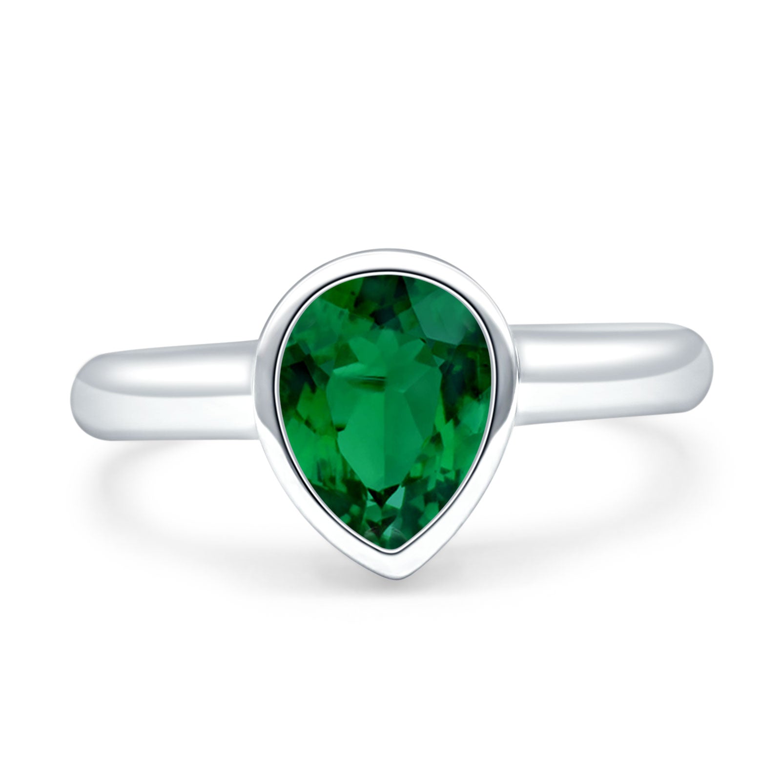 Bezel Set 9mmX6mm Pear Engagement Ring Cubic Zirconia 925 Sterling Silver