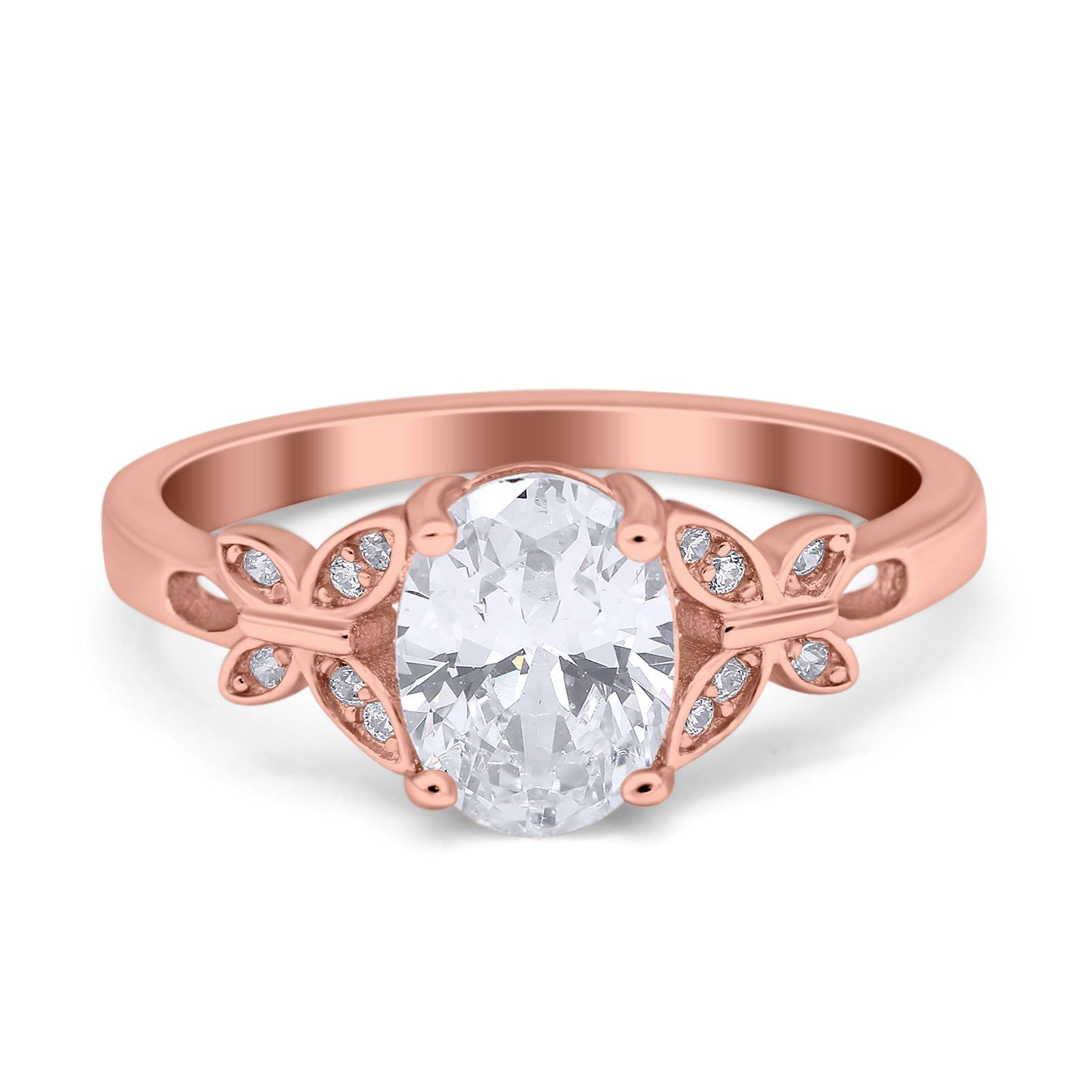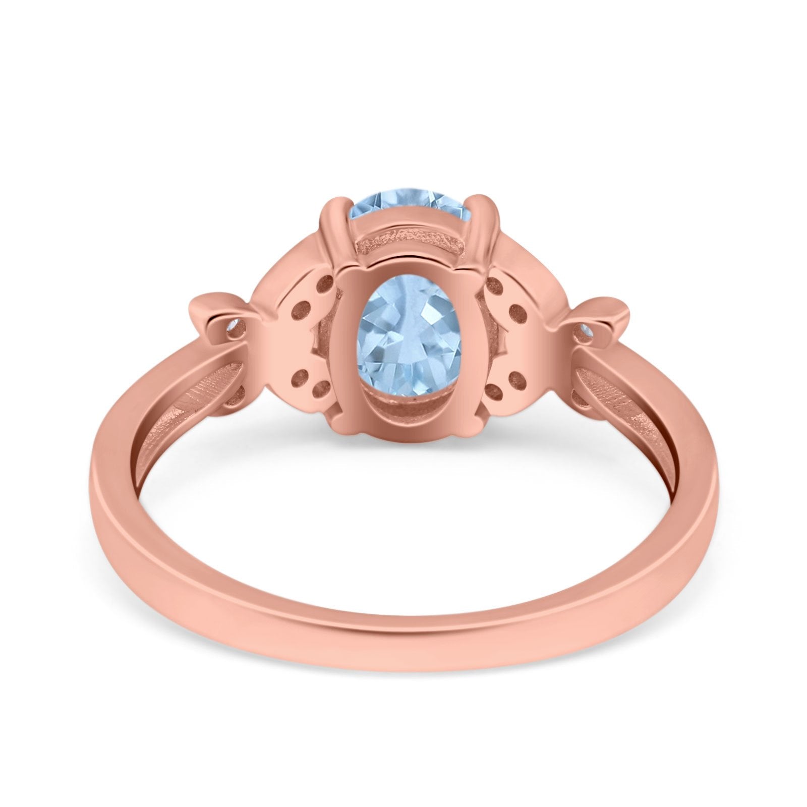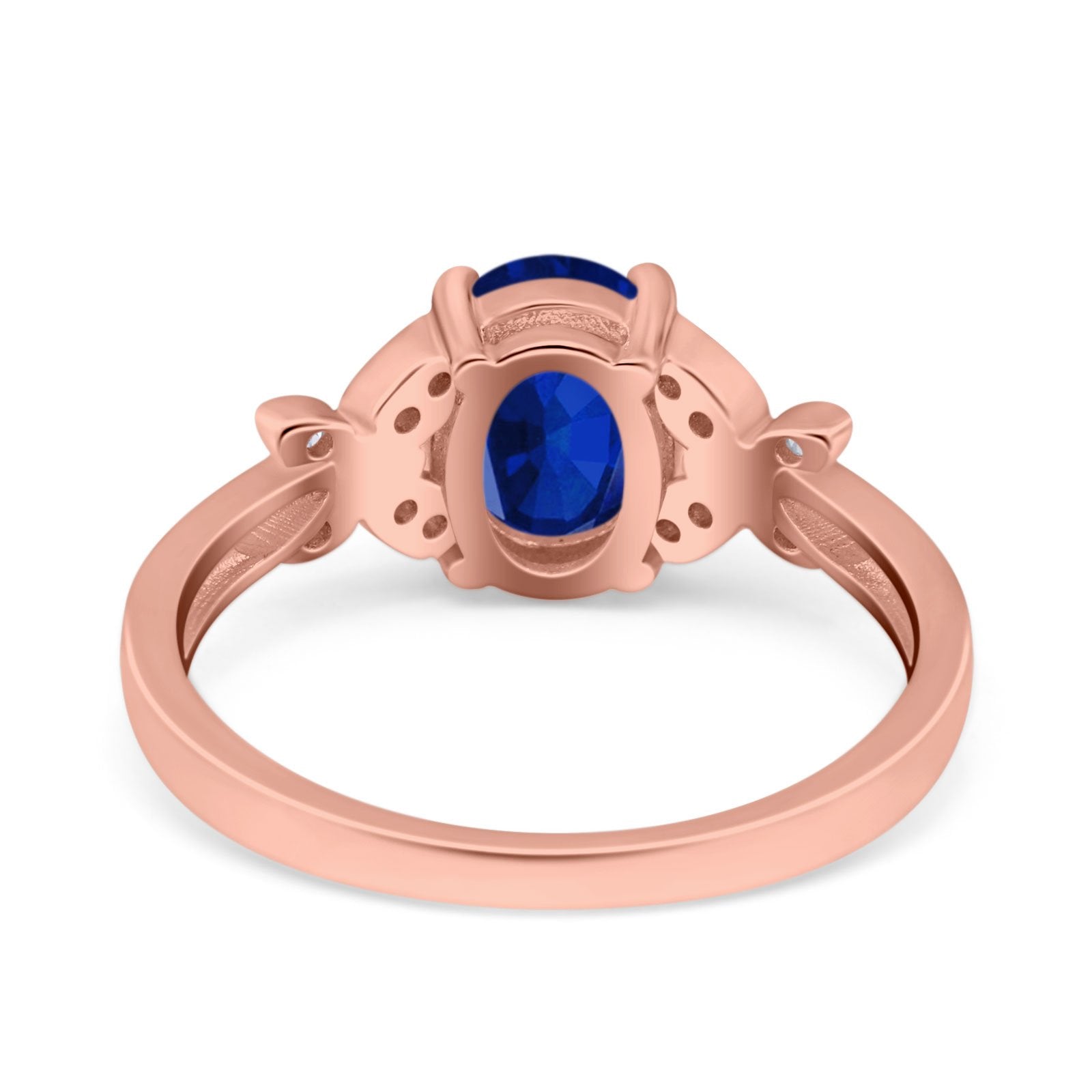 CZ & Blue Sapphire CZ Rose Tone Silver