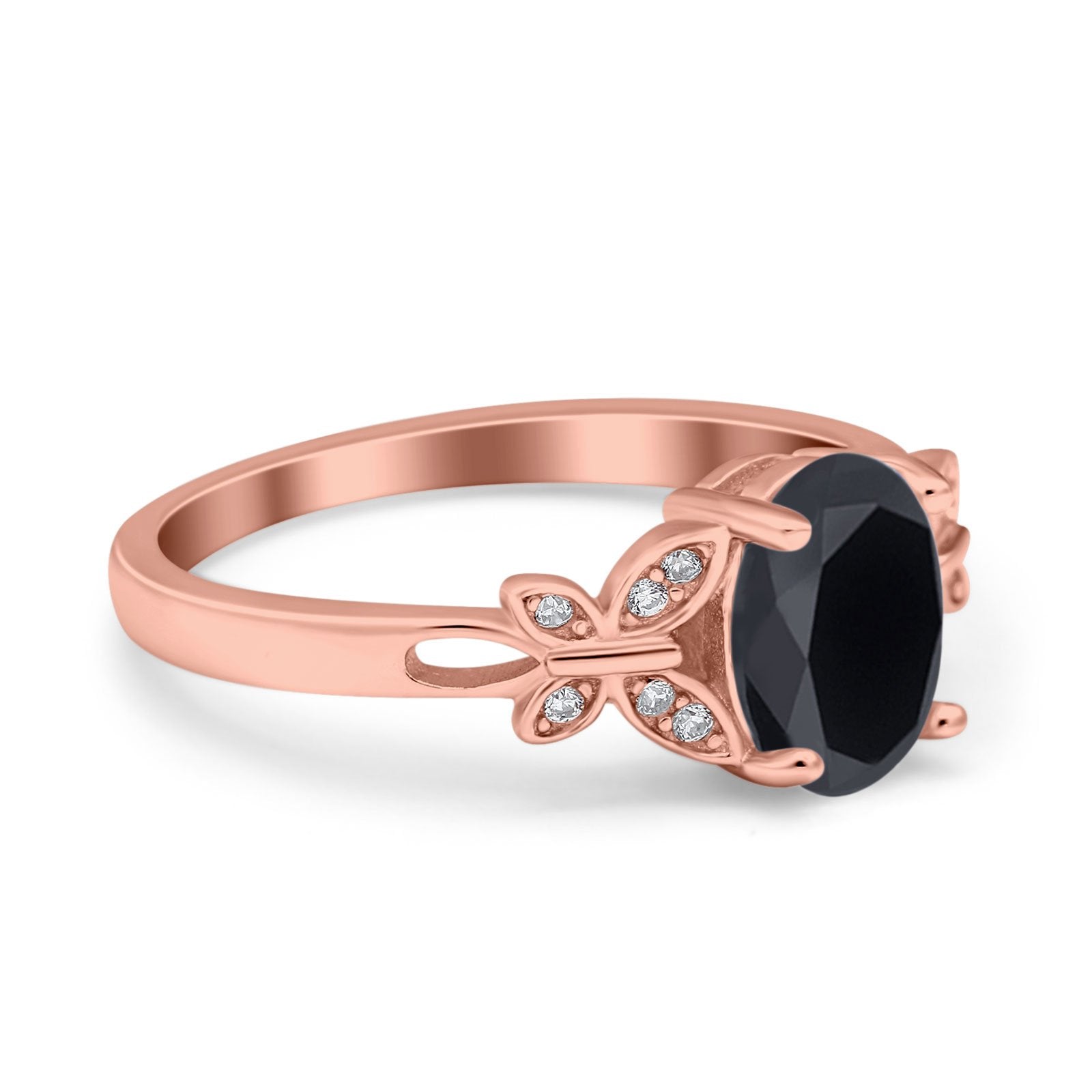 CZ & Blue Sapphire CZ Rose Tone Silver