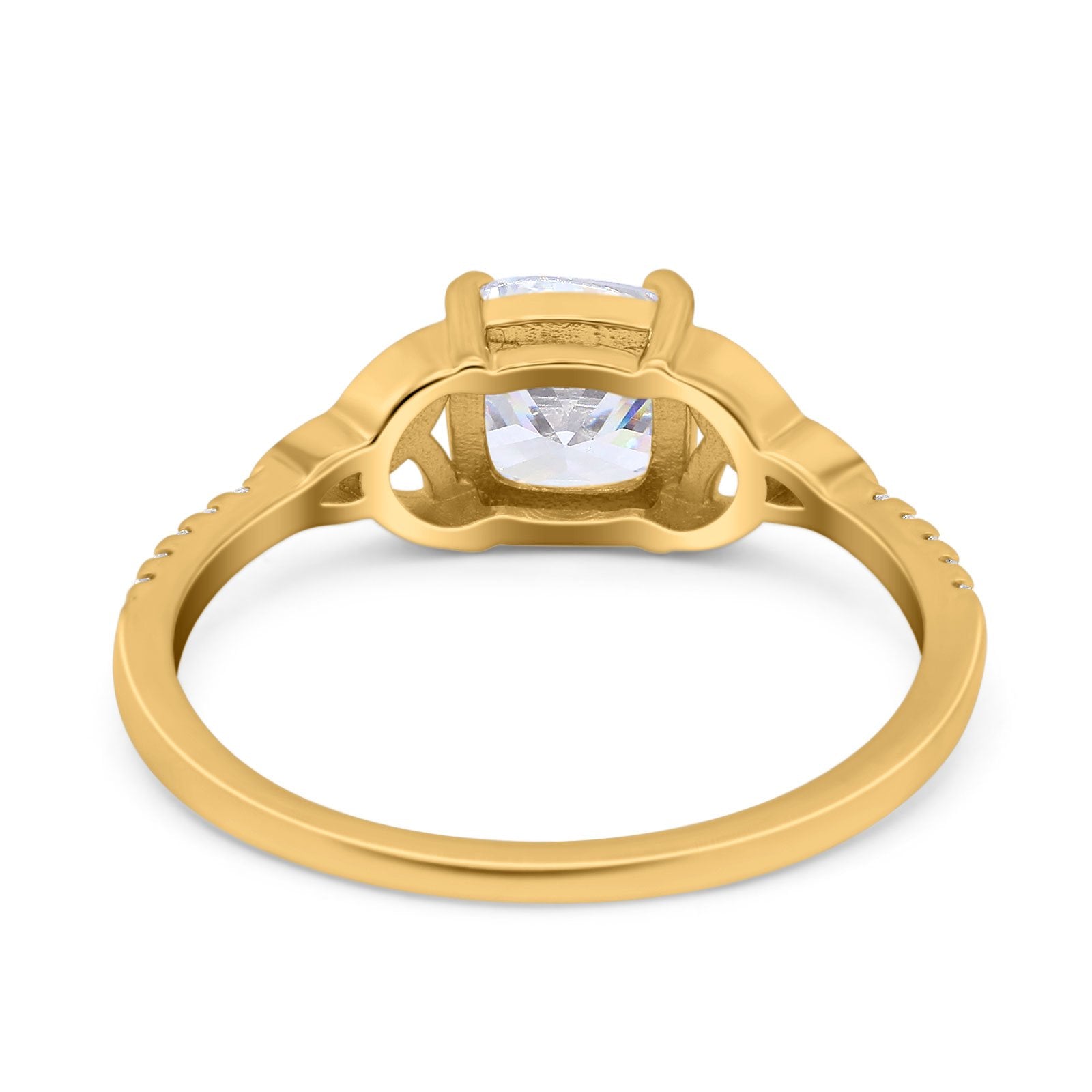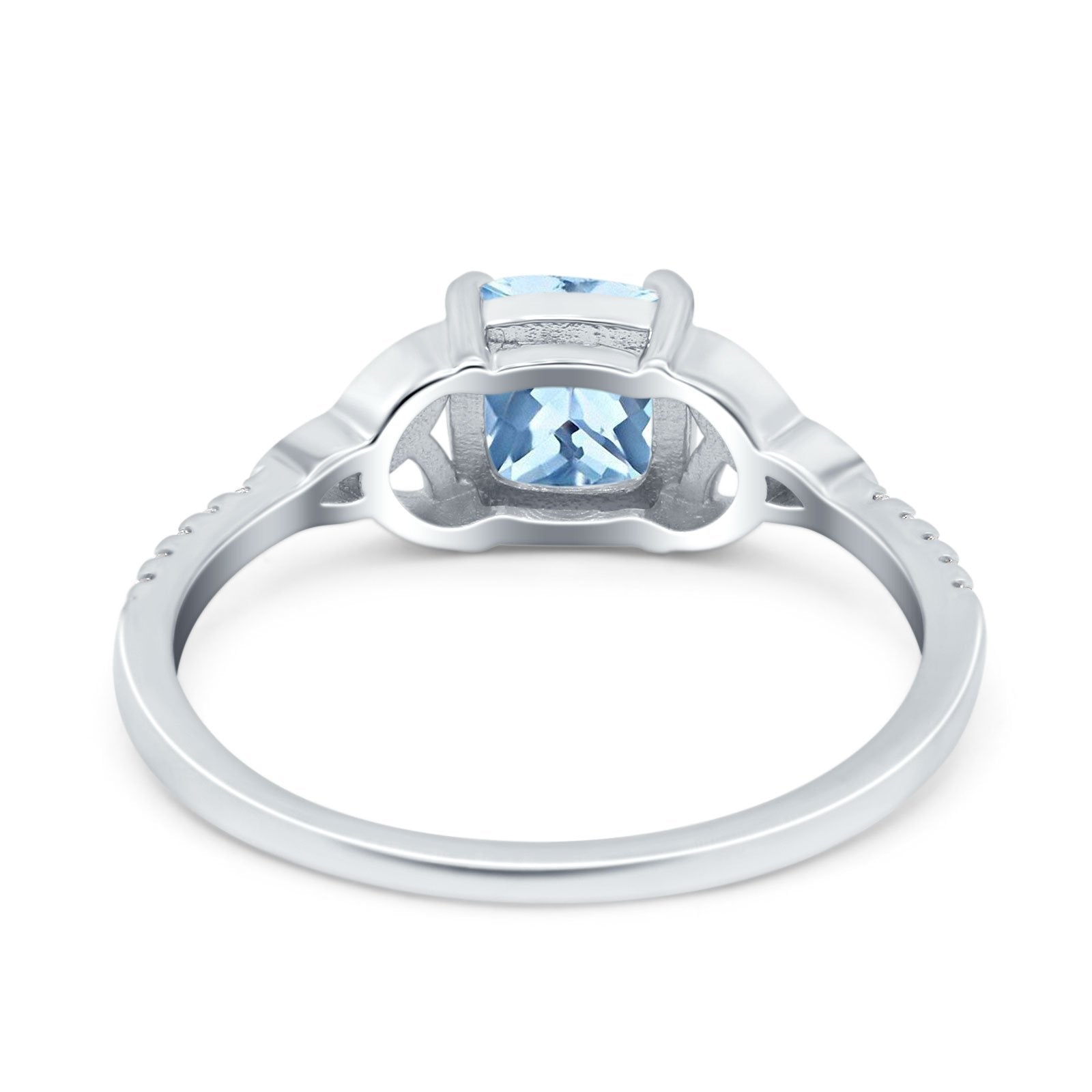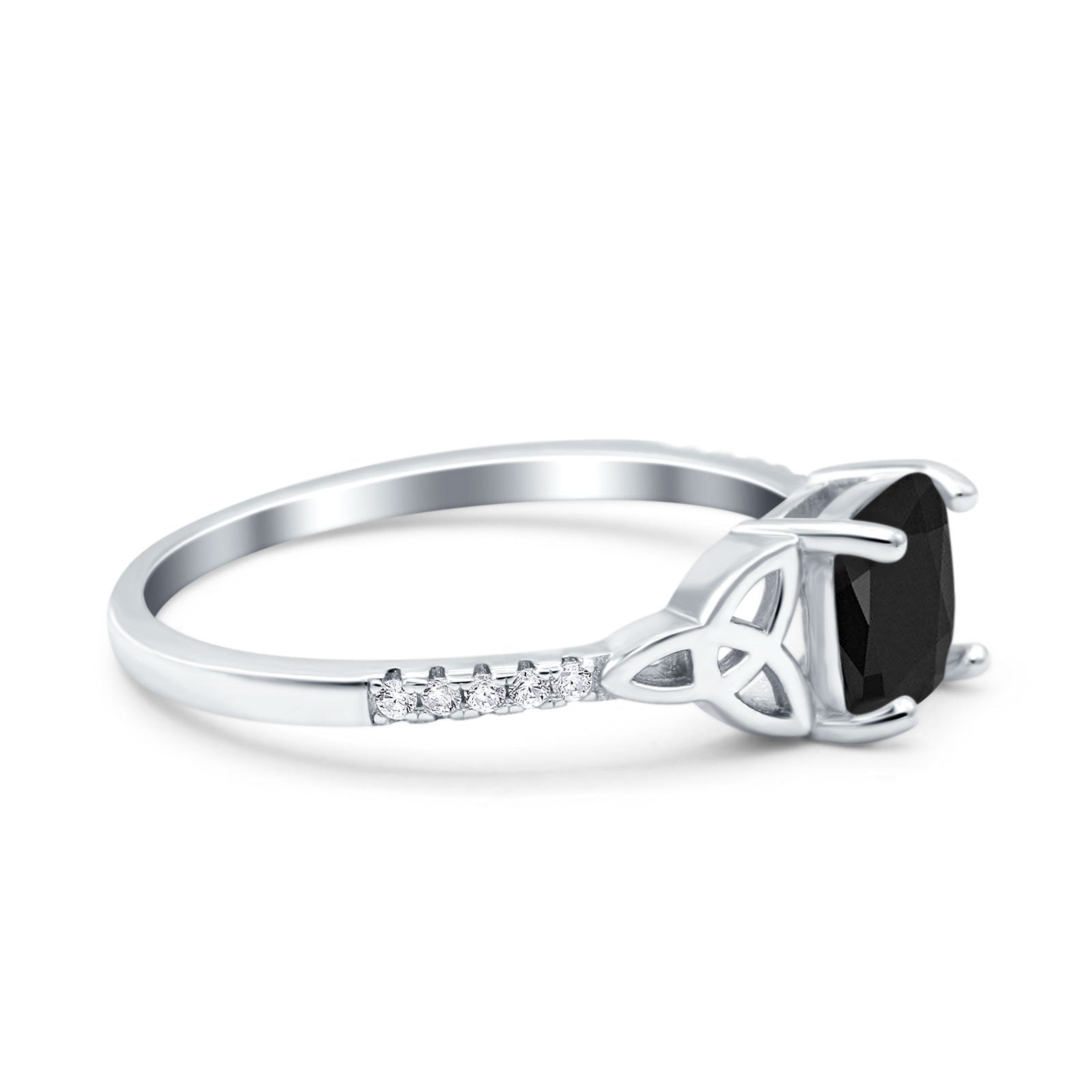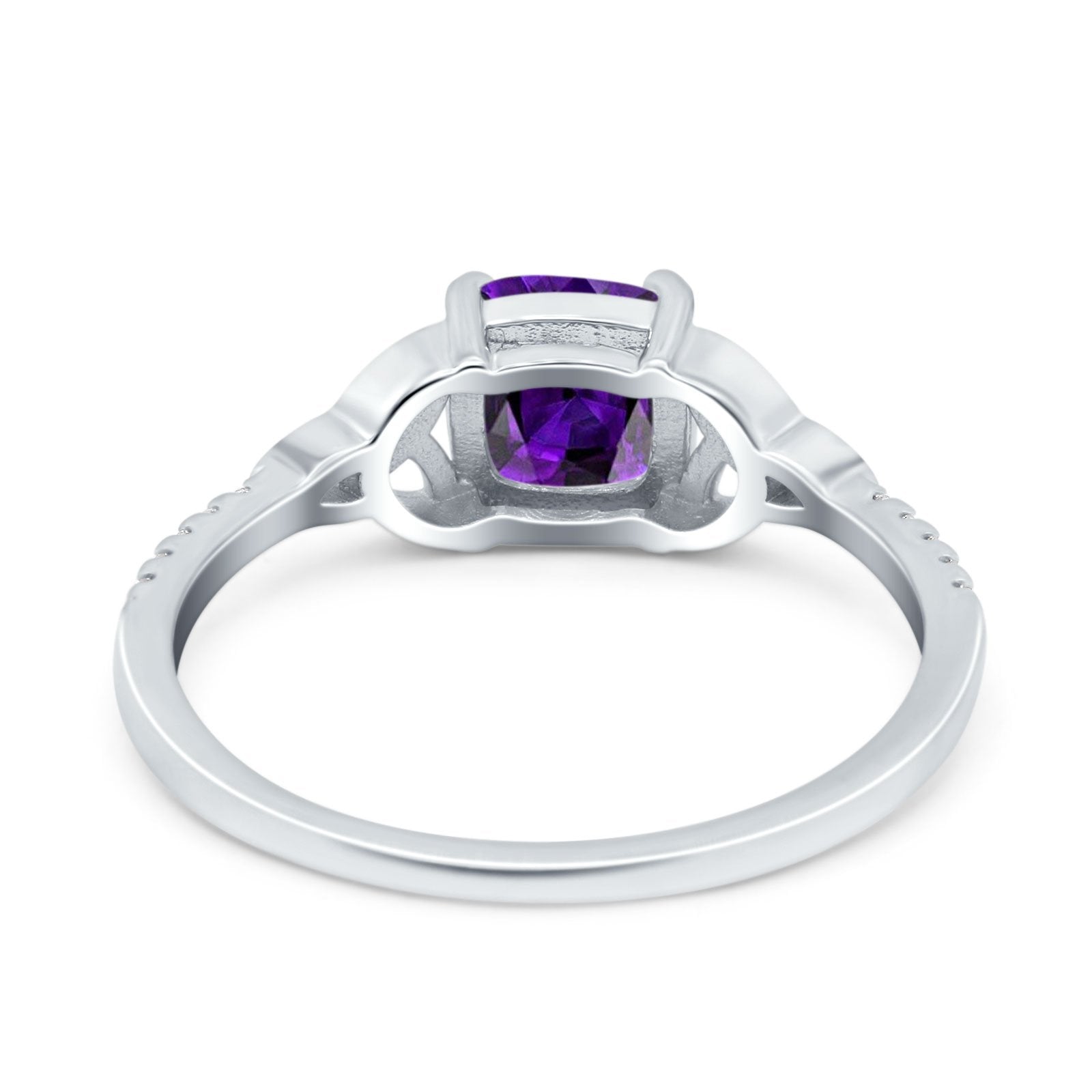 Cushion Cut Celtic Art Deco Wedding Engagement Bridal Ring Round Simulated Cubic Zirconia 925 Sterling Silver